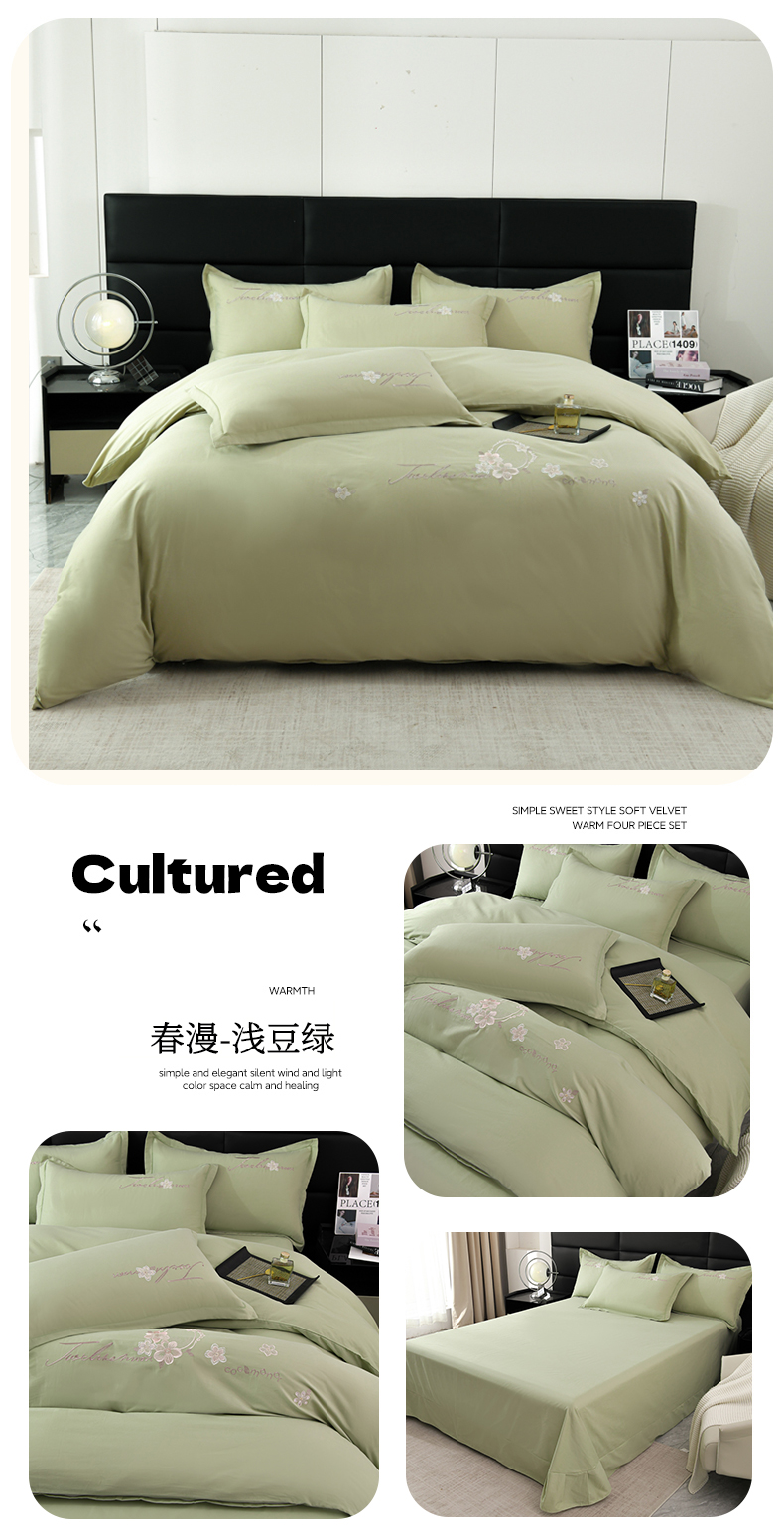 当前位置: 91家纺网 > 商品网购 > 床品套件 > 四件套 > 长绒棉四件套 > U品汇 2025新品40S长绒棉加厚全棉纯棉陶瓷磨毛刺绣花四件套100%棉碳素磨毛 春漫-浅豆绿