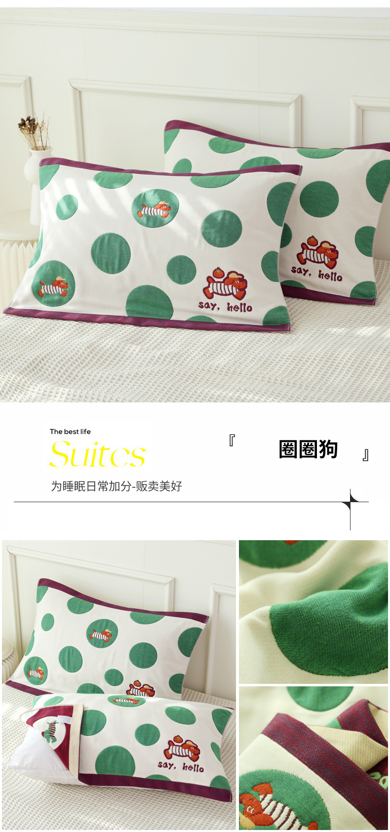 商品名称:(总)朴尔家纺-毛巾被2025新款全棉加厚八层纱布大版花萌宠絮花系列枕巾