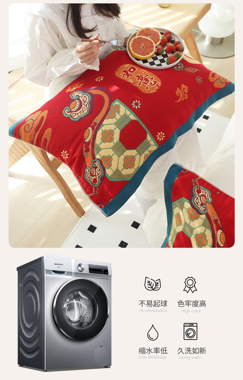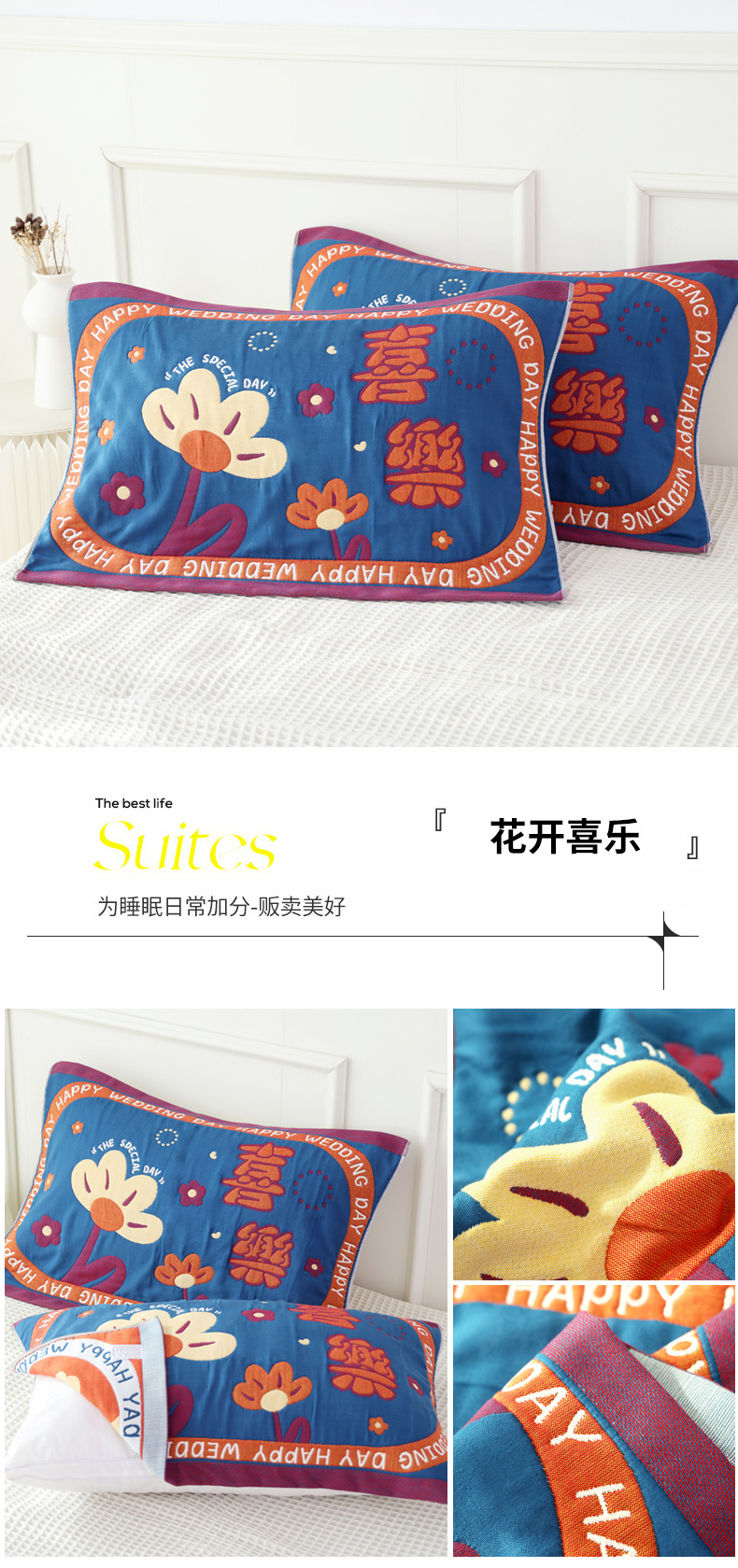 (总)朴尔家纺-毛巾被2025新款全棉加厚八层纱布喜庆民族风婚庆系列枕巾,好运连连 52x78cm枕巾一对,年年有余 52x78cm枕巾一对,平安喜乐 52x78cm枕巾一对,新年大吉 52x78cm枕巾一对
