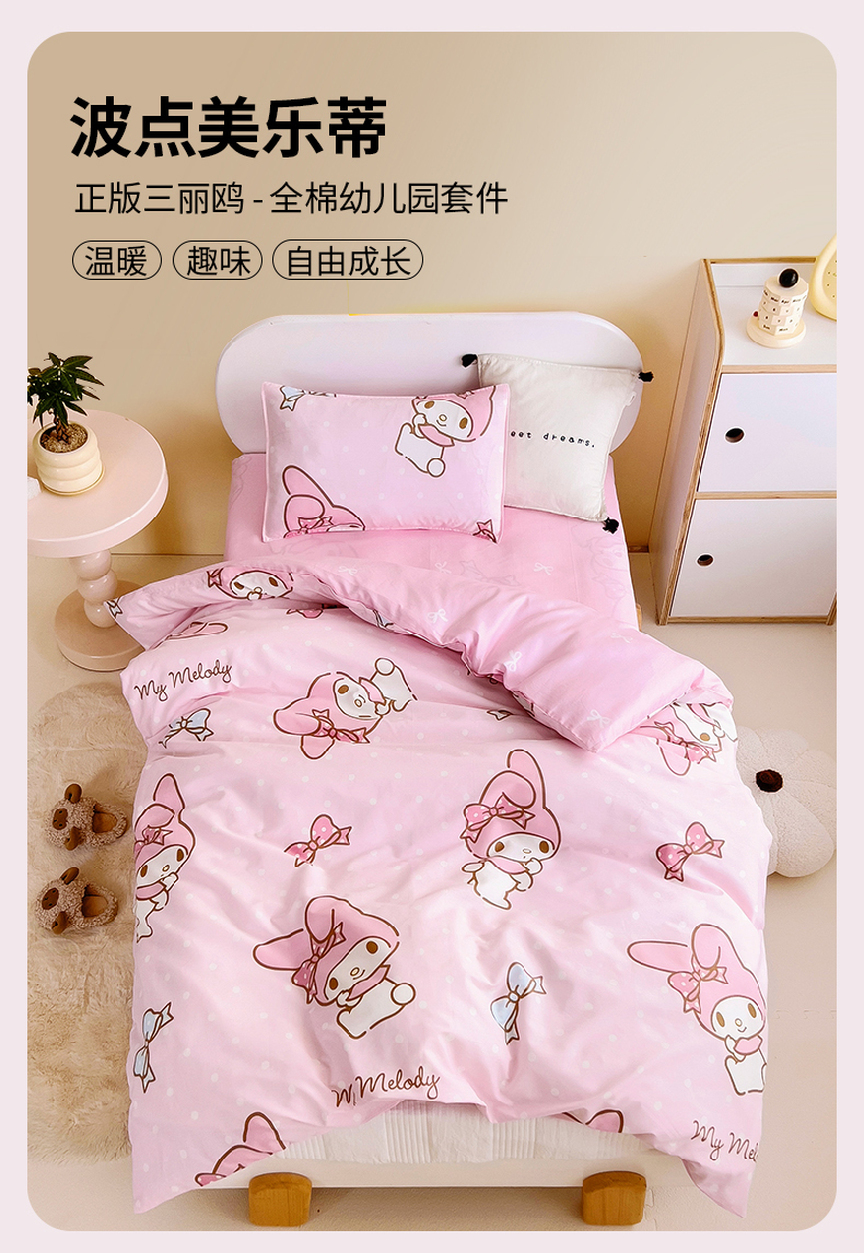 当前位置: 91家纺网 > 商品网购 > 床品套件 > 三件套 > 吉咪兔 2025新款正版三丽鸥库洛米美乐蒂幼儿园被子三件套纯棉被褥六件套午睡波点美乐蒂
