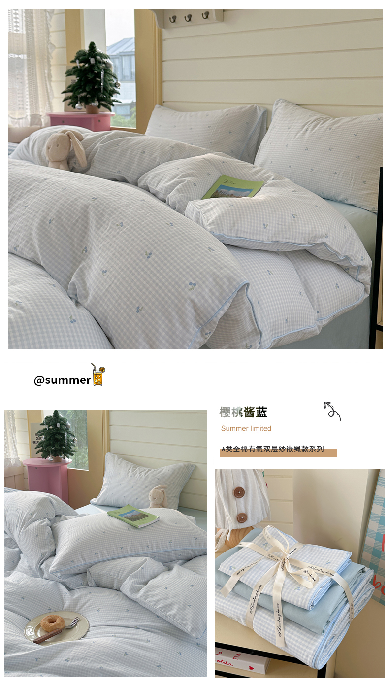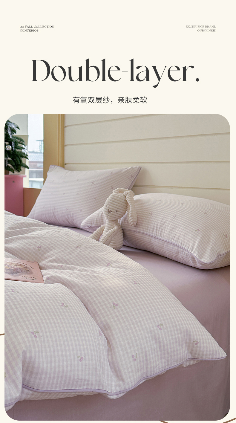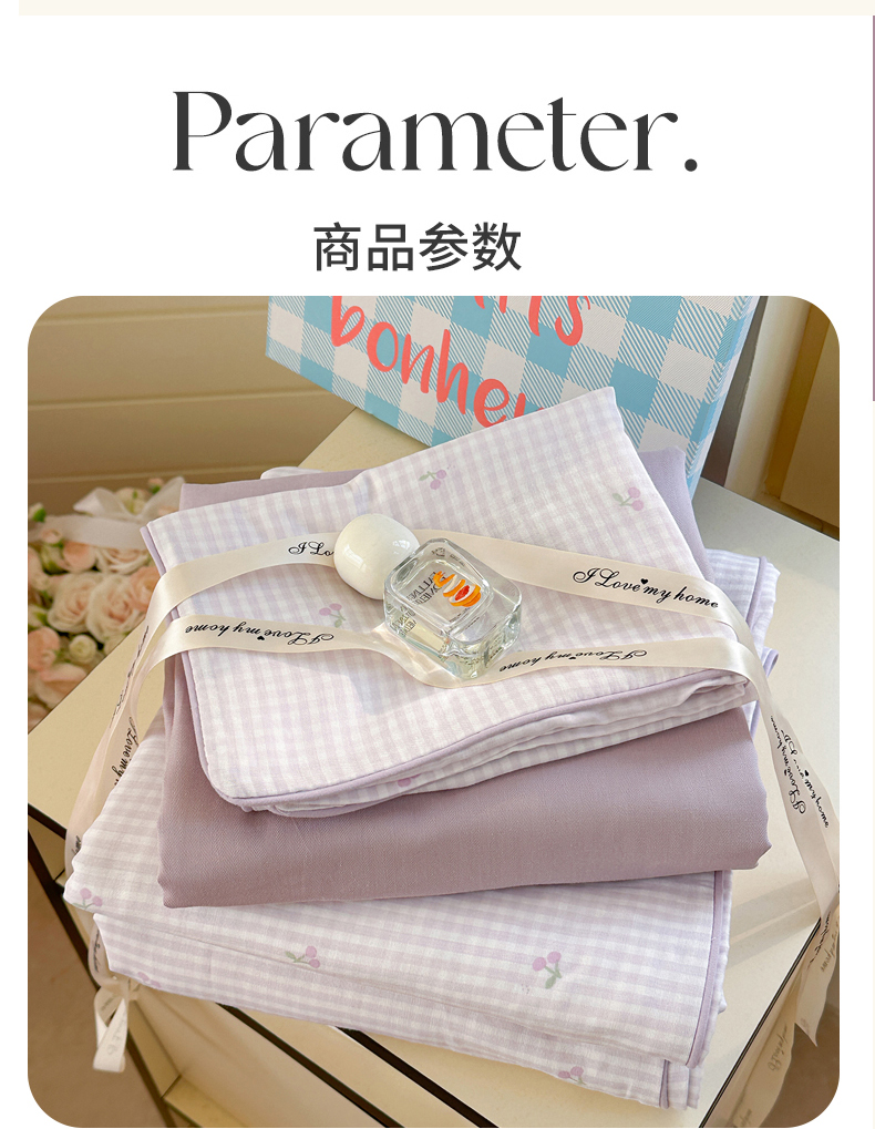当前位置: 91家纺网 > 商品网购 > 床品套件 > 四件套 > 全棉普通四件套 > 麦伦家居 2025新品嵌绳款全棉双层纱四件套 嵌绳款-樱桃酱紫