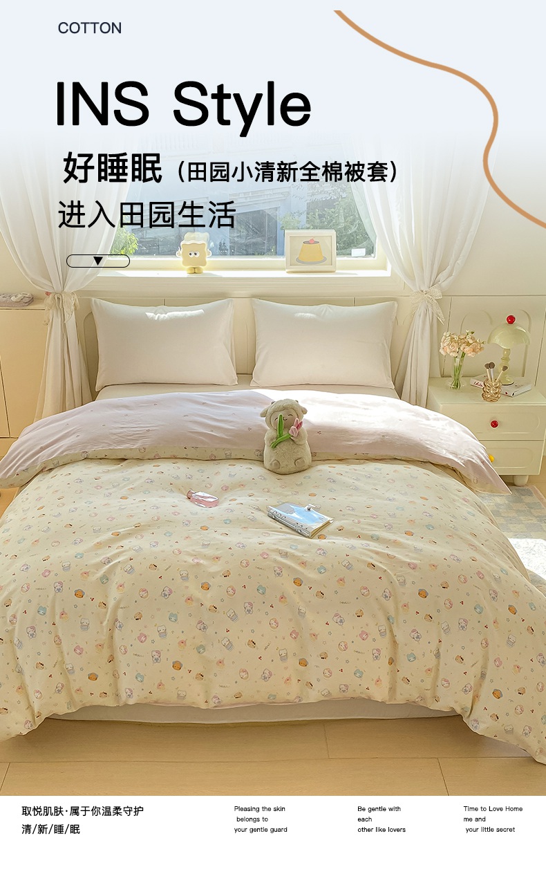 黑马家居2023新款全棉印花喷气12868套件-单被套 蜜桔兔,蜜桔兔