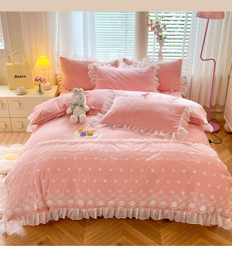 (总)唐人居 2026新款水洗棉花边床盖四件套-花影系列,花影-浅紫,花影-豆沙,花影-玫红,花影-暖橘,花影-苹果绿,花影-浅粉,花影-浅灰