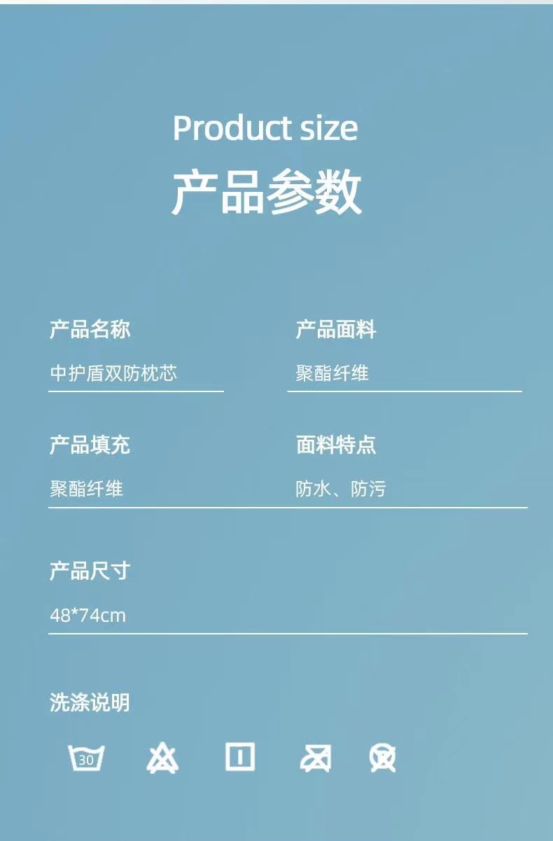 商品名称:永乐枕芯 2025新款中护盾防水抗污枕芯高品质 枕头枕芯 700g 中护盾 48x74cm/只