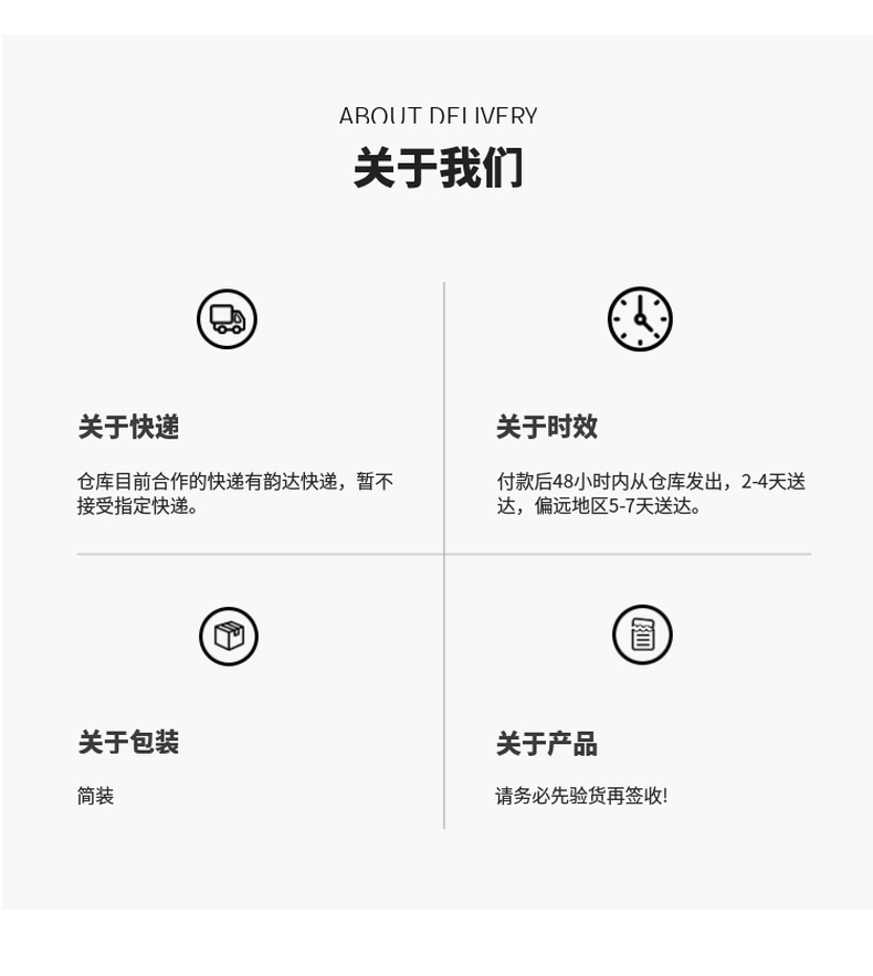 云仓服务3:享急速发货,18点之前下单,2小时内发货,保证发货时效;