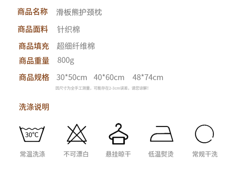 商品名称:(总)晚儿 2025新款滑板熊护颈枕头枕芯