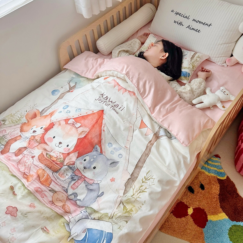 当前位置: 91家纺网 > 商品网购 > 床品套件 > 三件套 > 萌宝家纺 2025新款A类60S数码大版印花长绒棉幼儿园三件套儿童多件套 摇篮兔子