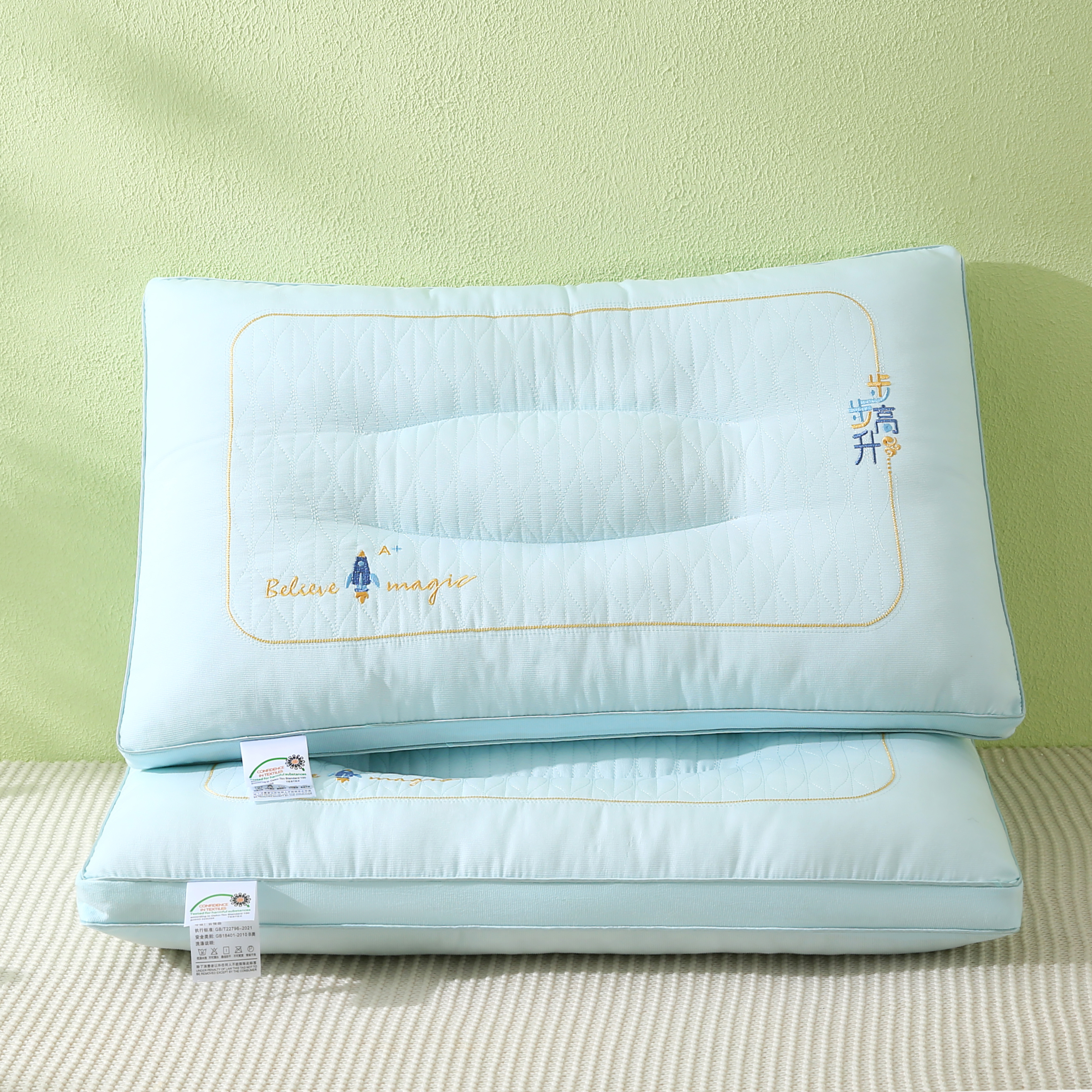 商品名称:橘夏家纺 2025新款步步高升枕头枕芯 晴空蓝