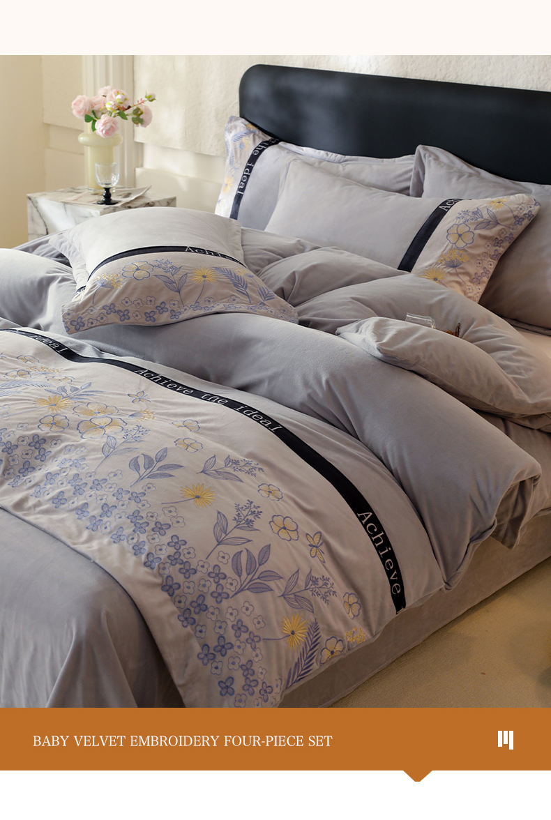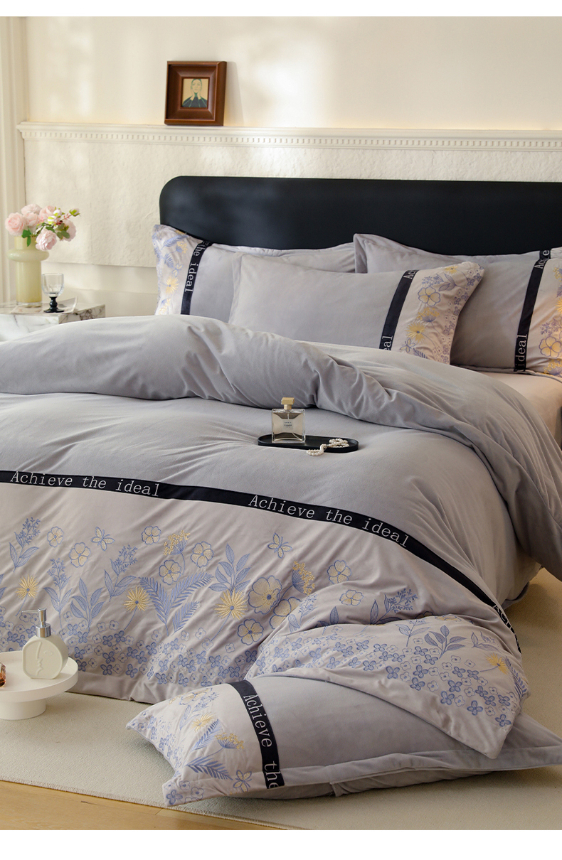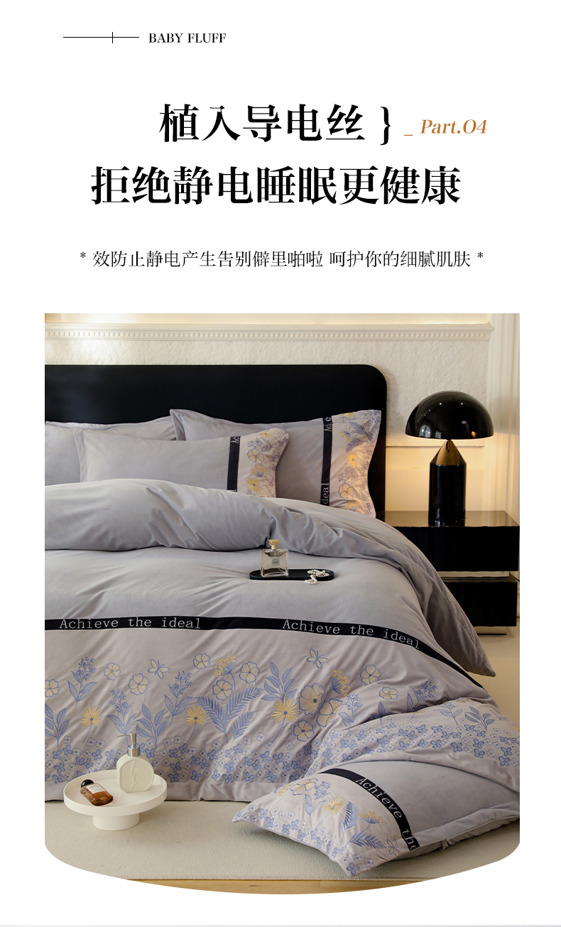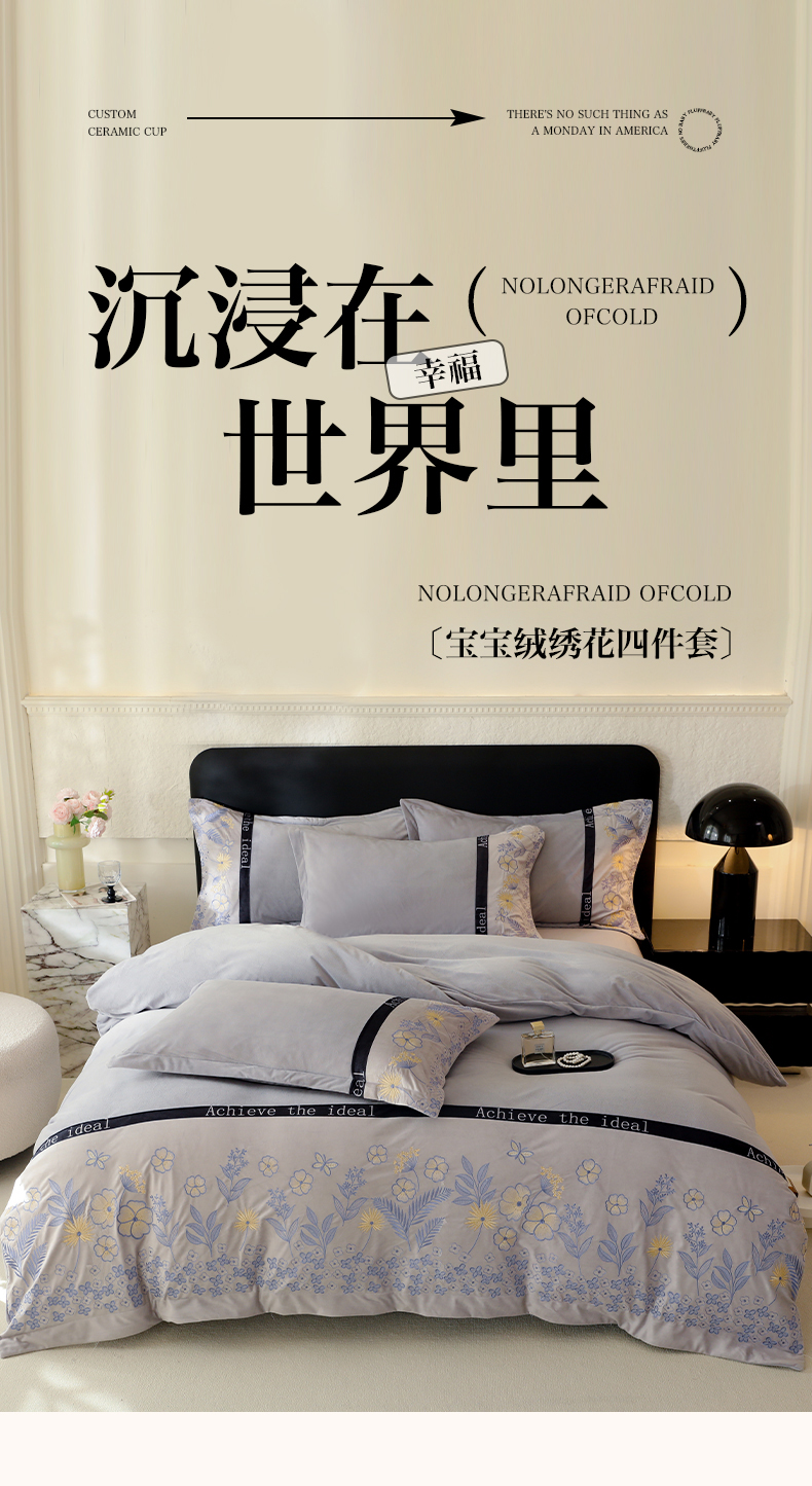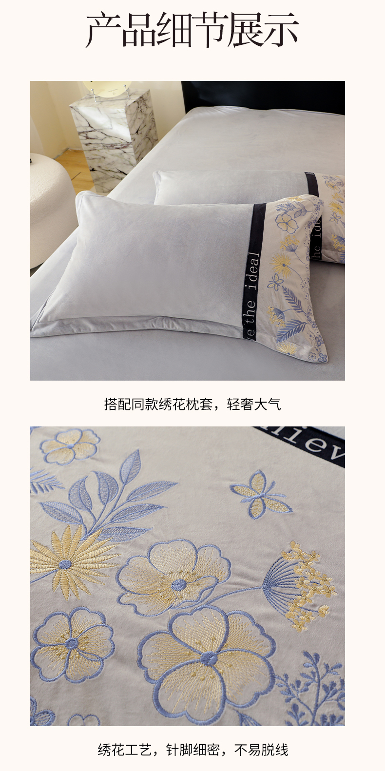商品名称:唐人居 2025新款宝宝绒绣花四件套-塞纳河畔 塞纳河畔-浅灰