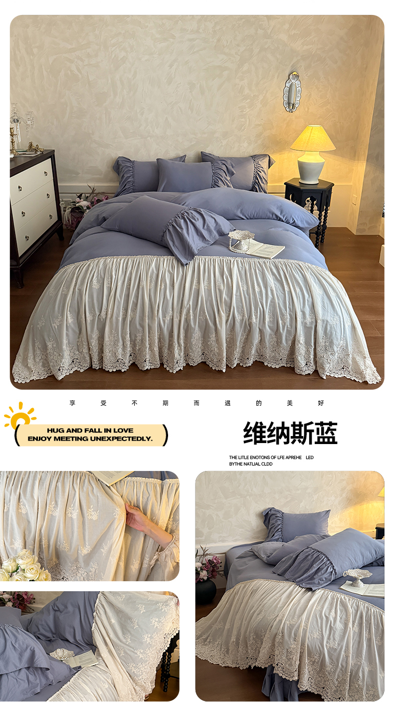 商品名称:吾欢心 2025新款韩版纯棉花边款加厚原棉四件套维纳斯(高端定制) 维纳斯蓝