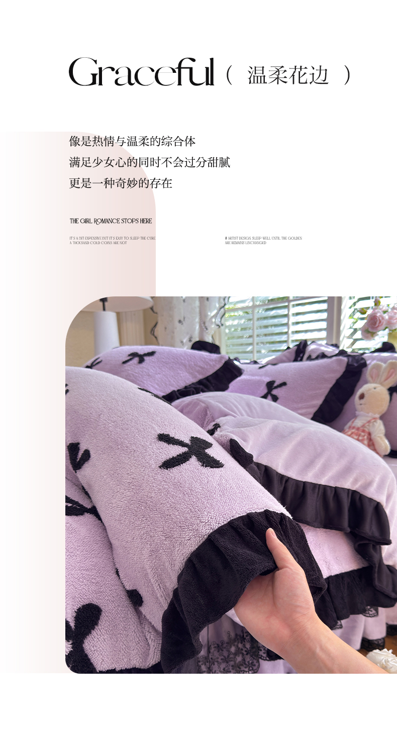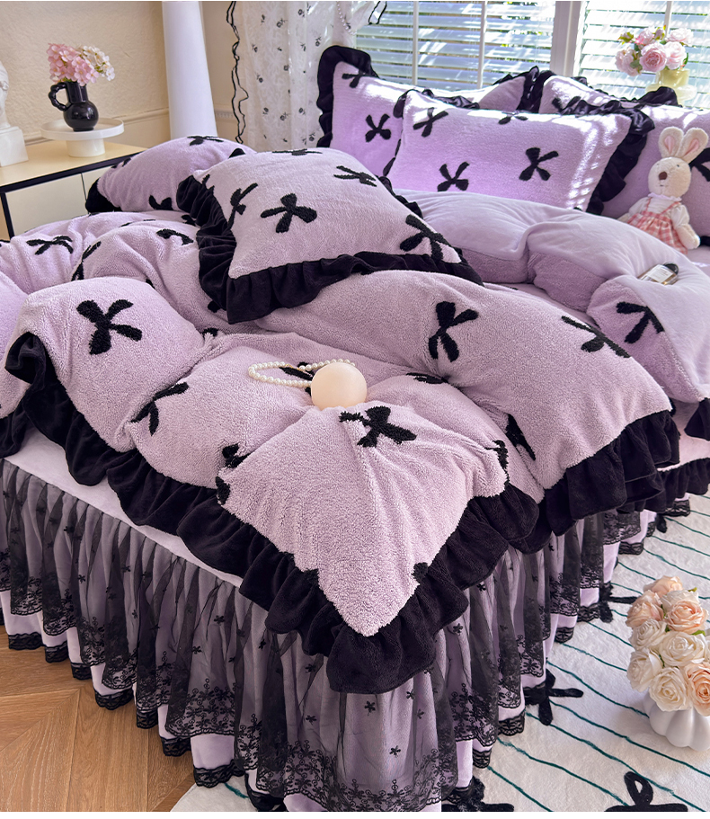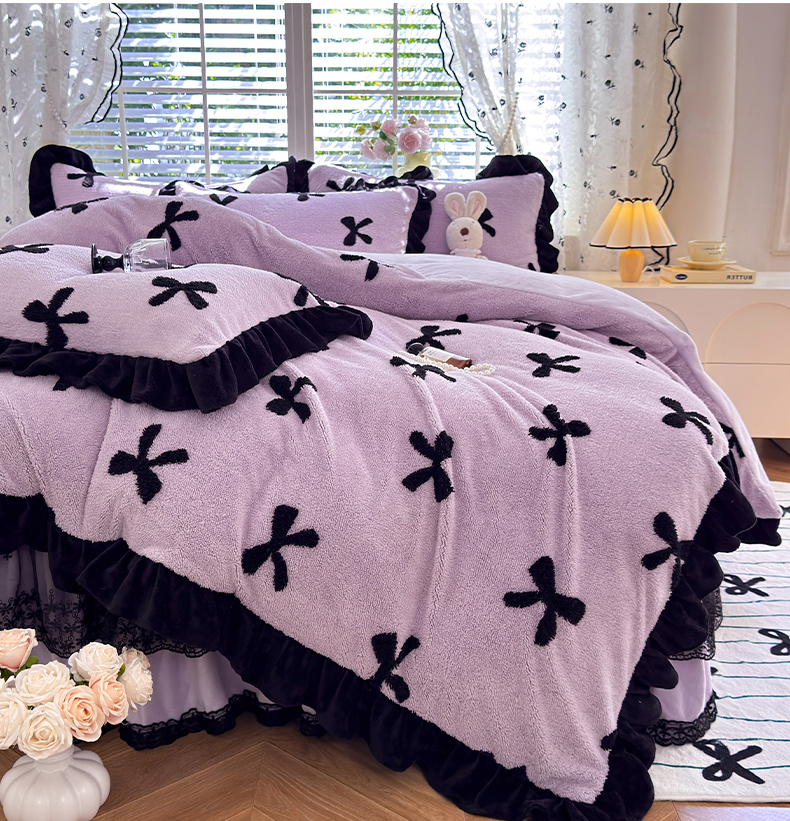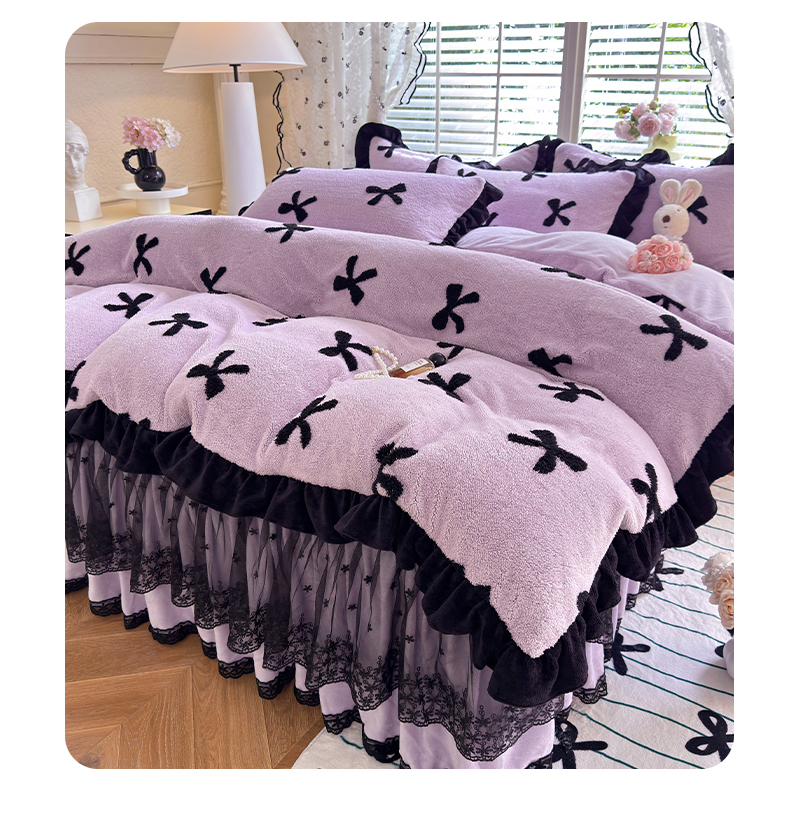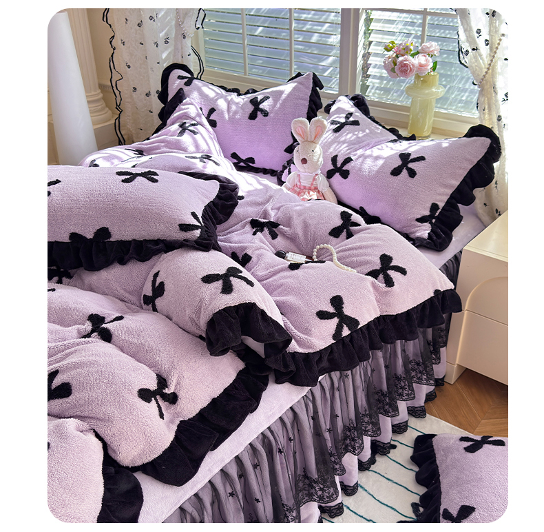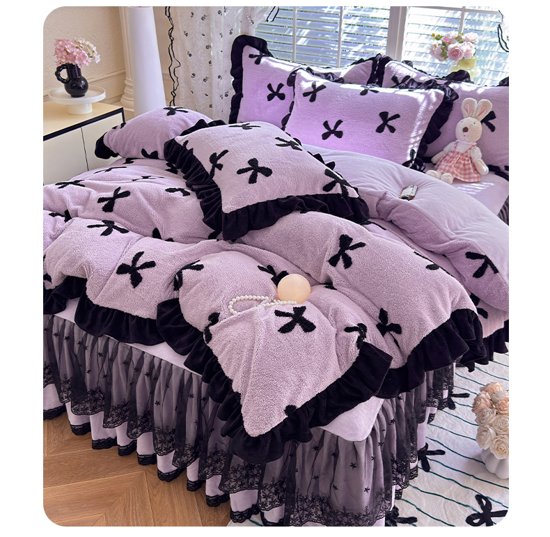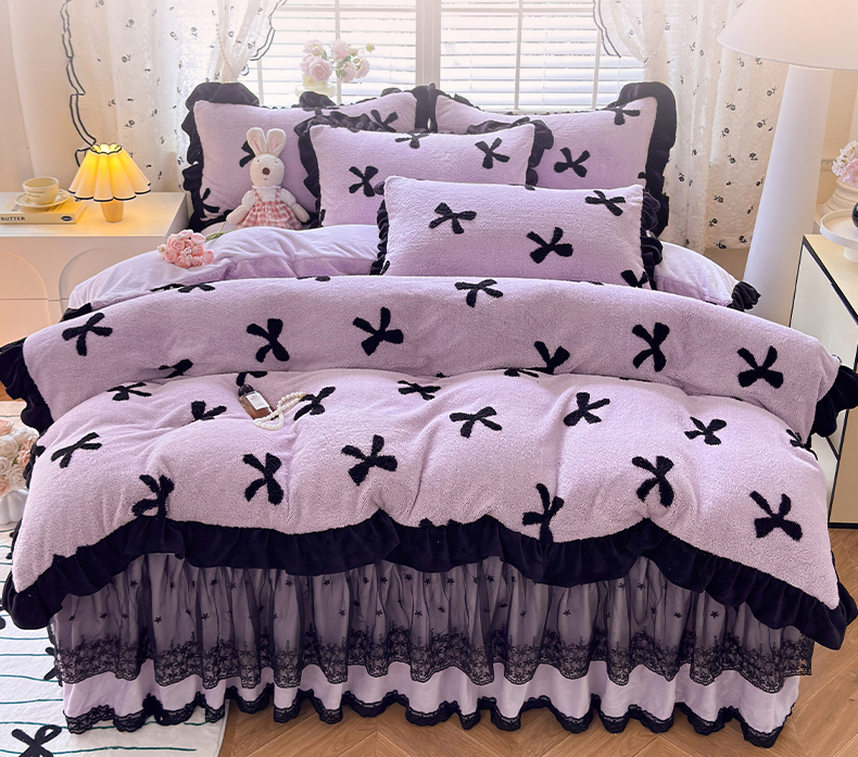 唐人居 2025新款高克重阳离子绒花边雕花套件 蝴蝶结-紫色
