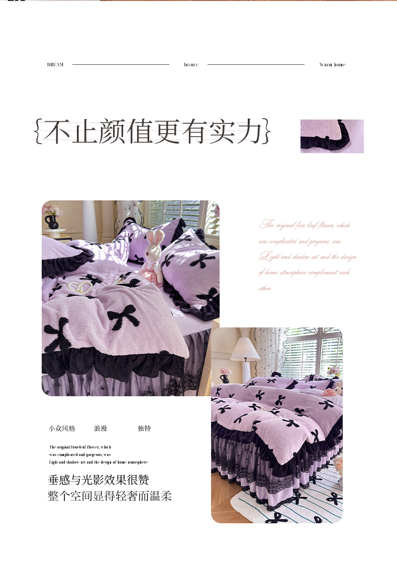 商品名称:唐人居 2025新款高克重阳离子绒花边雕花套件 蝴蝶结-紫色