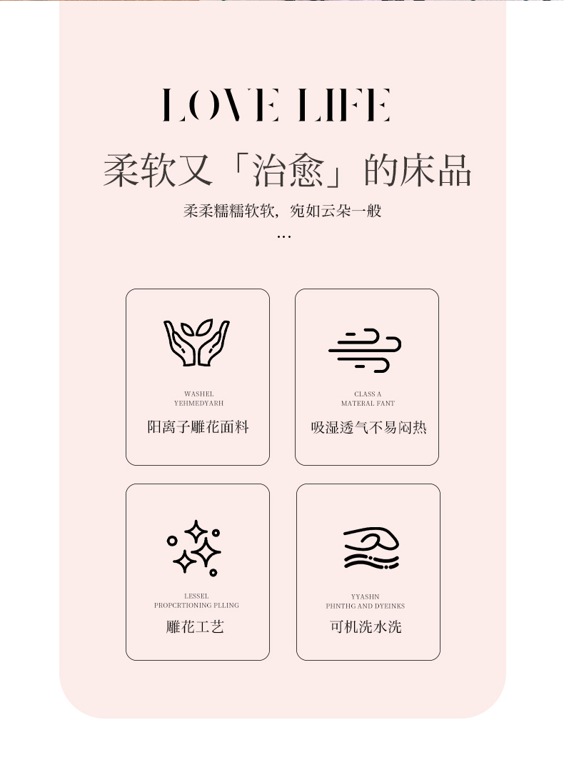(总)唐人居 2026新款水洗棉花边床盖四件套-花影系列,花影-浅紫,花影-豆沙,花影-玫红,花影-暖橘,花影-苹果绿,花影-浅粉,花影-浅灰