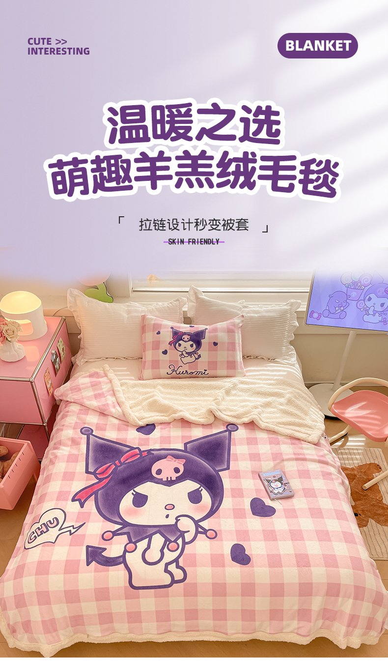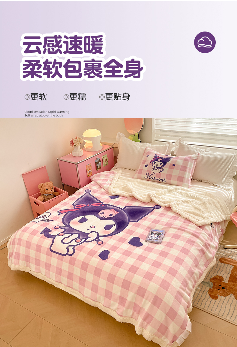 当前位置: 91家纺网 > 商品网购 > 毛毯休闲毯绒毯 > 毛毯 > 金爱家 2025新款卡通多功能牛奶绒羊羔绒毛毯 羊羔绒-甜趣库洛米