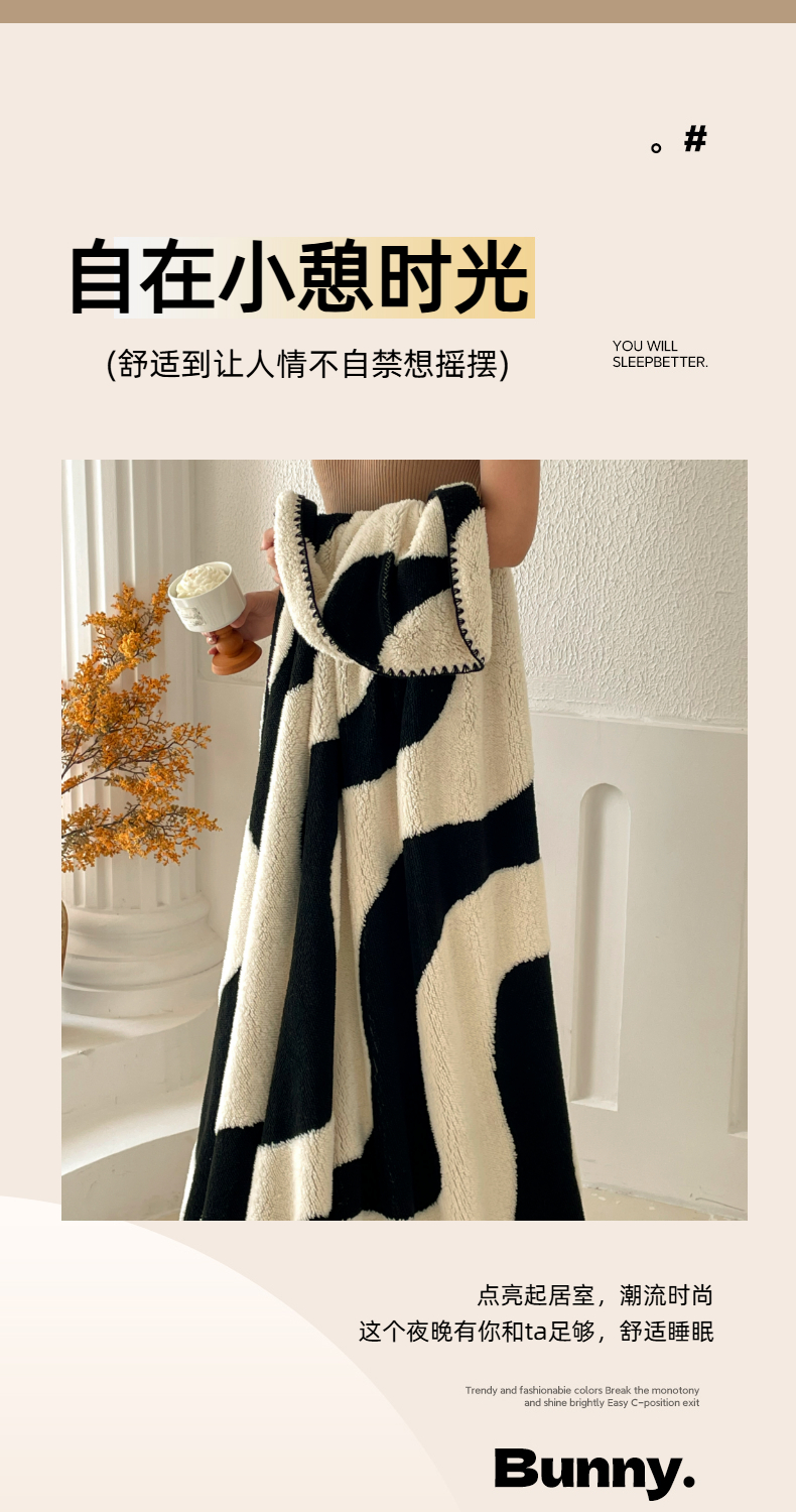 (总)晚爱家纺(原晚安家居) 2025新款跨境多功能盖毯沙发毯双面印花舒棉绒毛毯,波浪纹,黑蝴蝶,蝴蝶树,节节高,山茶花,四叶草,小布布,小熊猫