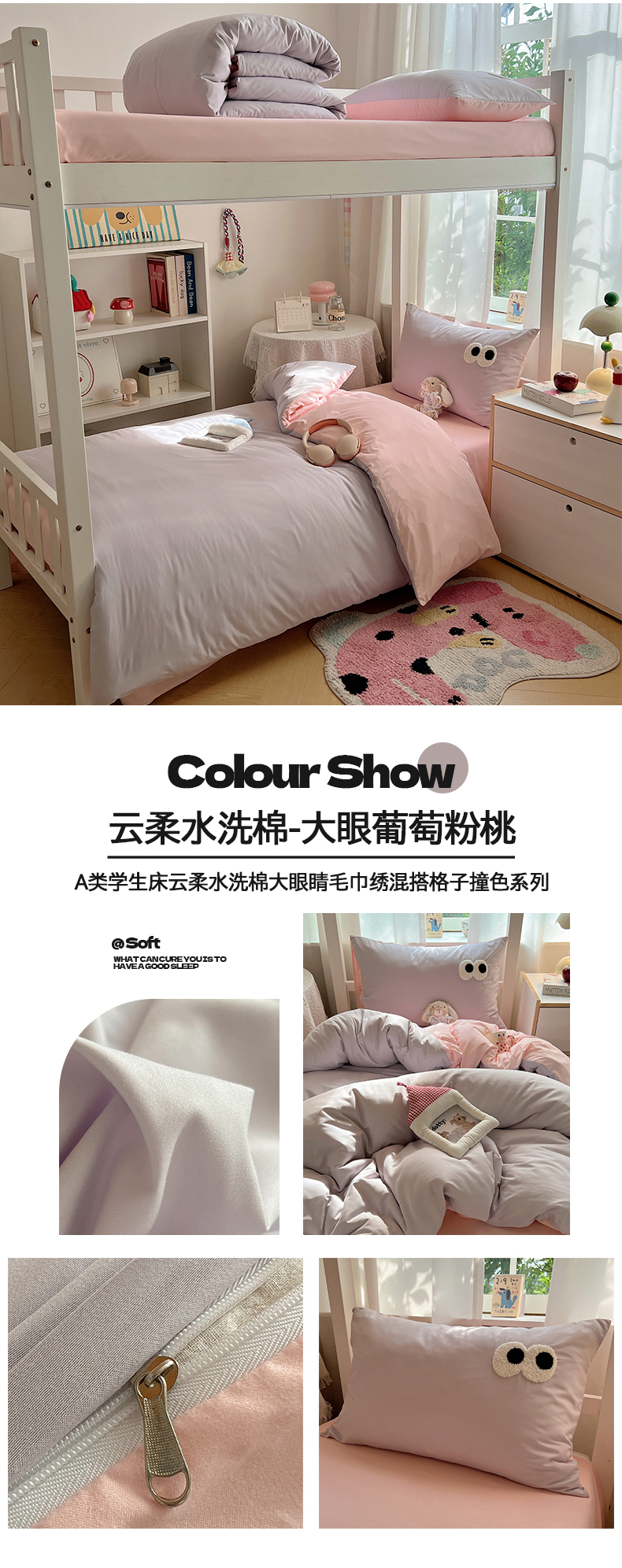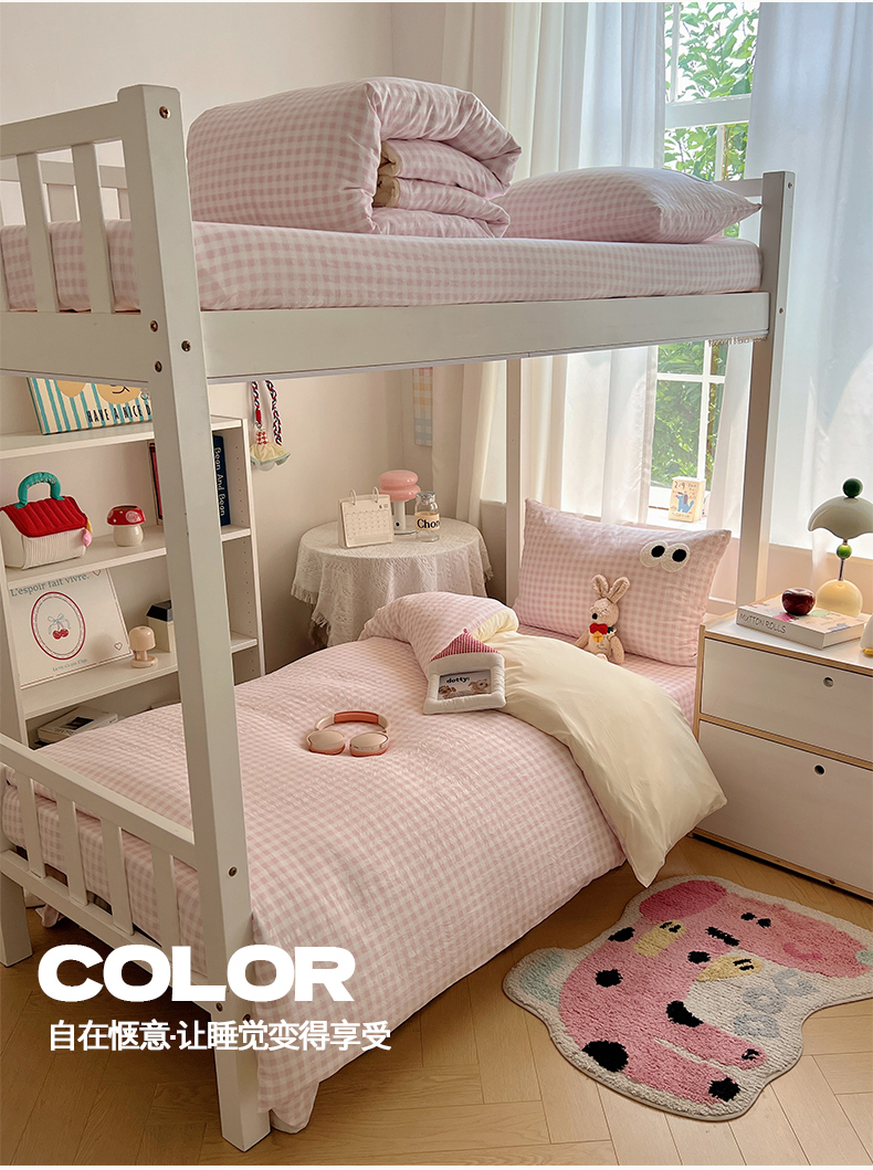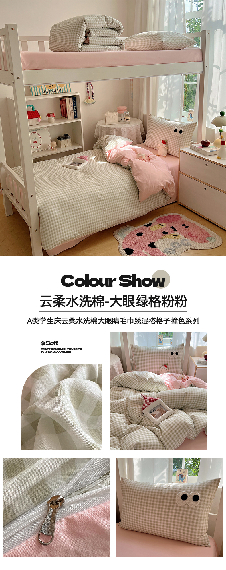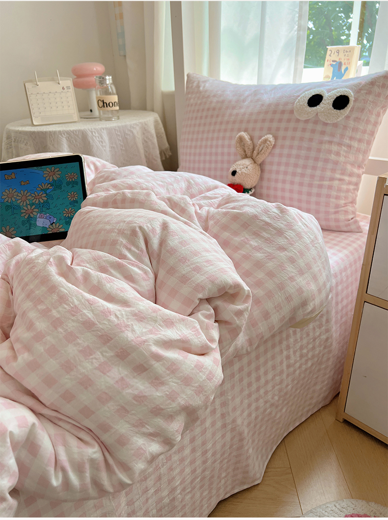 当前位置: 91家纺网 > 商品网购 > 床品套件 > 三件套 > 桃心家居 2025新款A类学生床三件套亲肤舒适软糯云柔水洗棉大眼睛毛巾绣混搭格子撞色系列四件套 云柔水洗棉-大眼粉小格奶黄