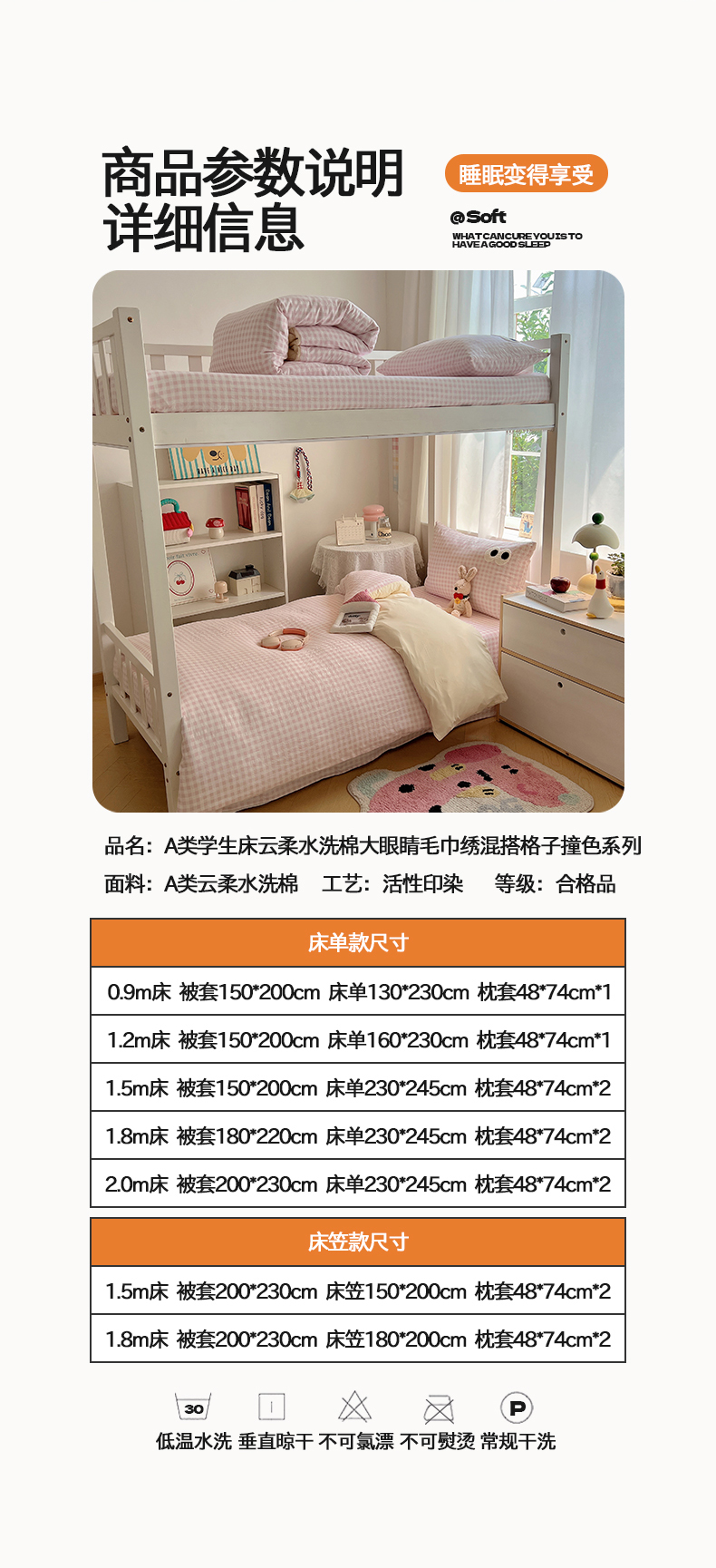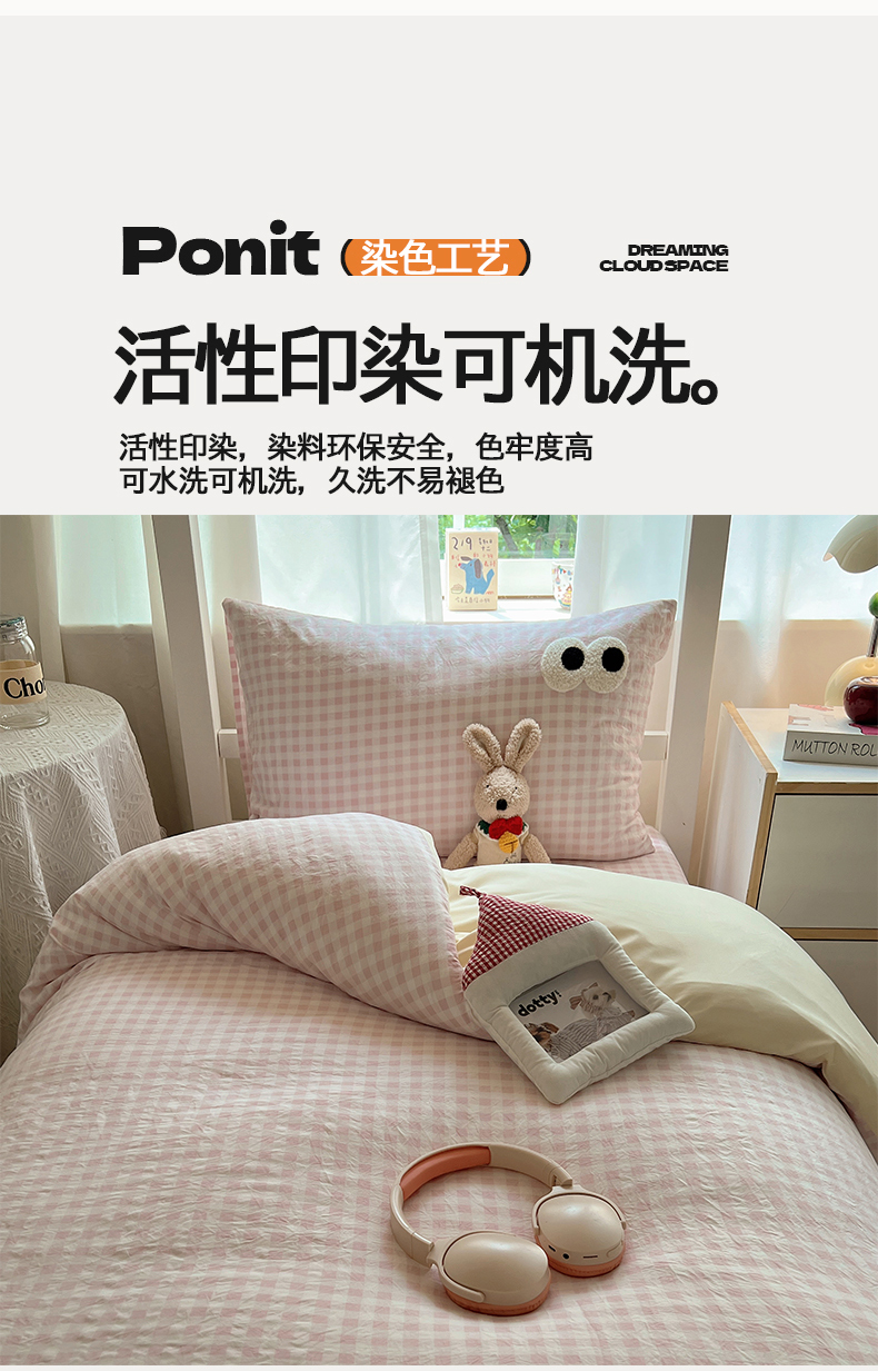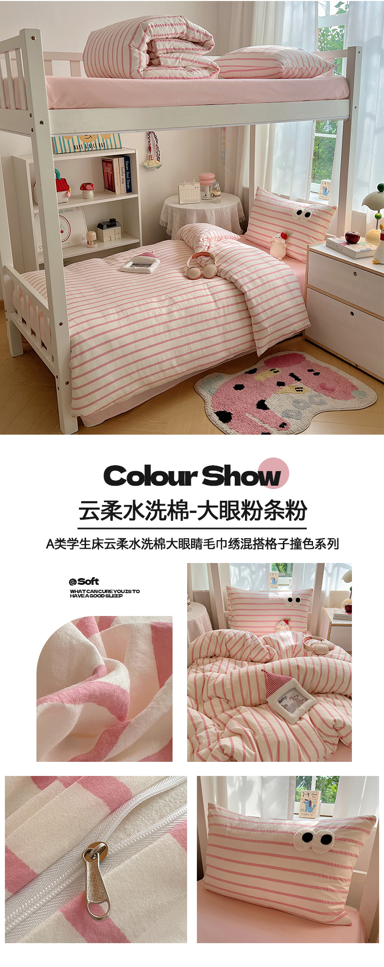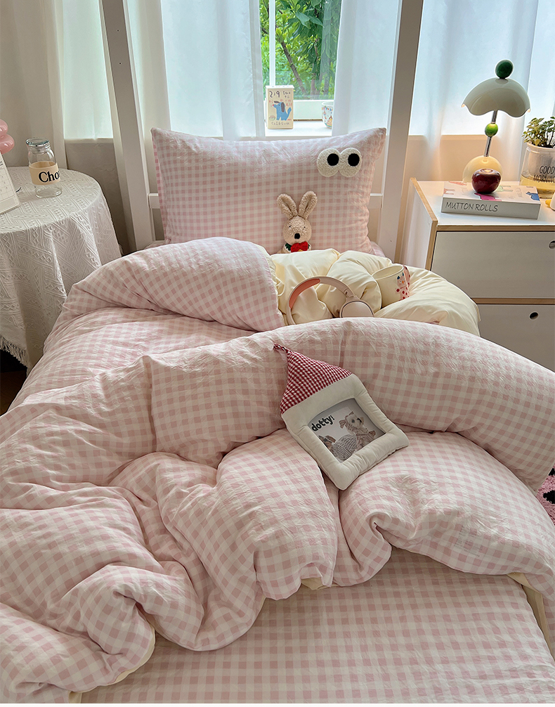 当前位置: 91家纺网 > 商品网购 > 床品套件 > 三件套 > 桃心家居 2025新款A类学生床三件套亲肤舒适软糯云柔水洗棉大眼睛毛巾绣混搭格子撞色系列四件套 云柔水洗棉-大眼粉小格奶黄