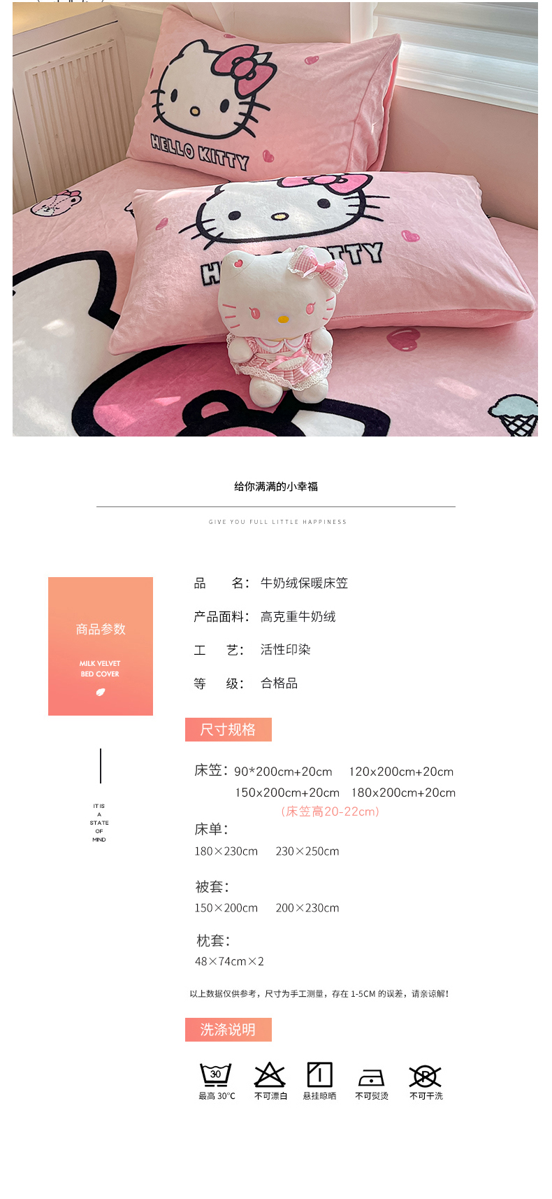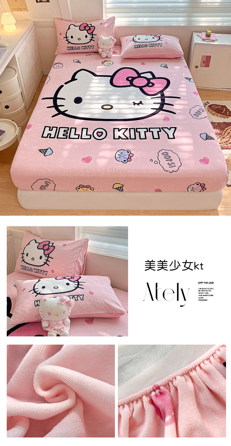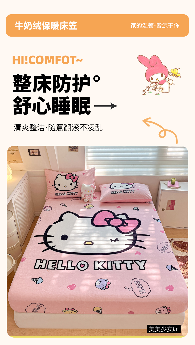 金爱家 2025新款高克重牛奶绒单品系列保暖床单床笠单件 绒-D美美少女kt