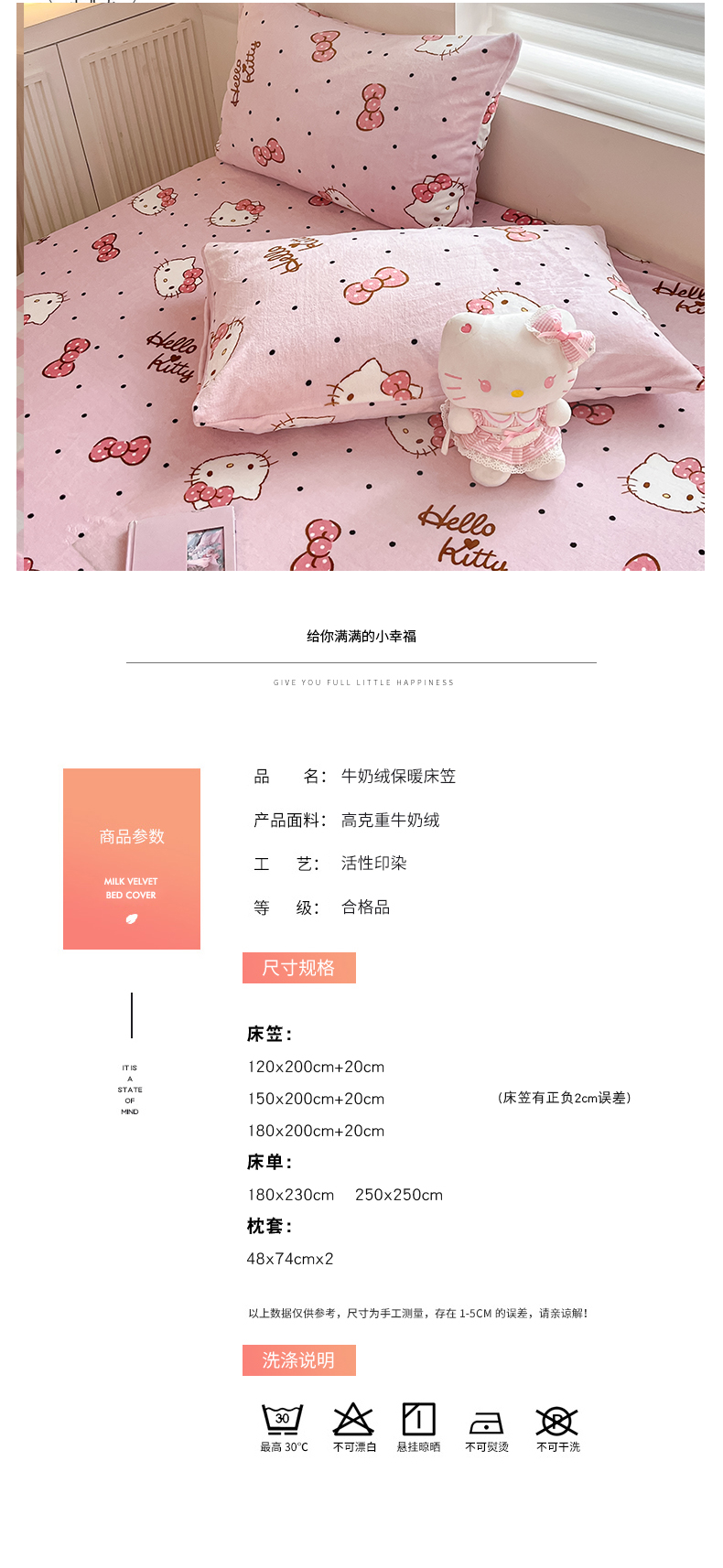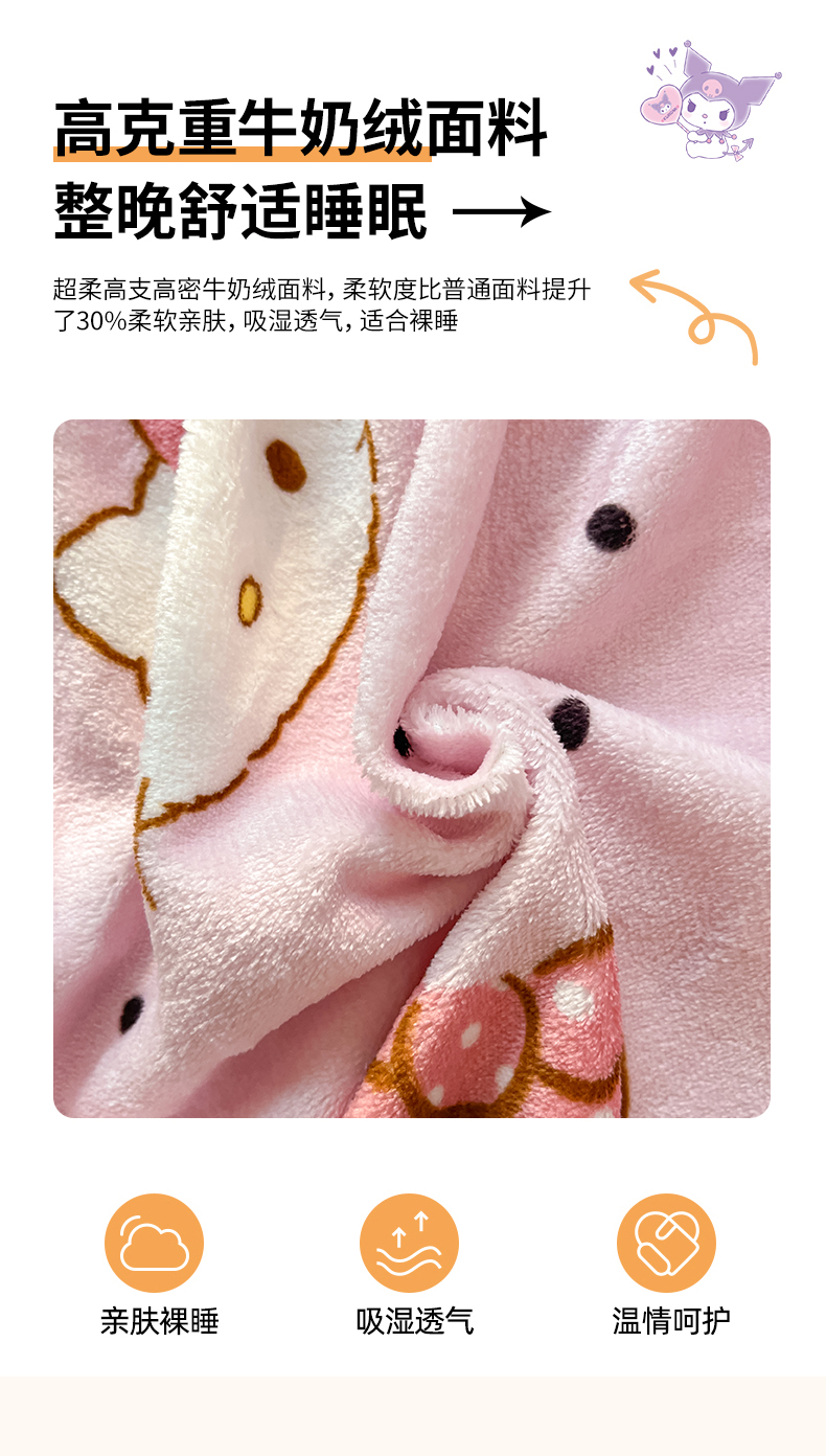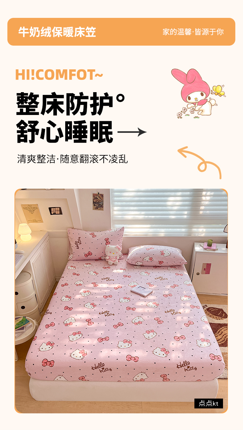 商品名称:(总)金爱家 2025新款三丽鸥牛奶绒单品系列床单床笠单件