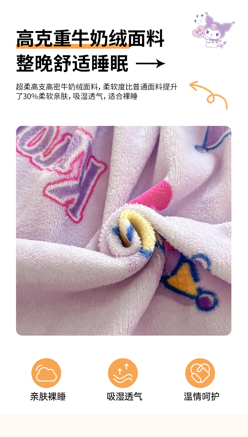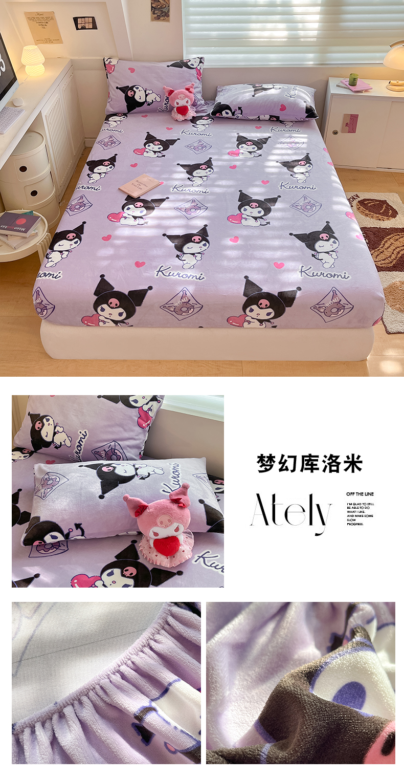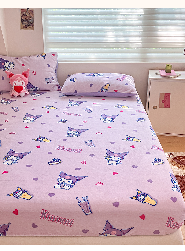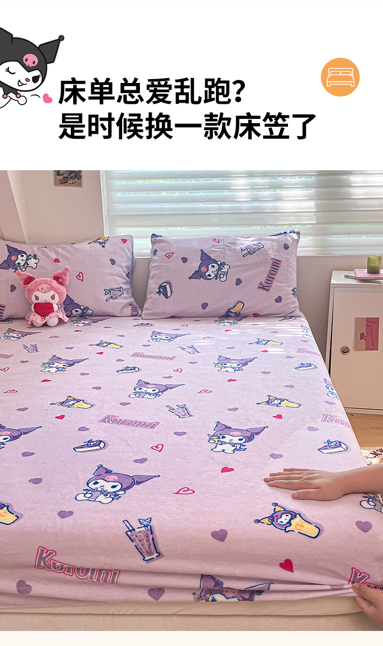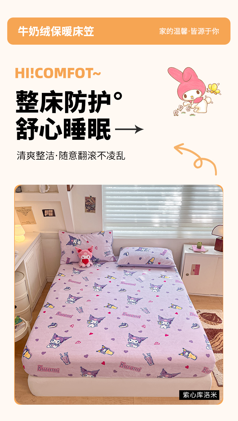 金爱家 2025新款三丽鸥牛奶绒单品系列床单床笠单件 绒-X紫心库洛米