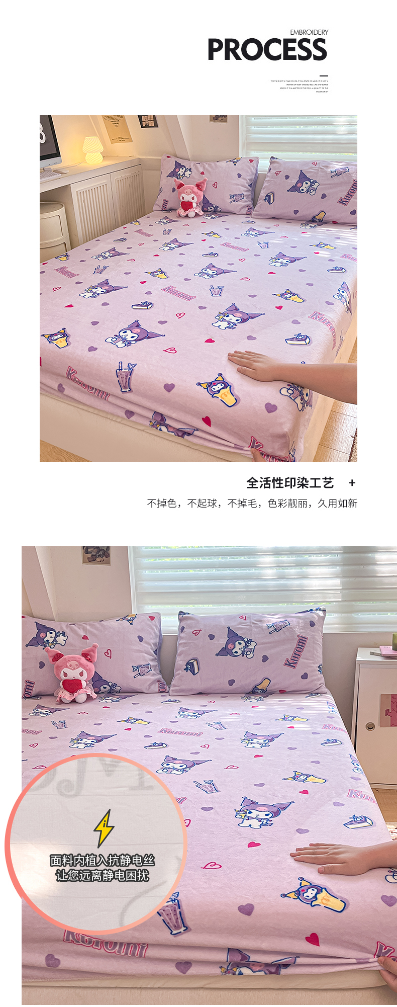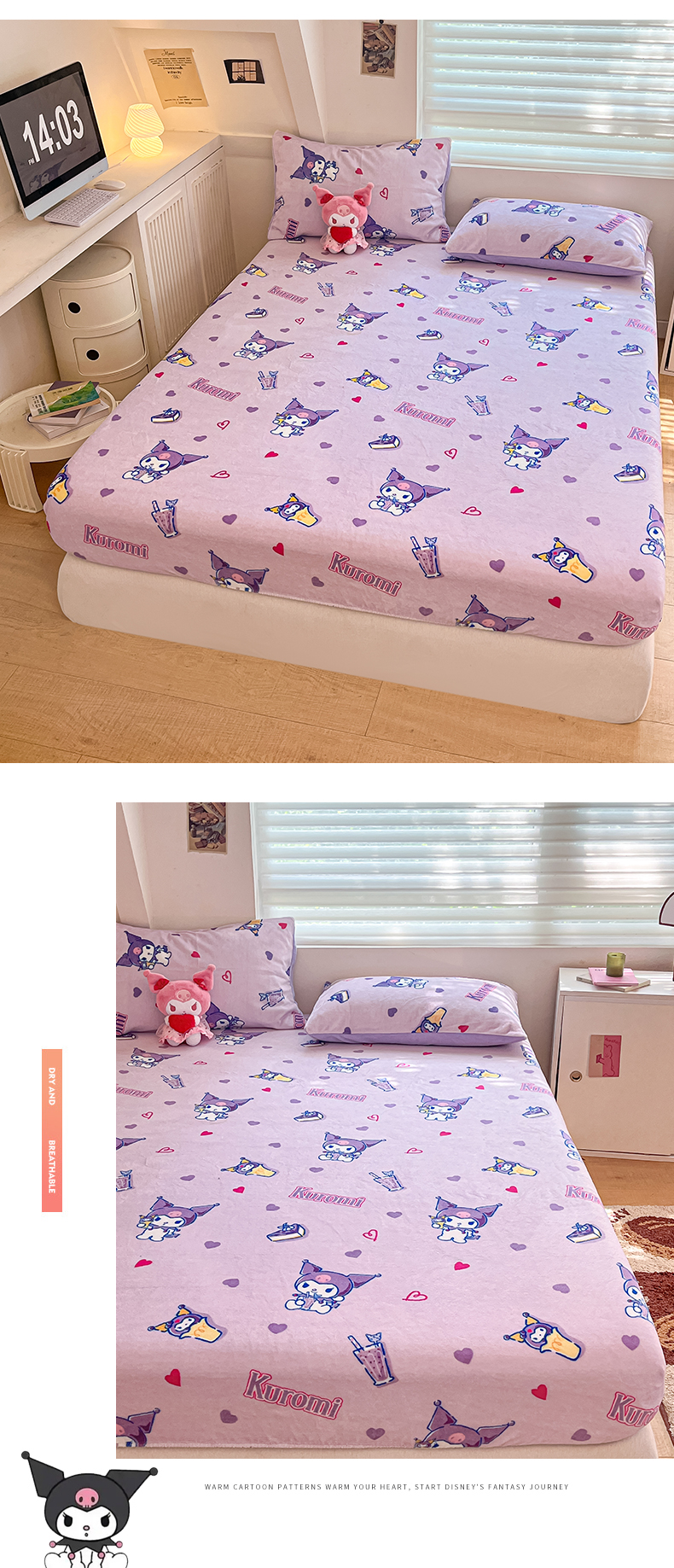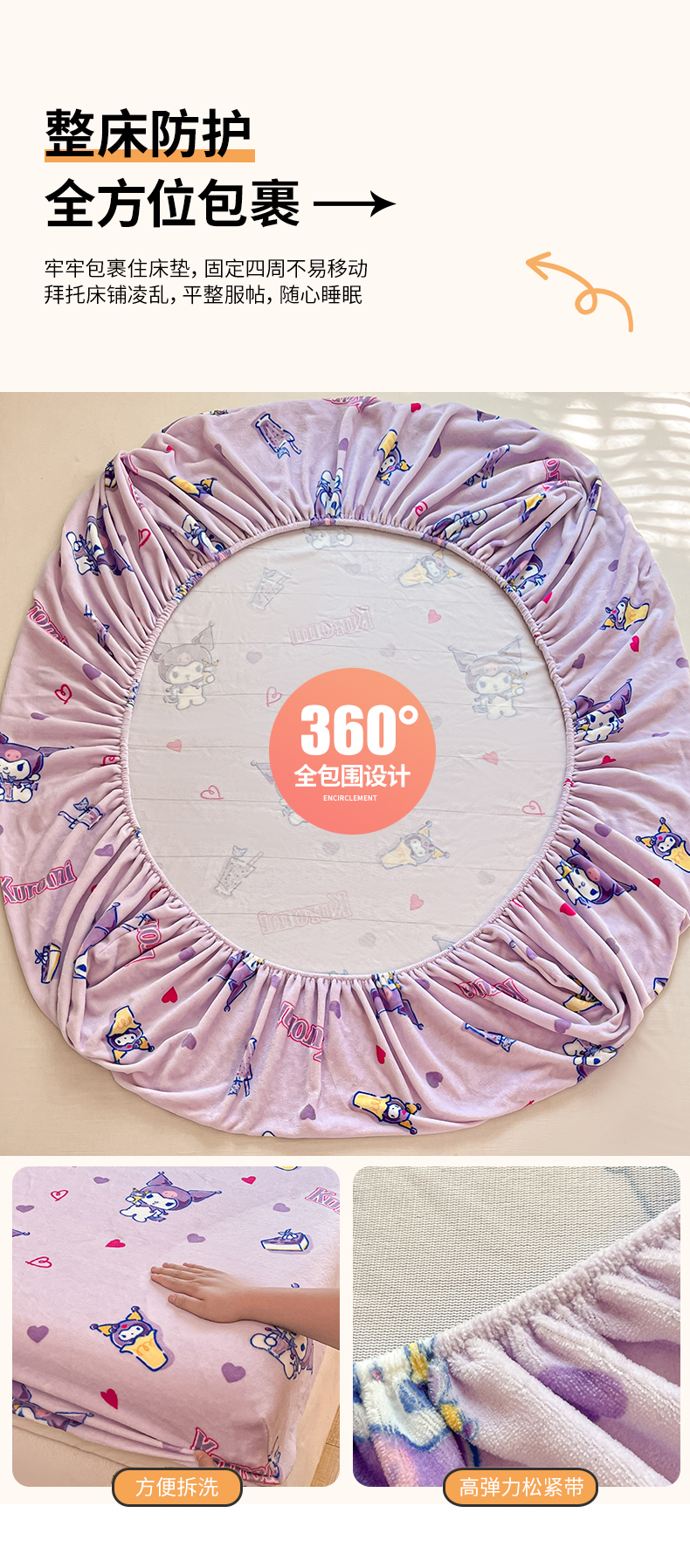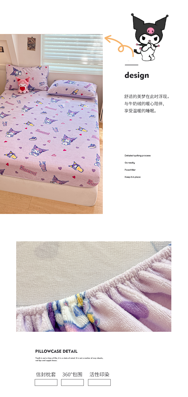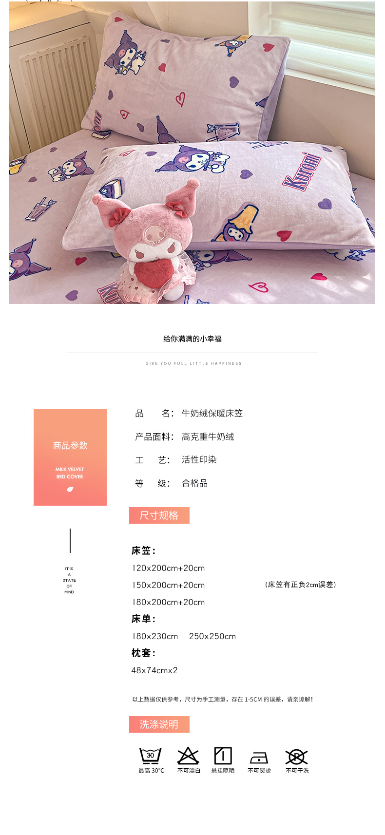 金爱家 2025新款三丽鸥牛奶绒单品系列床单床笠单件 绒-X紫心库洛米