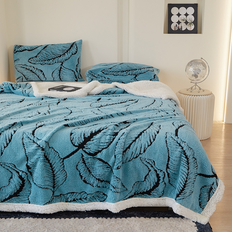 商品名称:楼兰公主 2025新款阳离子羊羔绒蕉叶绒毯双层毛毯毯子 蕉叶绒-绿