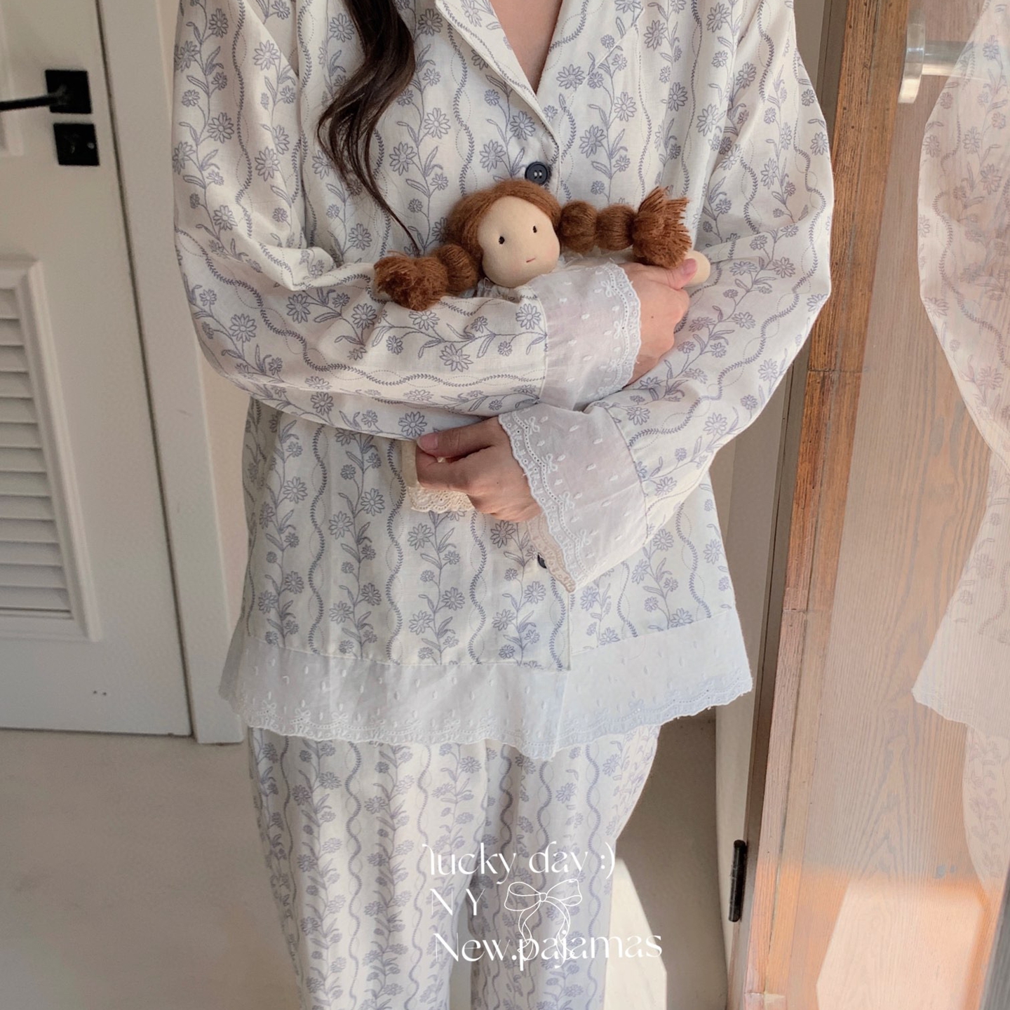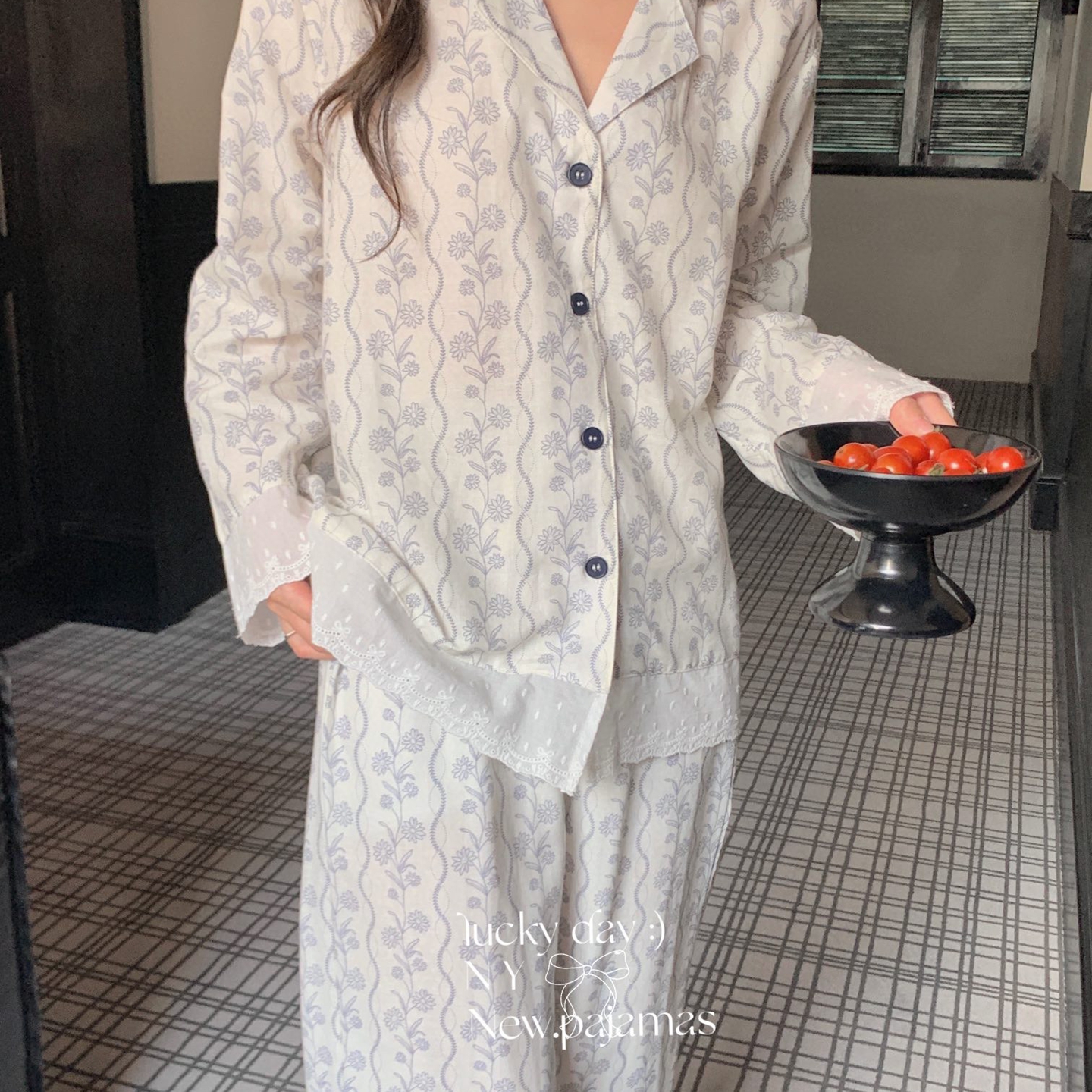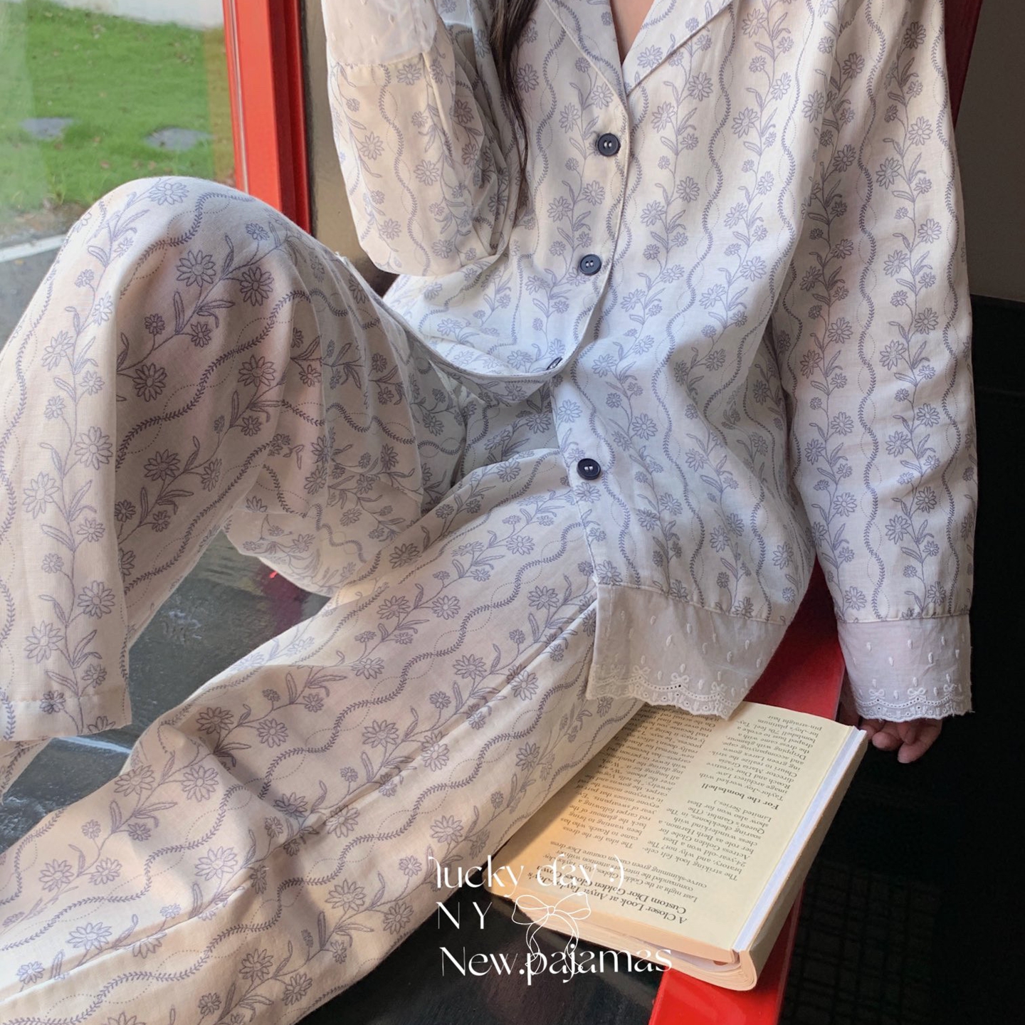 (总)纽约生活 2025新款有氧纱南法蕾丝西装领长袖长裤(会员-5),冰碎紫花,初禾,杉野蓝,兔影繁花,烟雨蝴蝶