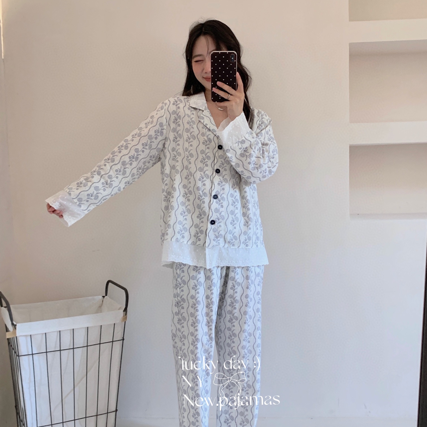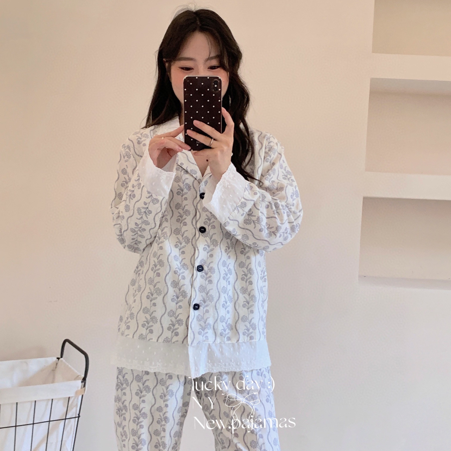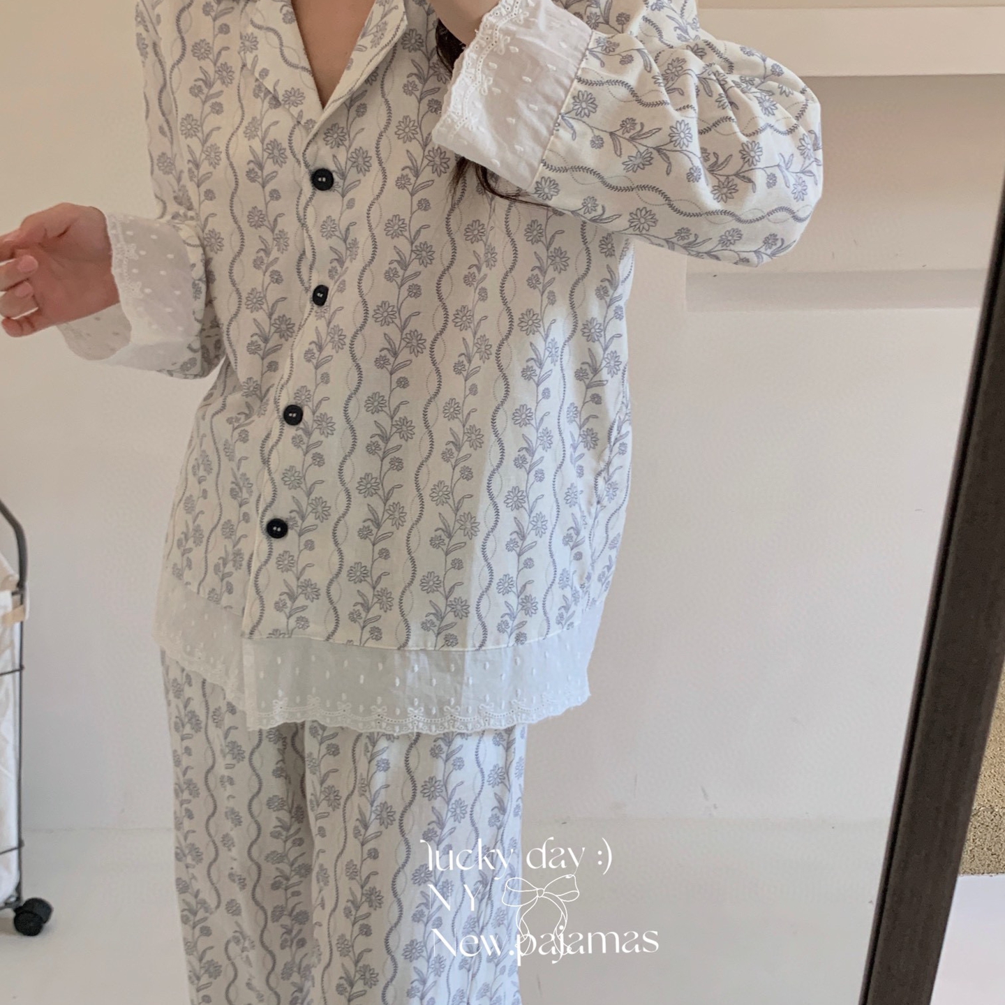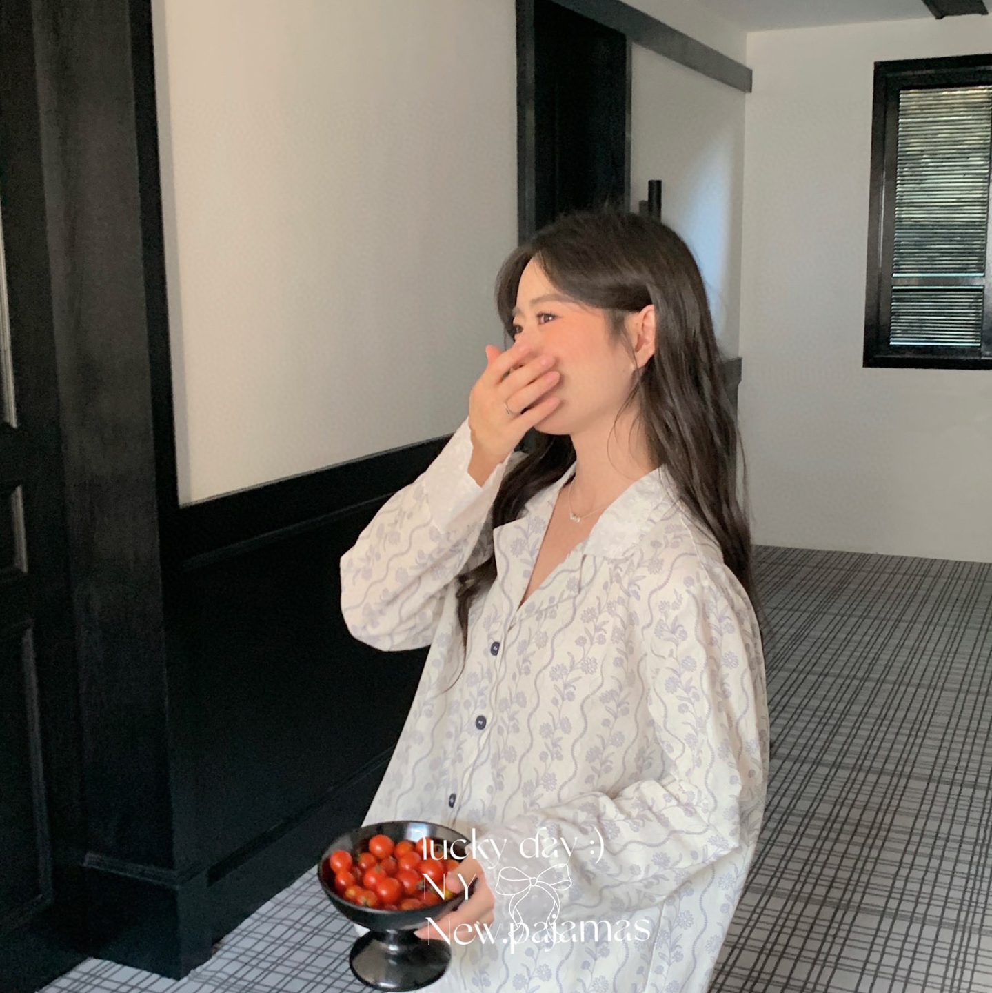 (总)纽约生活 2025新款有氧纱南法蕾丝西装领长袖长裤(会员-5),冰碎紫花,初禾,杉野蓝,兔影繁花,烟雨蝴蝶