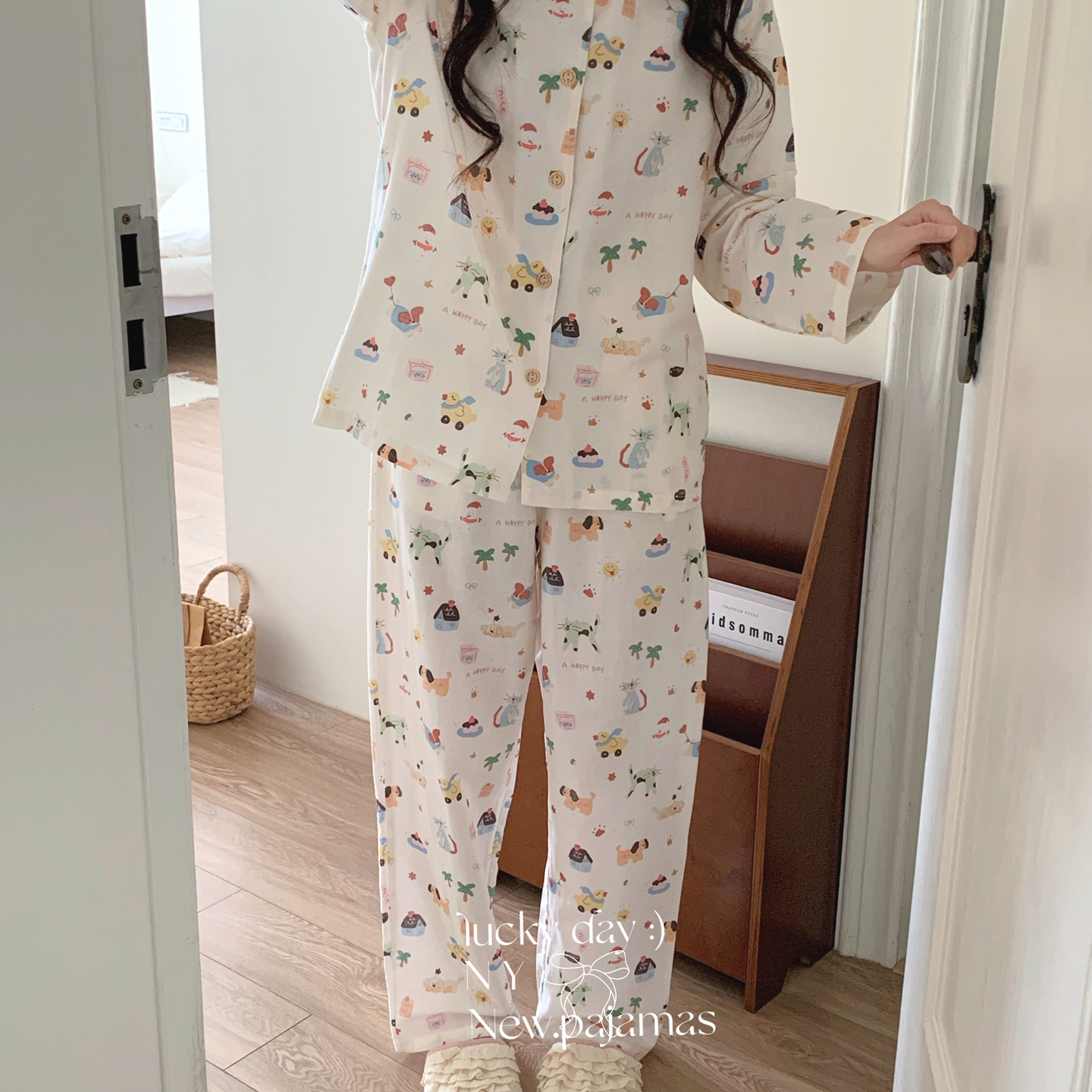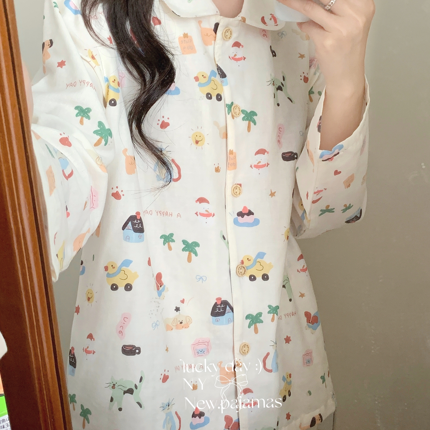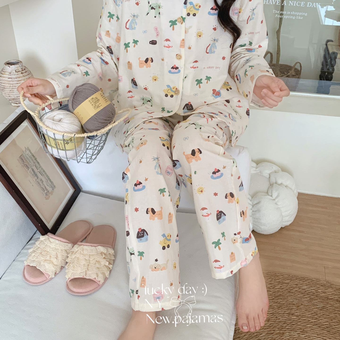 (总)纽约生活 2025新款绉布圆领开扣长袖长裤(会员-5),波比熊,黑碎花猫咪,蝴蝶结粉熊,花花狗,蓝碎花,塞纳花房