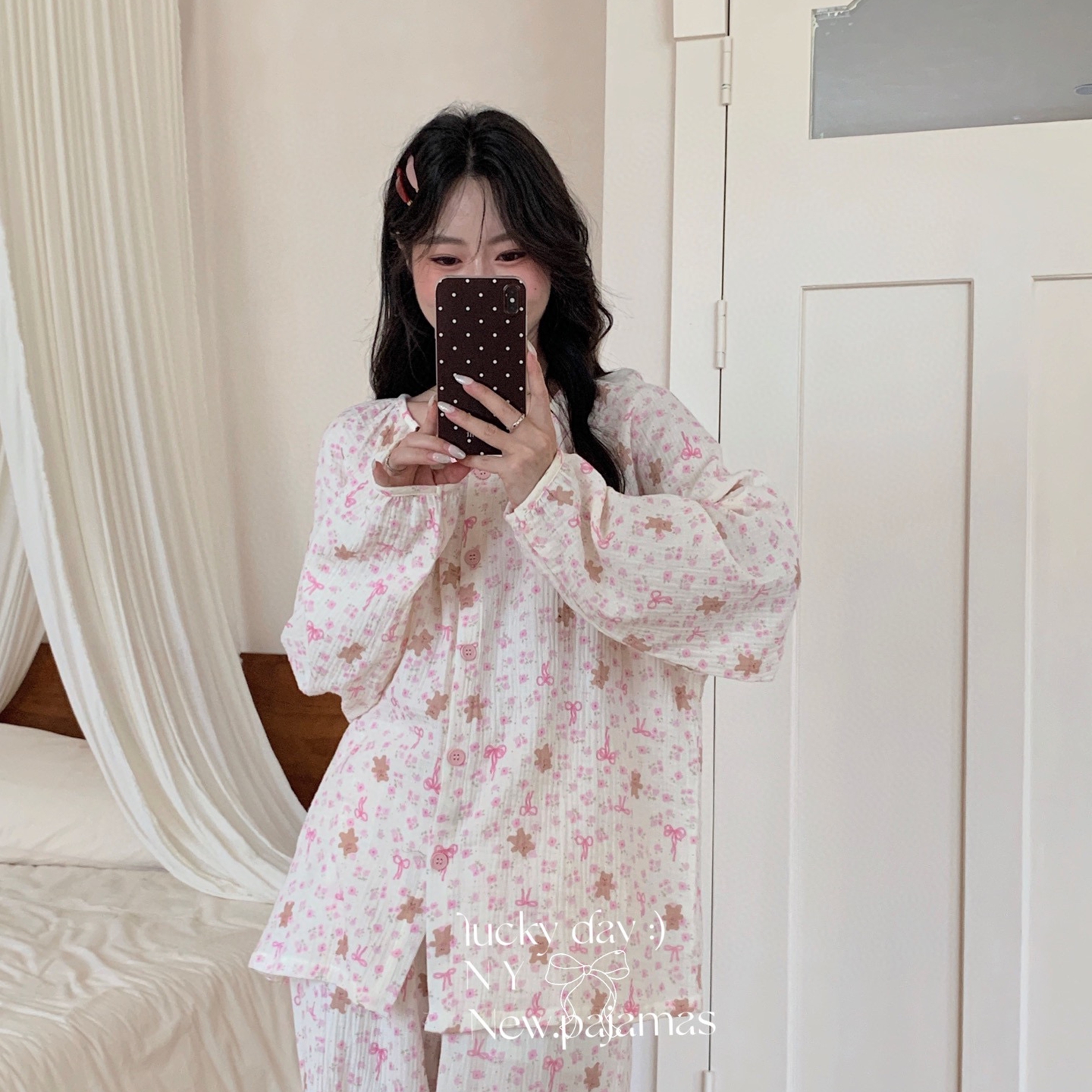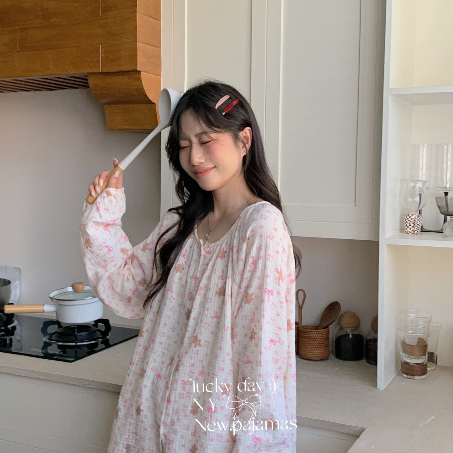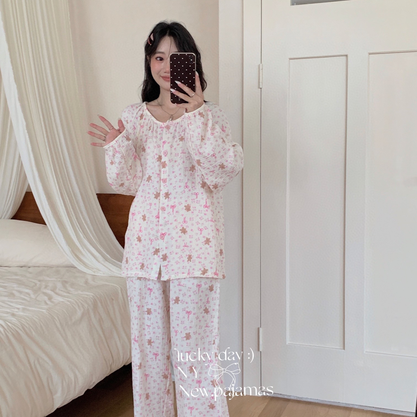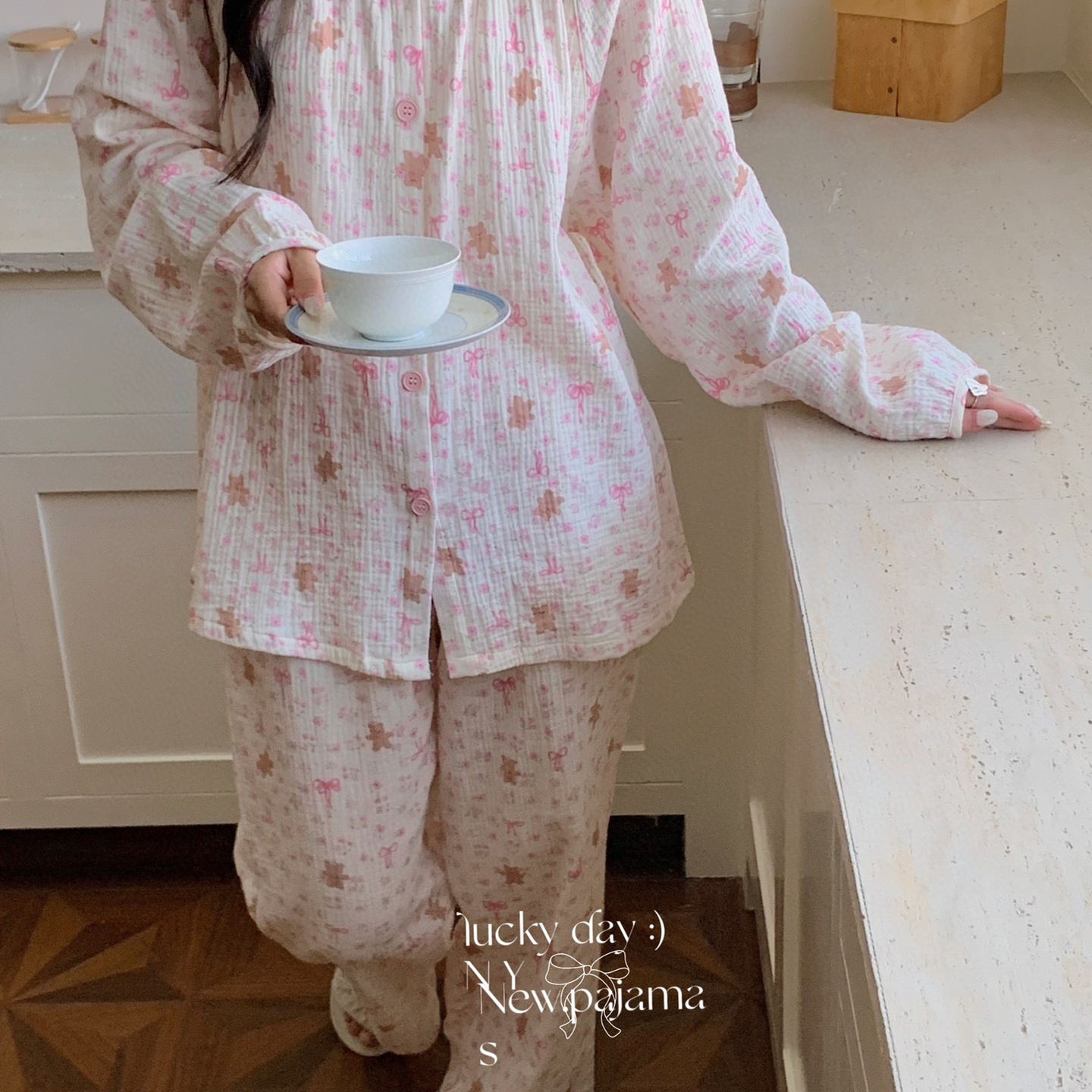 当前位置: 91家纺网 > 商品网购 > 居家日用 > 睡衣/家居服套装 > 纽约生活 2025新款绉布圆领开扣长袖长裤(会员-5) 蝴蝶结粉熊
