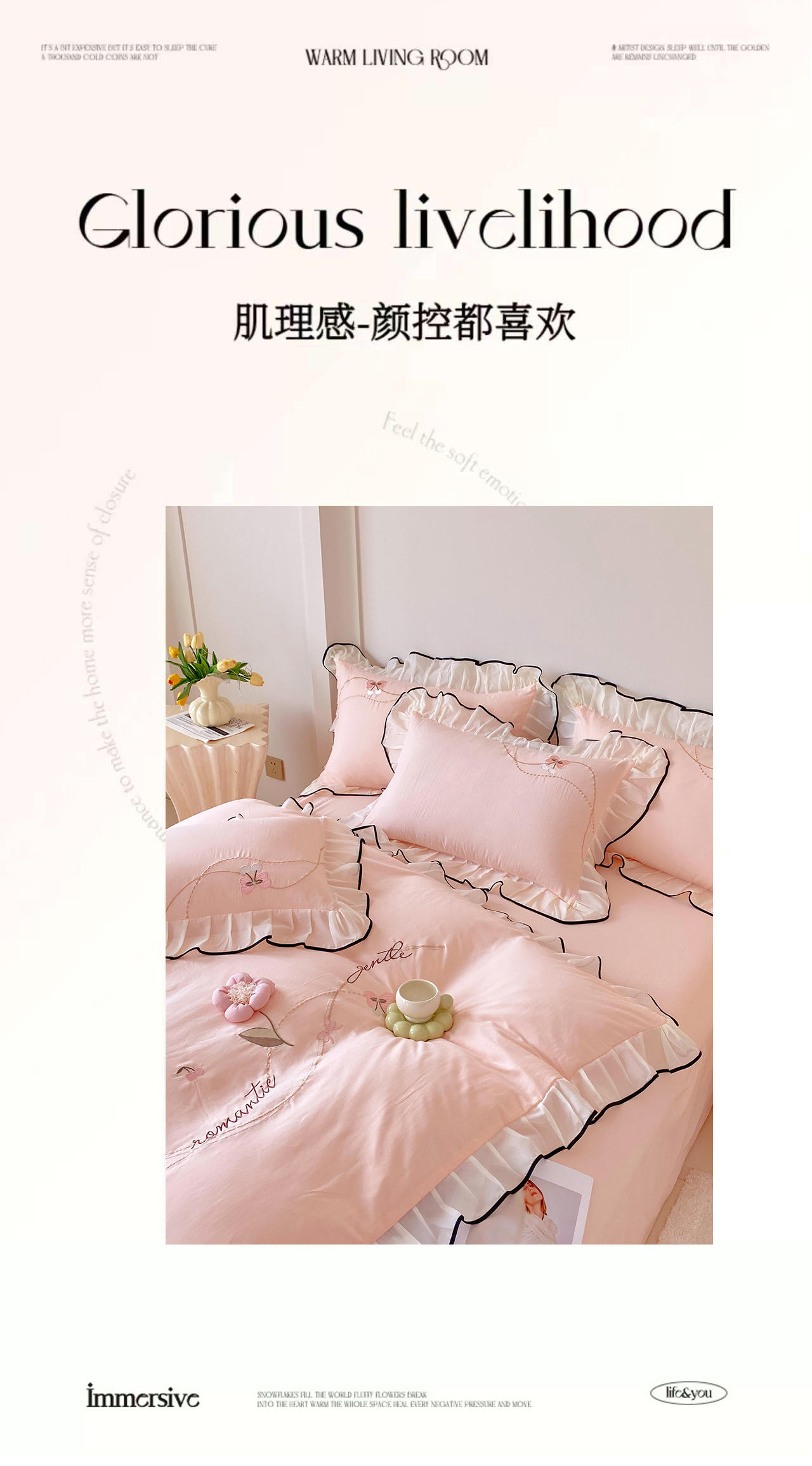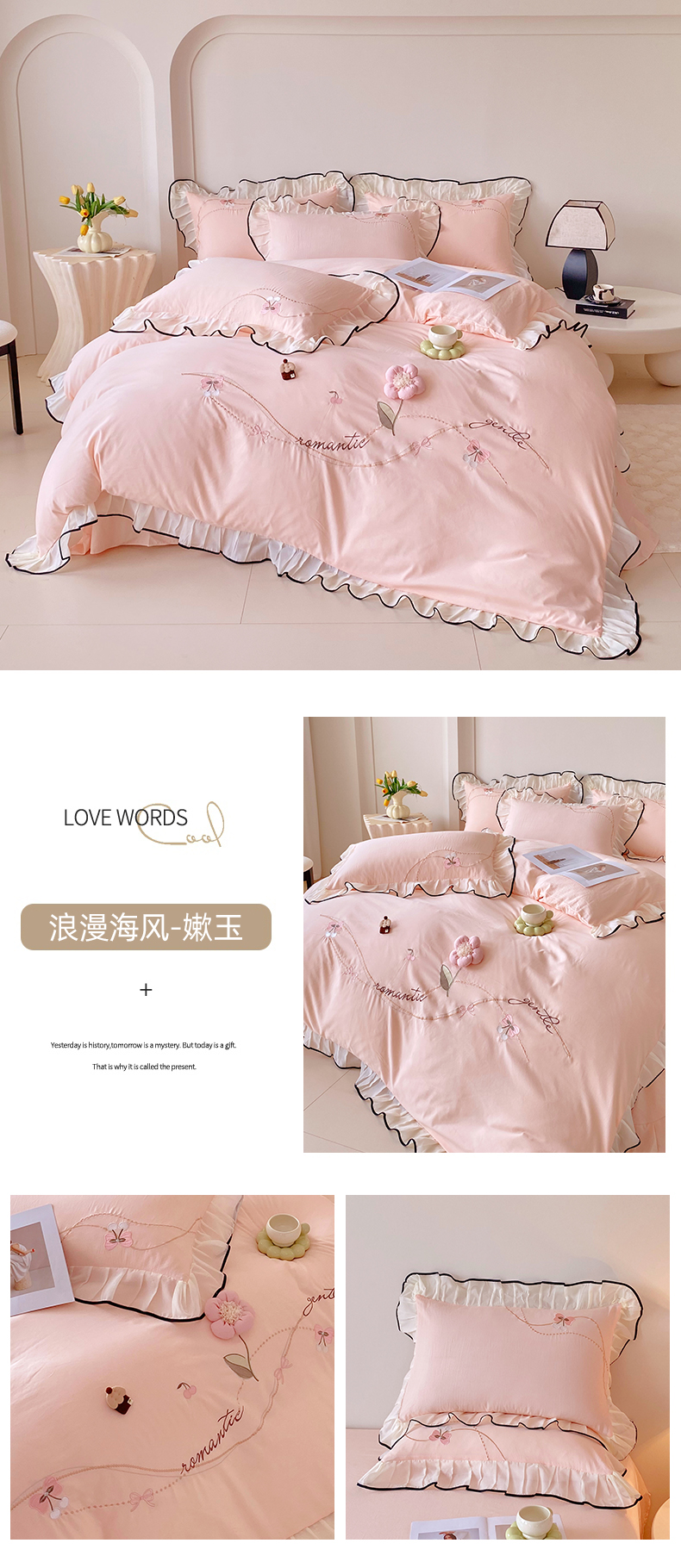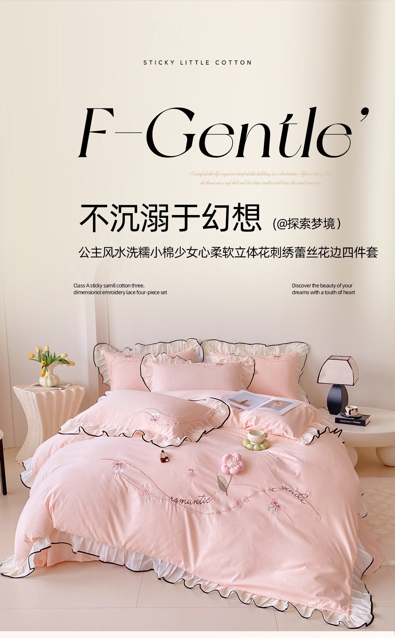 当前位置: 91家纺网 > 商品网购 > 床品套件 > 四件套 > 其它四件套 > 大麦乐田 2025新款公主风水洗糯小棉少女心柔软立体花刺绣蕾丝花边四件套 浪漫海风-浅兰