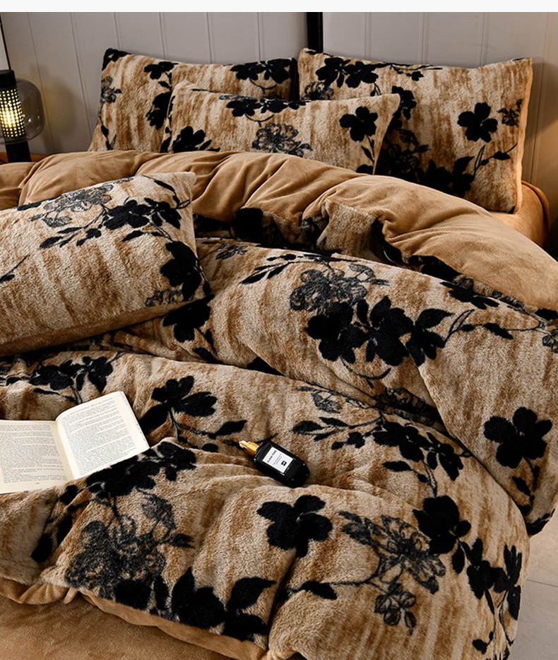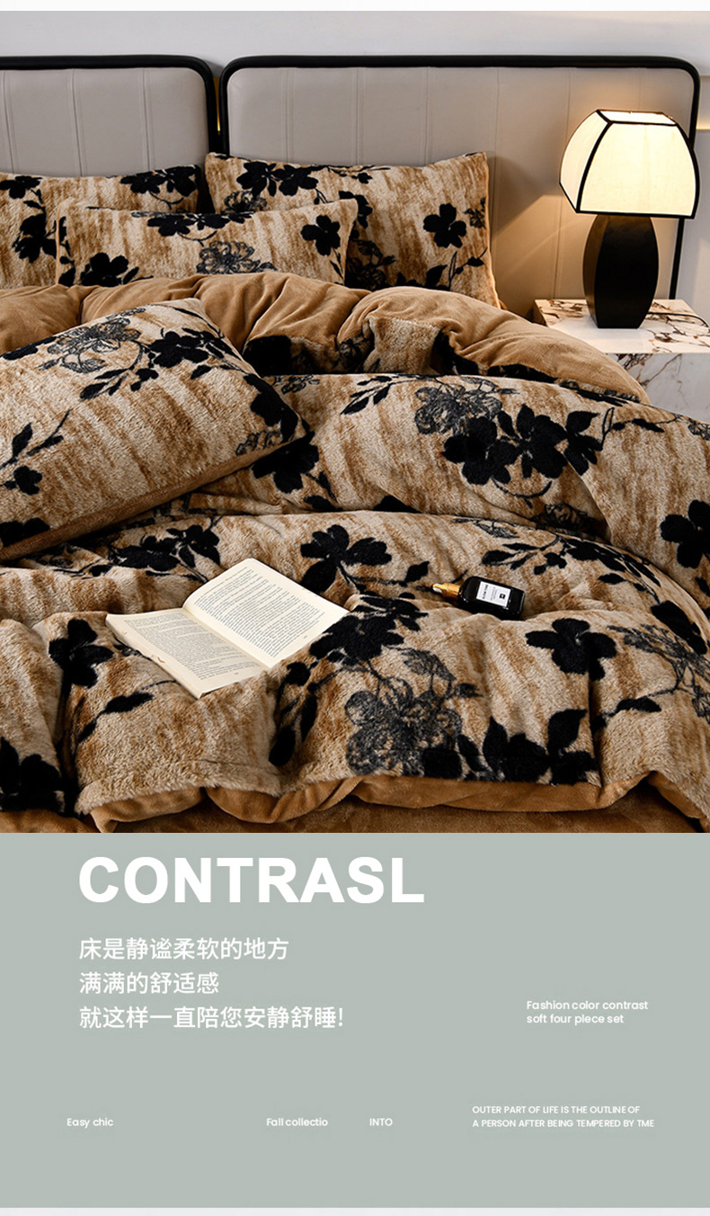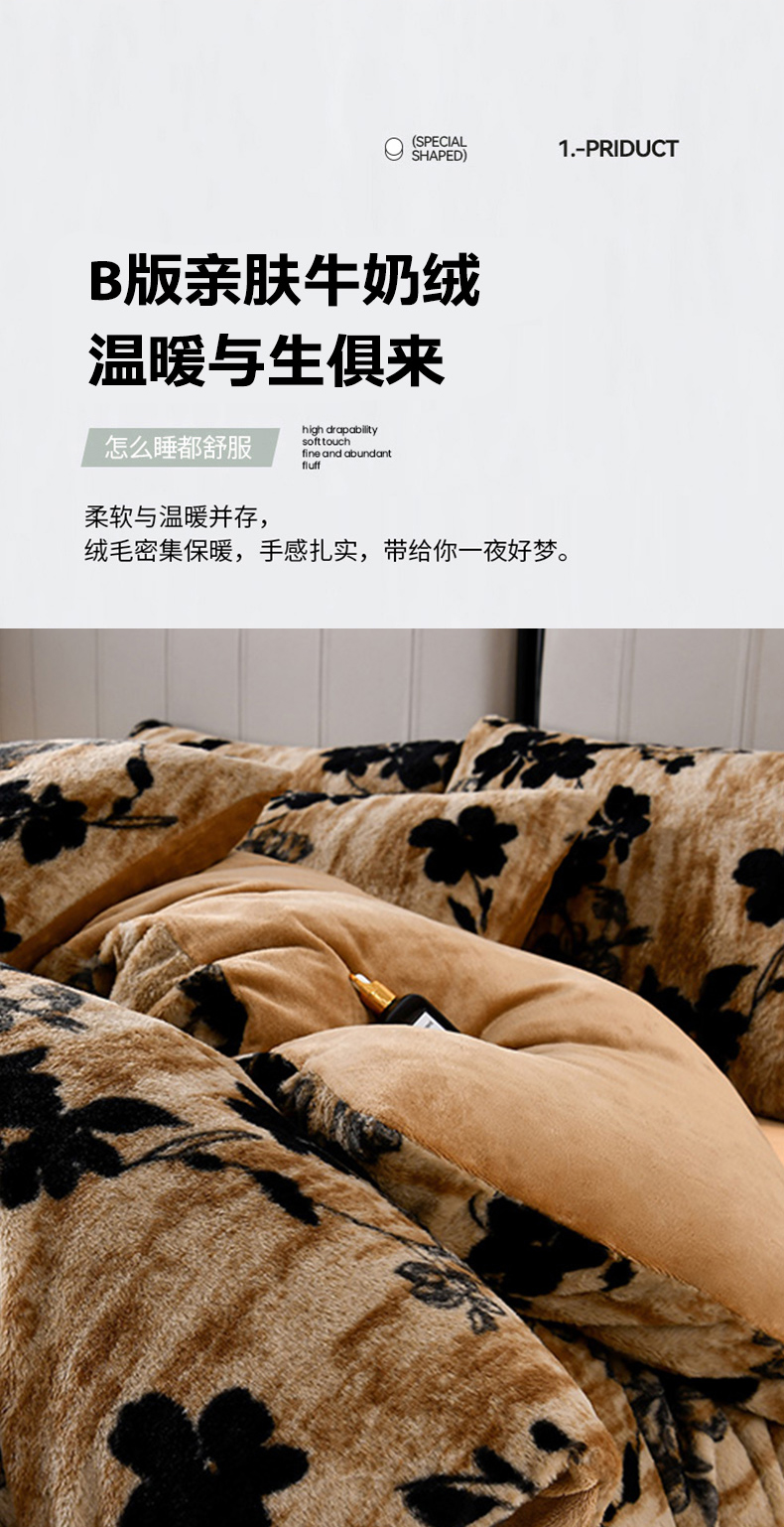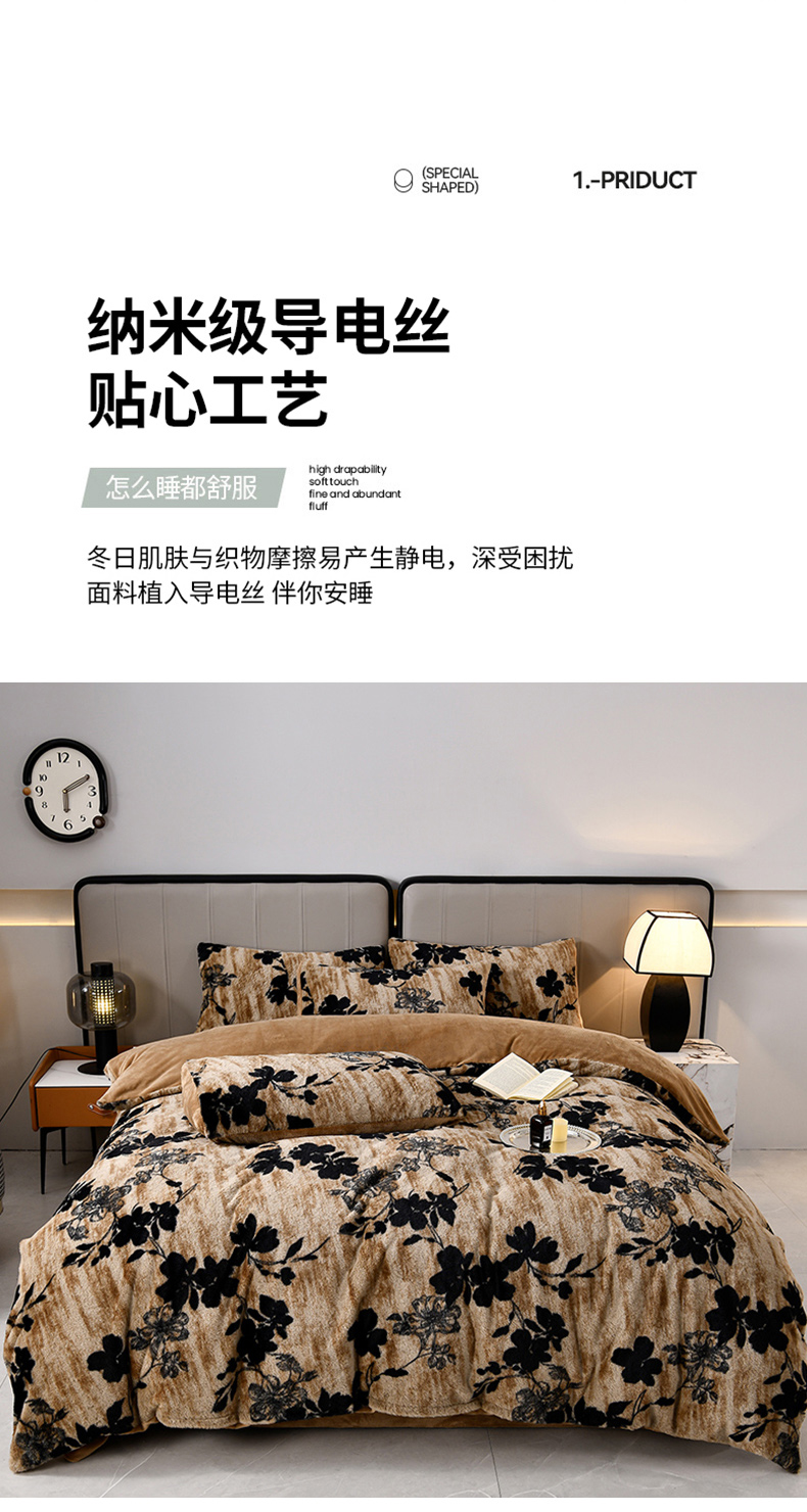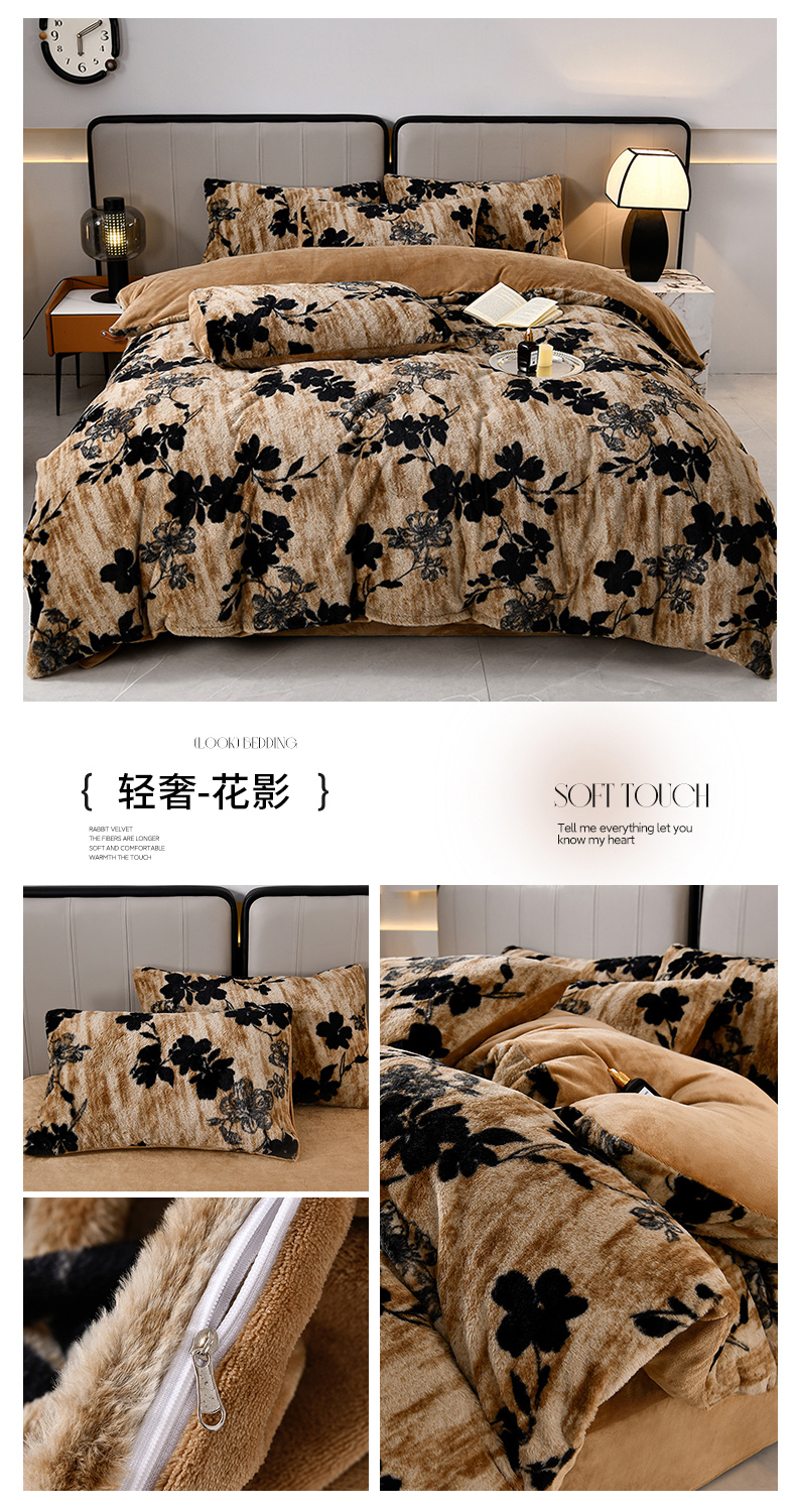 商品名称:梦之星 2025新款加厚8.5斤轻奢兔毛绒皮草绒牛奶绒四件套系列 轻奢-花影