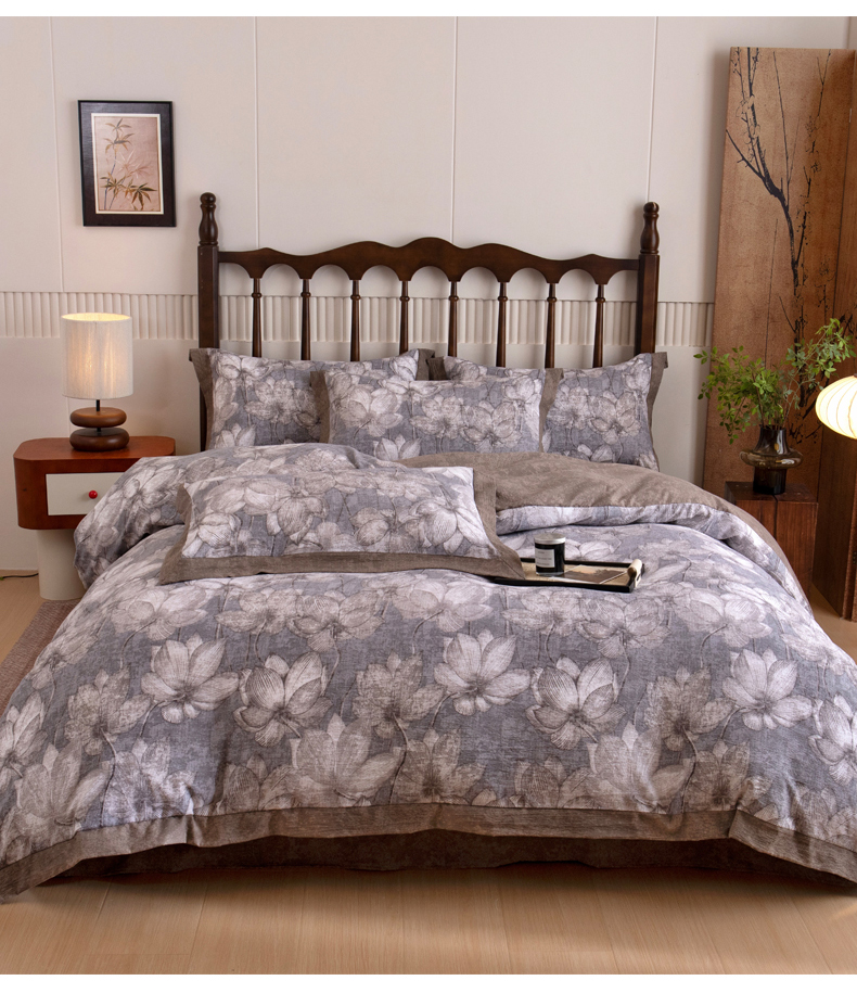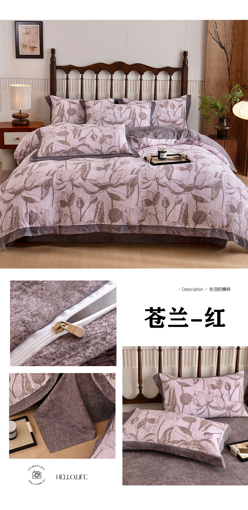 乐居家纺 2025新款高密亲肤亚麻舒爽透气四件套 苍兰-红