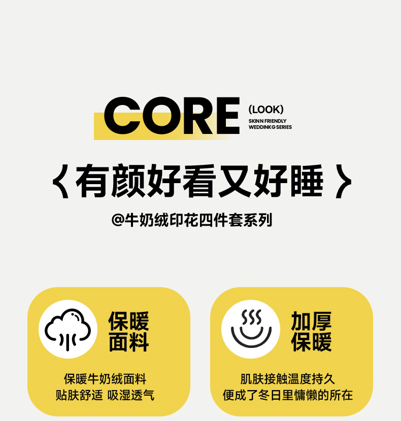 商品名称:悦织湾家纺 2025新款床裙款牛奶绒四件套加厚保暖印花轻奢时尚不易起静电冬季床上用品三四件套 快乐狗