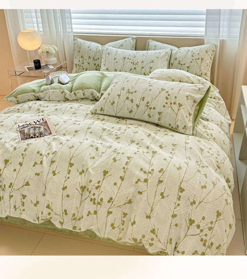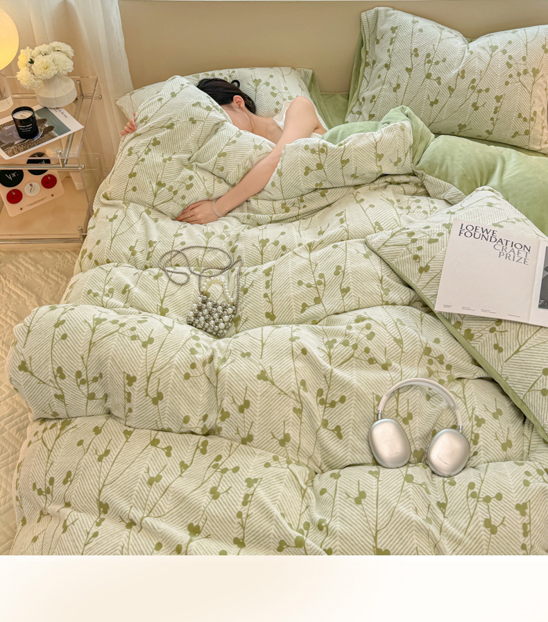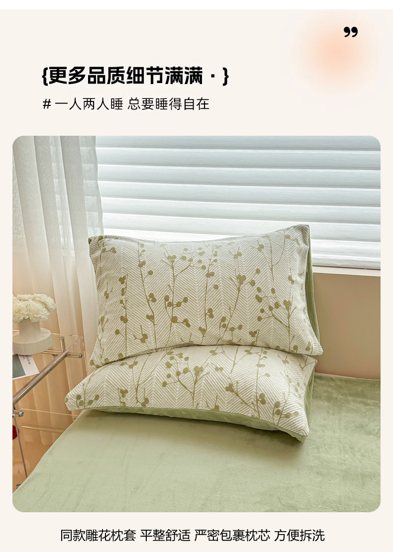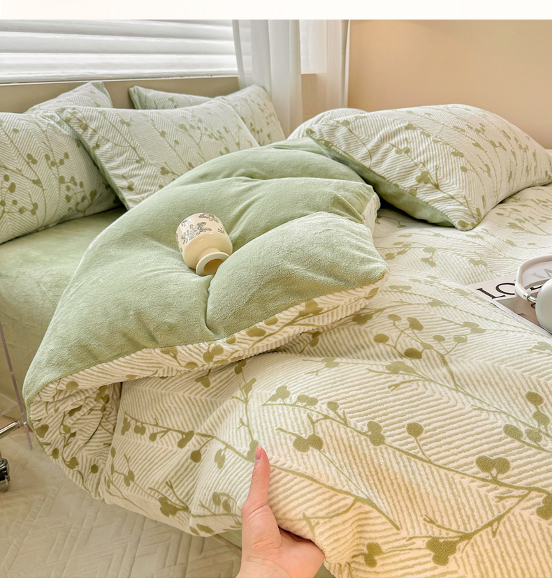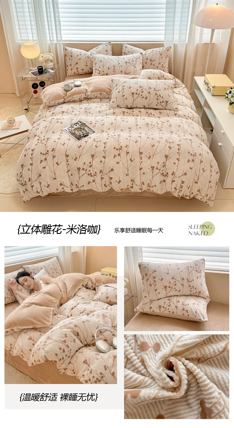 商品名称:眠博士 2025新款立体雕花牛奶绒加厚保暖四件套 立体雕花-米洛绿