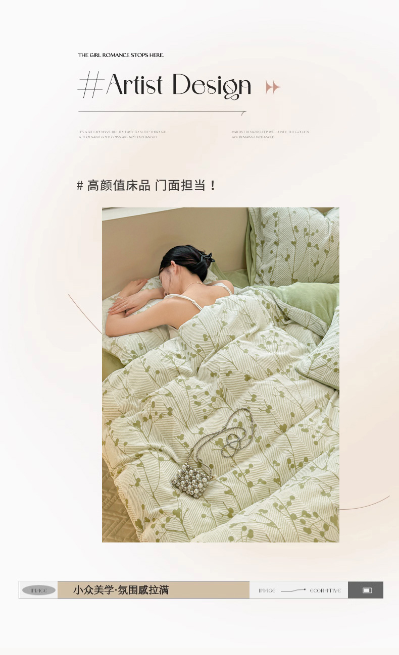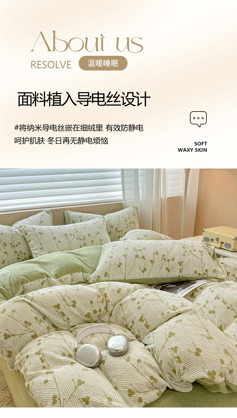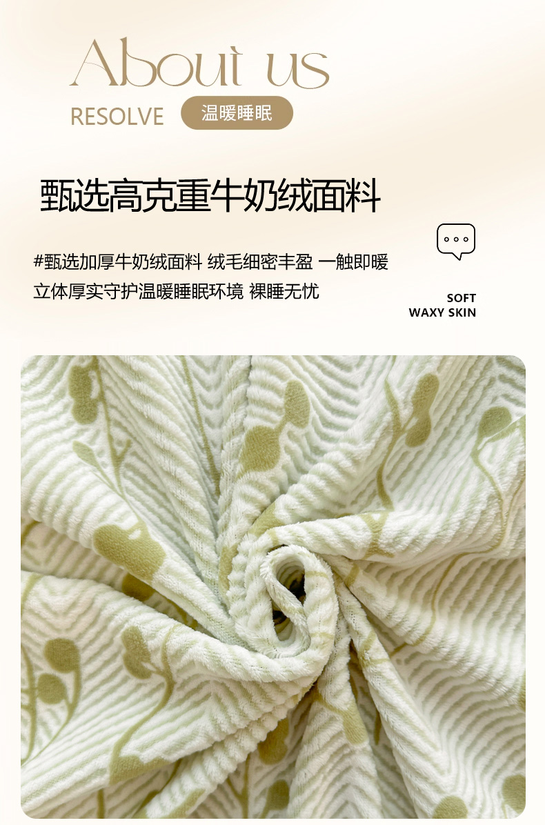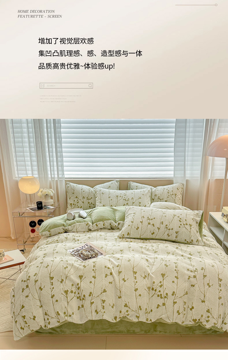 商品名称:眠博士 2025新款立体雕花牛奶绒加厚保暖四件套 立体雕花-米洛绿