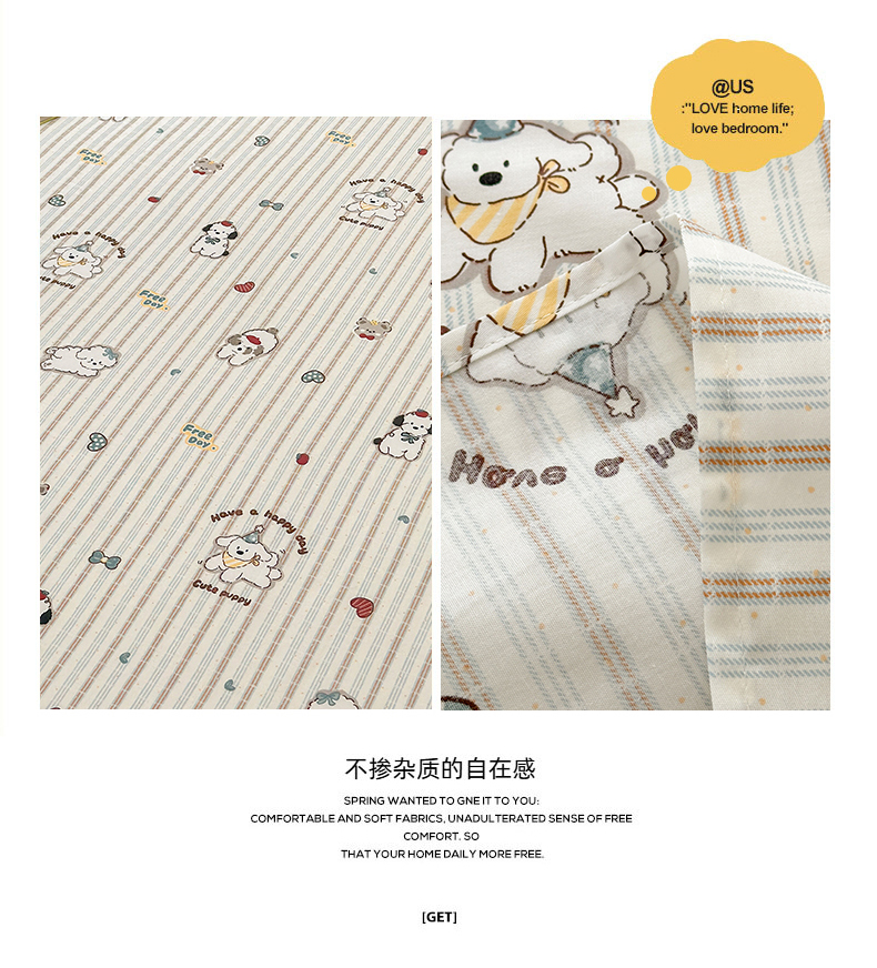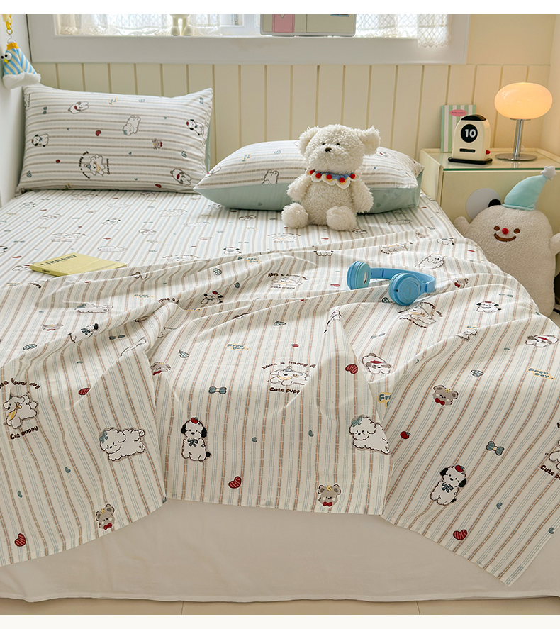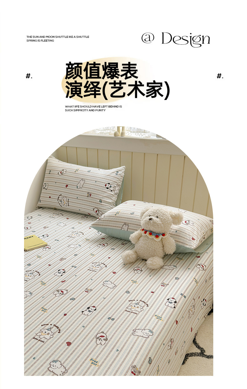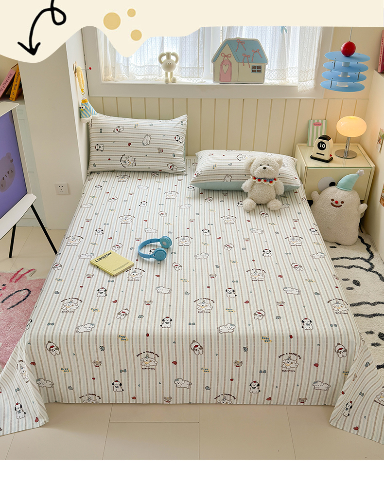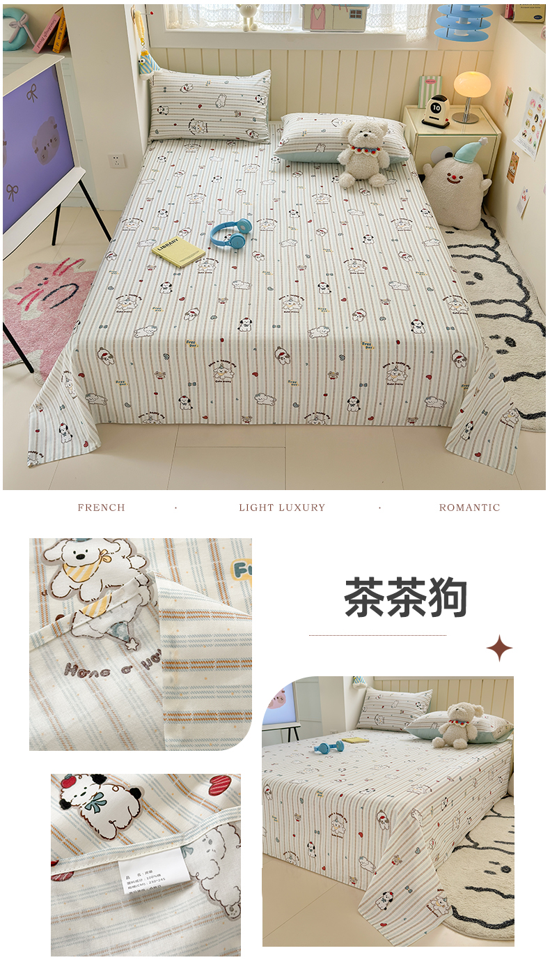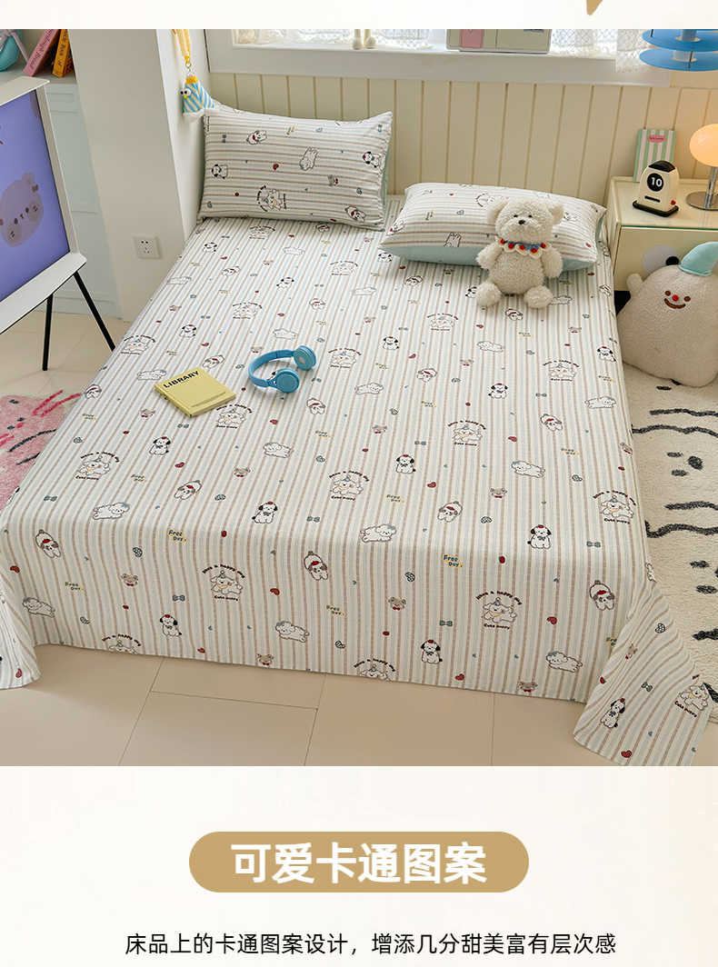 • 91家纺网 家纺一手货源 找家纺 曼之夏 2025新款全棉纯棉40支学生季卡通印花床单单床单床单单件 茶茶狗