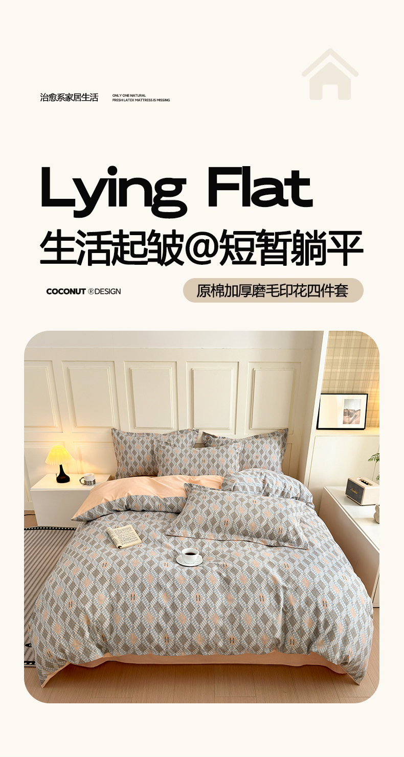 当前位置: 91家纺网 > 商品网购 > 床品套件 > 四件套 > 普通磨毛四件套 > 曼之夏 2025新款原棉加厚磨毛印花四件套 大都会