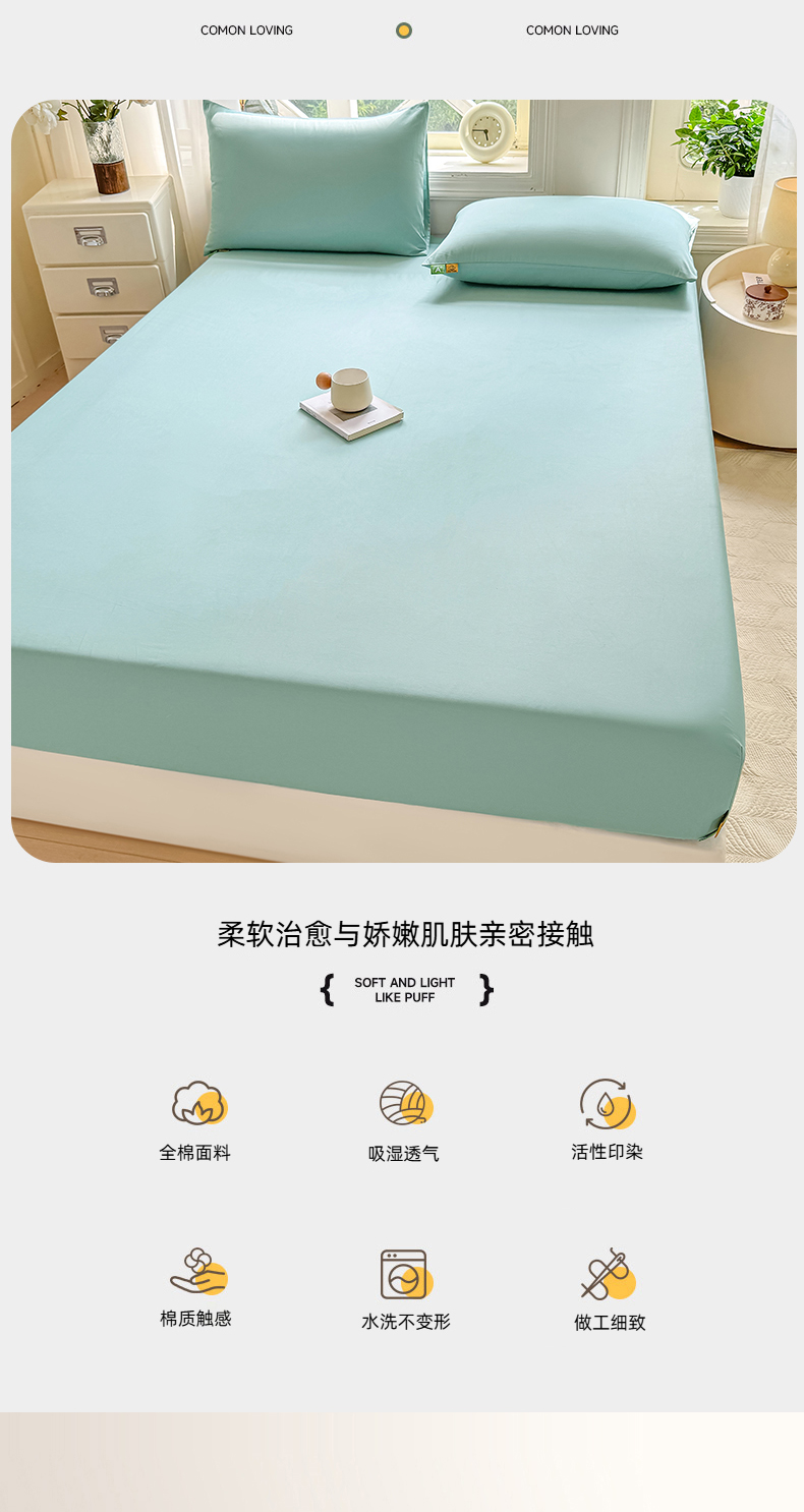 (总)凡客家居 2025新款全棉纯色简约床笠系列,冰川灰,丁香紫,豆沙粉,茉莉黄,奶茶,嫩芽绿,蔚蓝,仙女粉,雅灰,氧气蓝,中绿,组合图