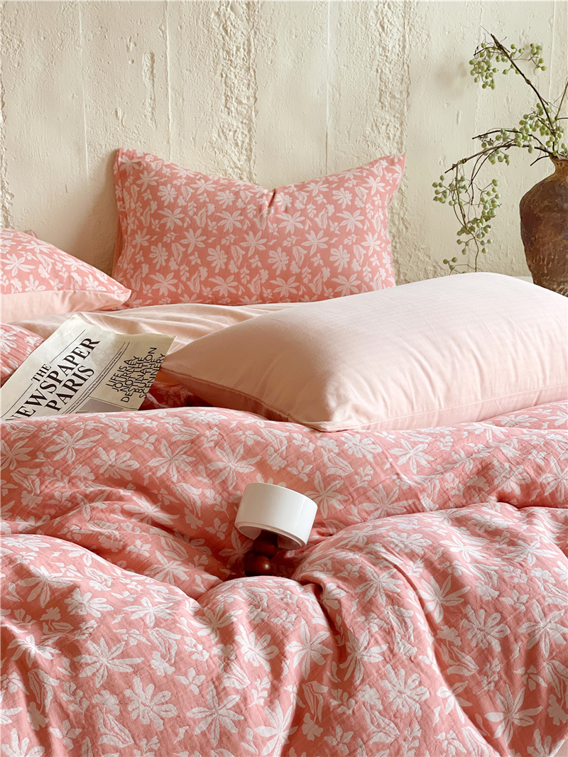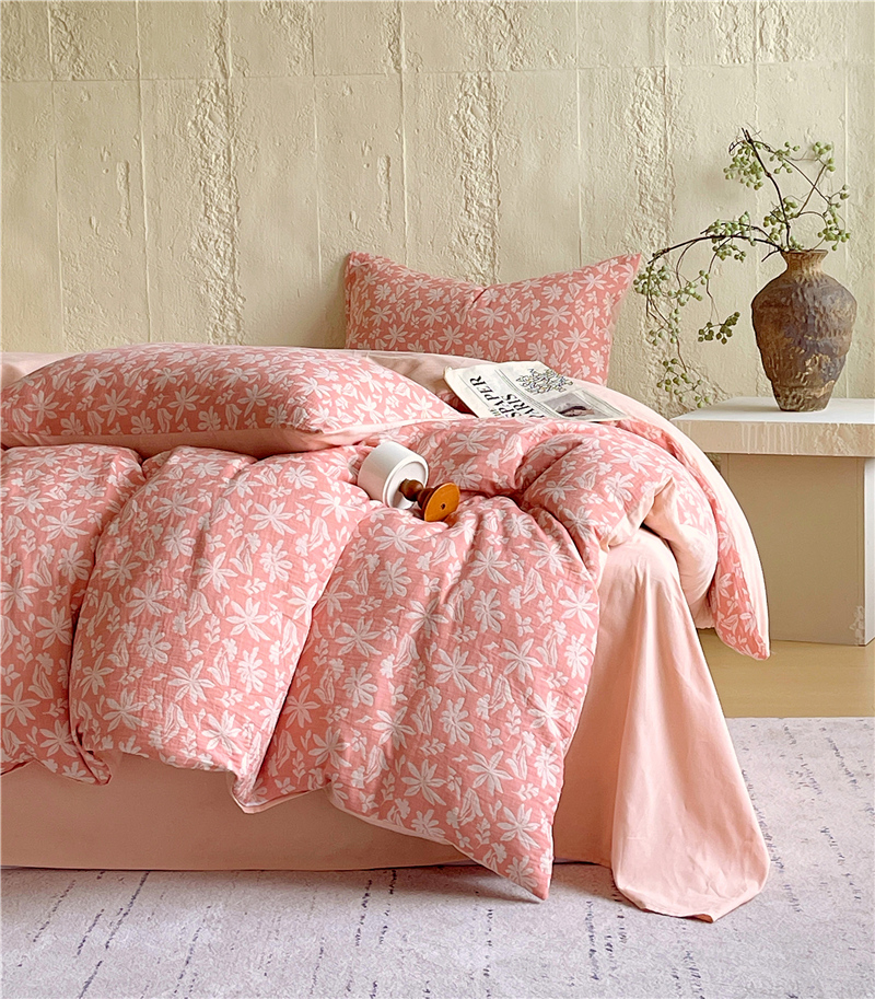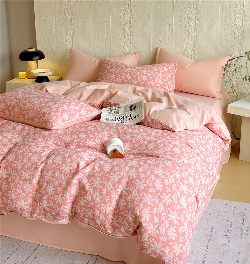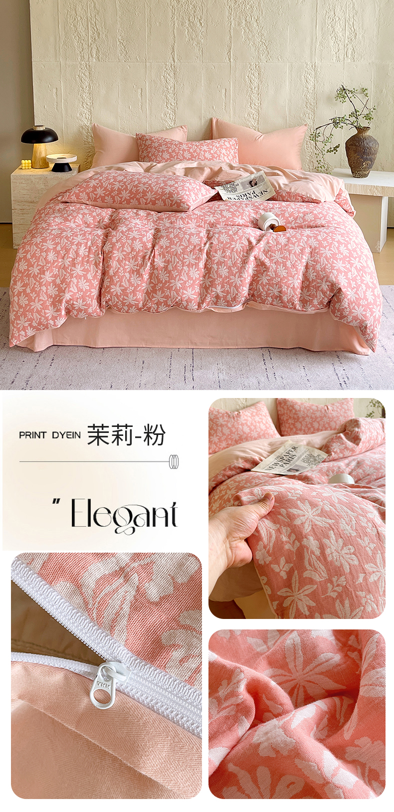 商品名称:佰亿莱 2026新款棉麻双层纱四件套 茉莉-粉