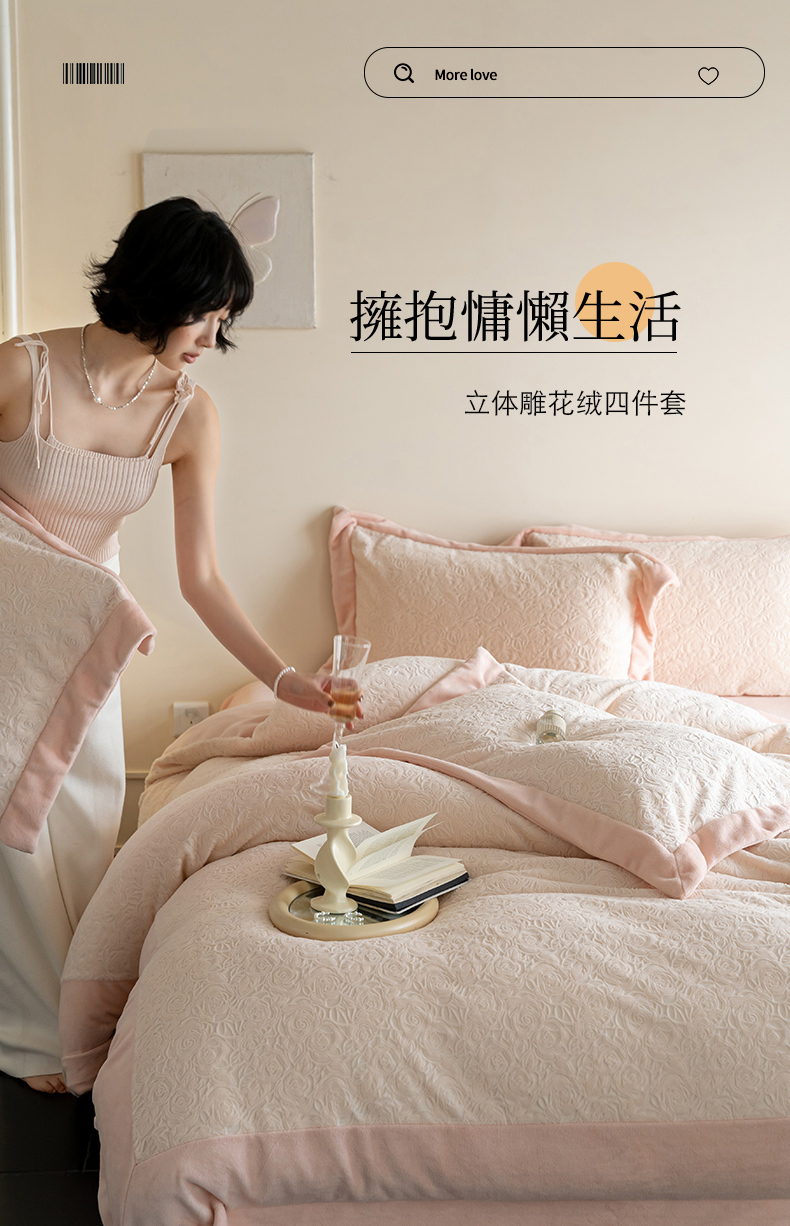 (总)云栖家居 2025秋冬新品立体消光印花雕花绒加厚高克重牛奶绒四件套星辰玫瑰,星辰玫瑰-粉,星辰玫瑰-绿