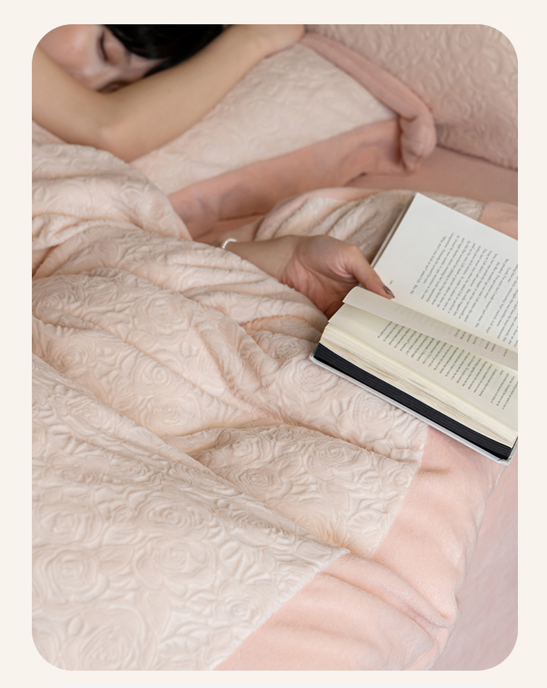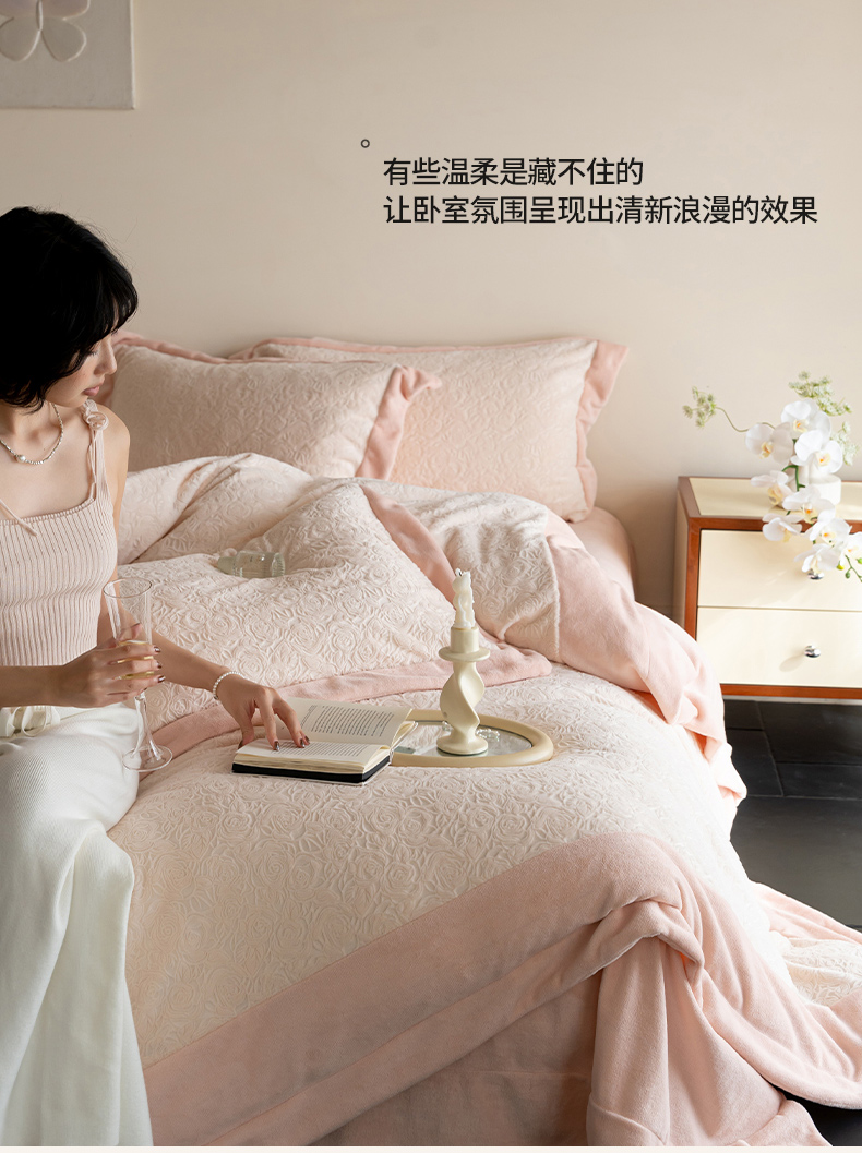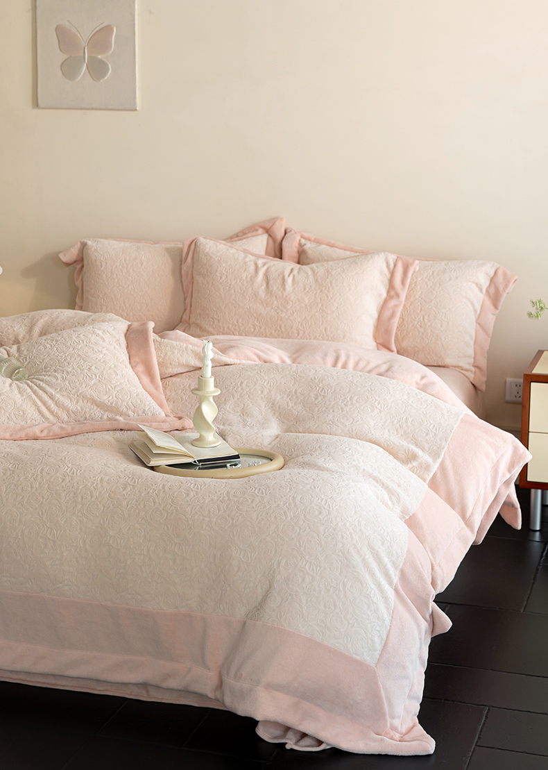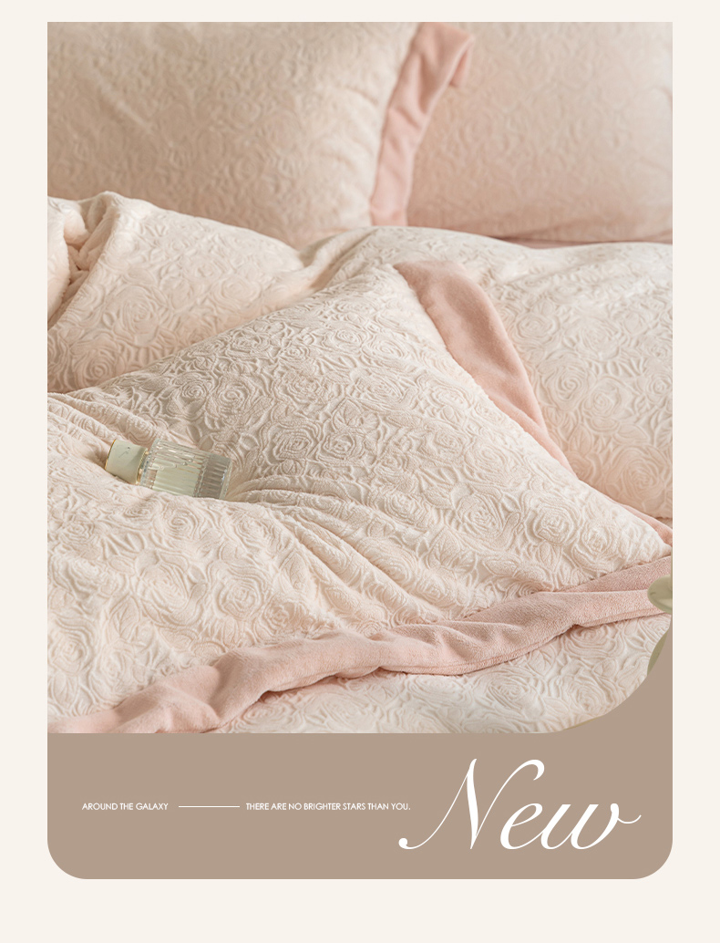 商品名称:云栖家居 2025秋冬新款消光立体雕花A类牛奶绒-暖意融融系列 浅浅玫瑰