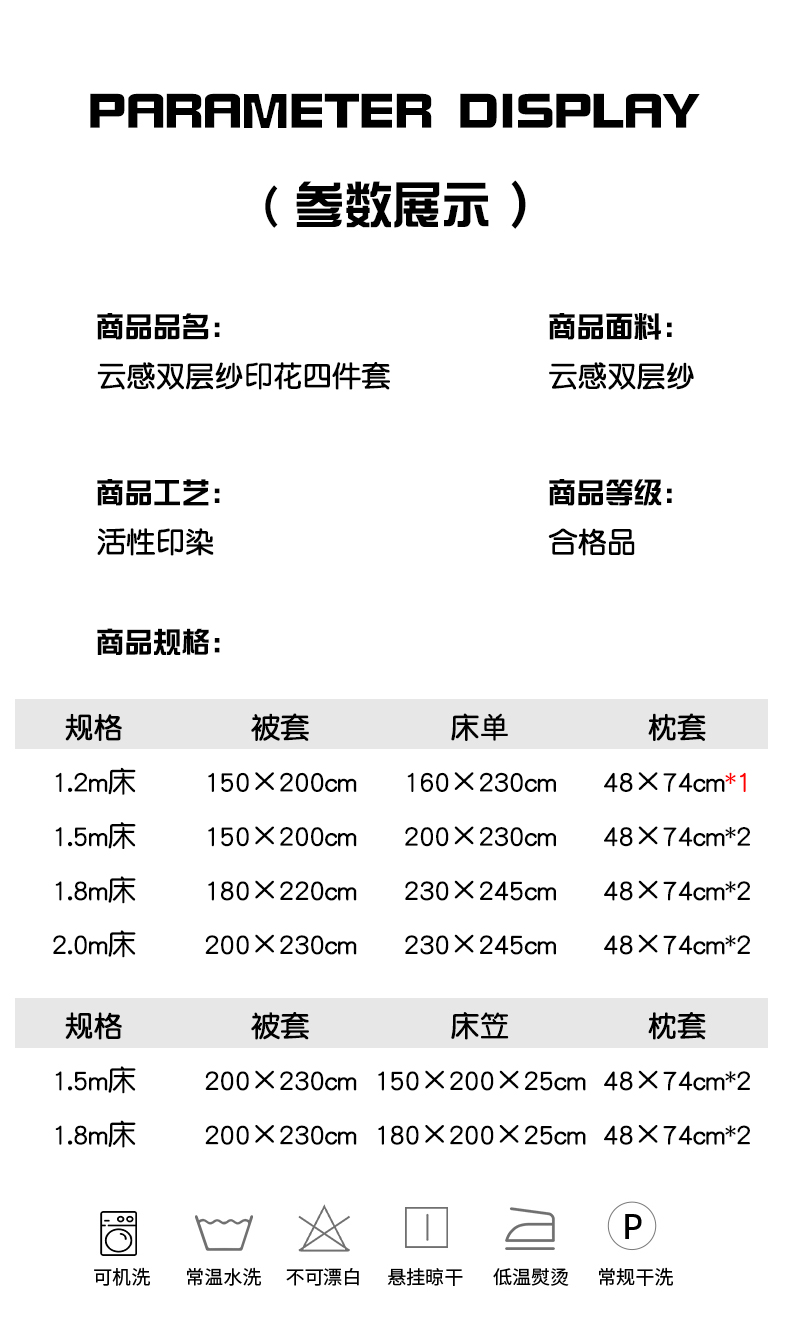 【床笠款】1.5四件套-被套180x220 | ¥55.00 |