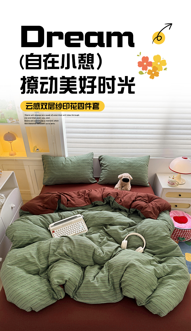 当前位置: 91家纺网 > 商品网购 > 床品套件 > 四件套 > 其它四件套 > 水墨江南 2025新款云感双层纱印花四件套 绿野仙踪