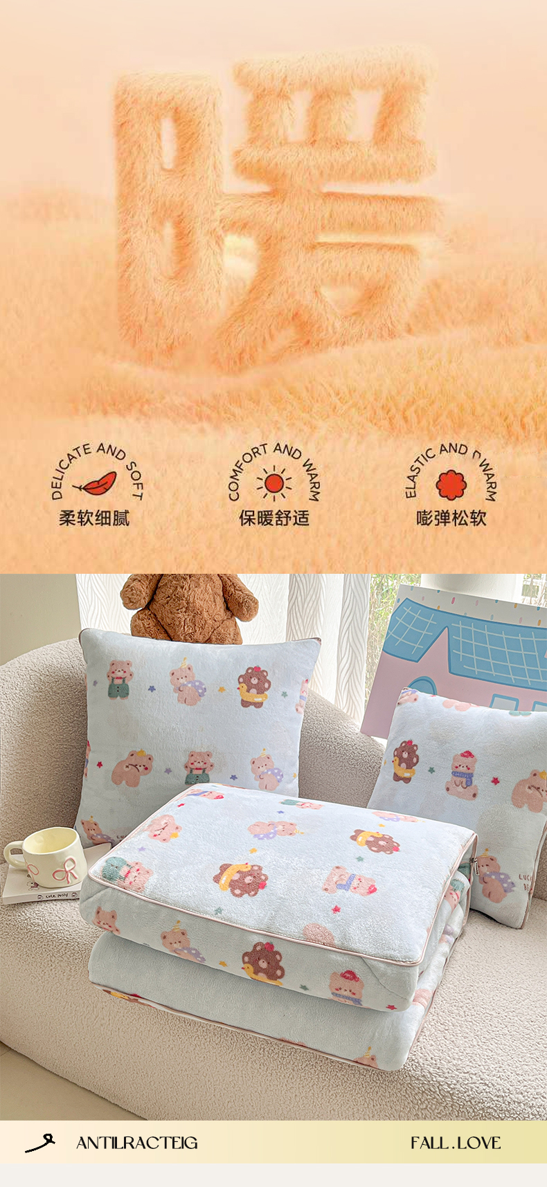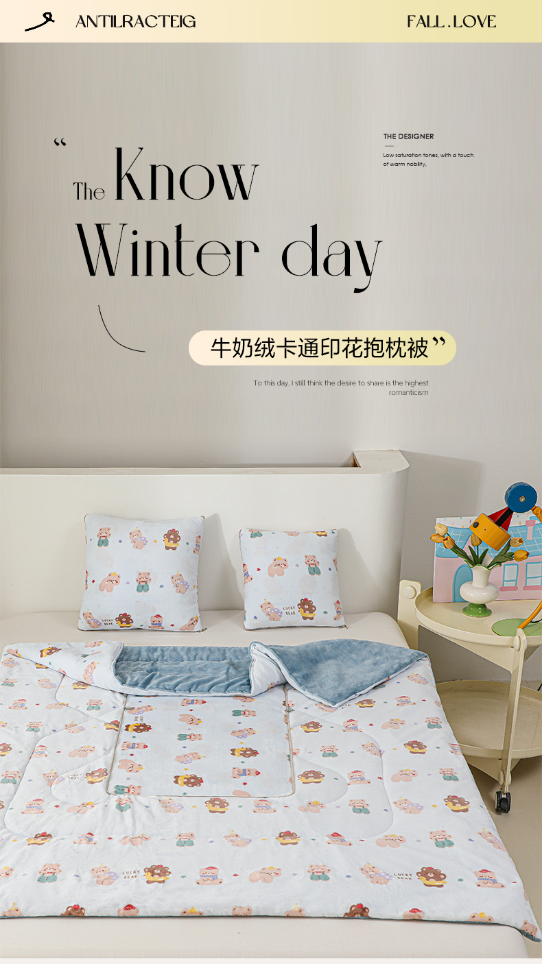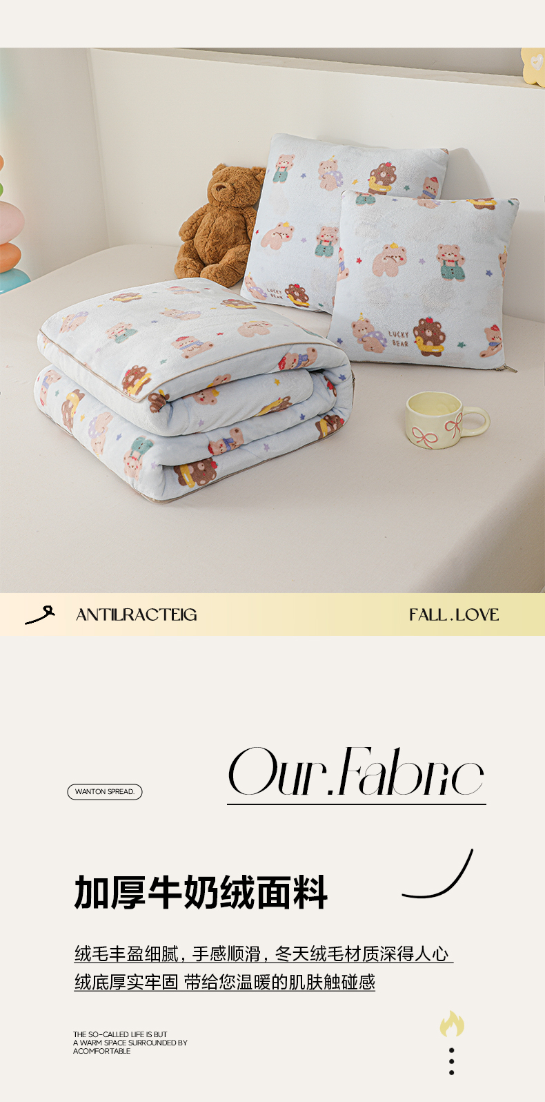 番茄+ 2025新款牛奶绒卡通印花抱枕被 小熊饼干