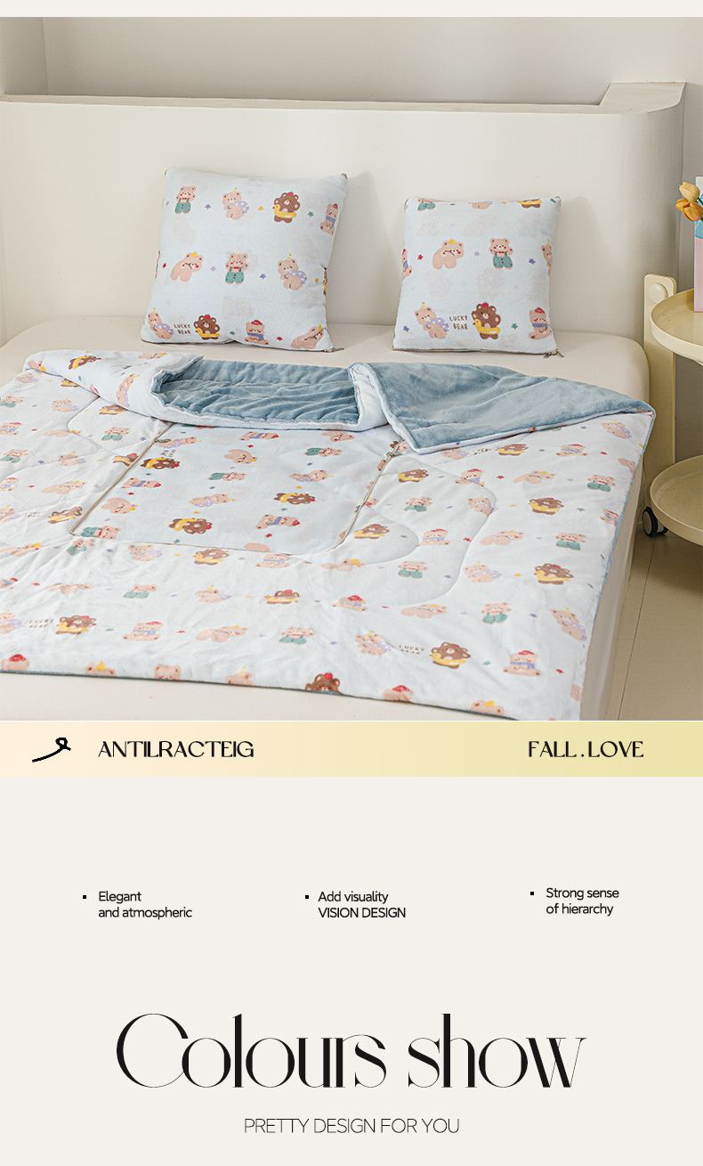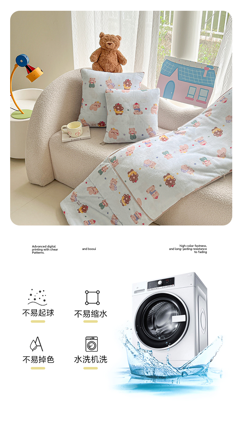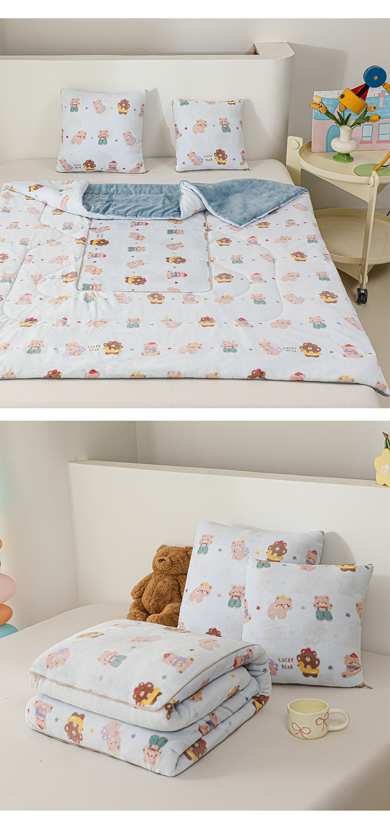 番茄+ 2025新款牛奶绒卡通印花抱枕被 小熊饼干