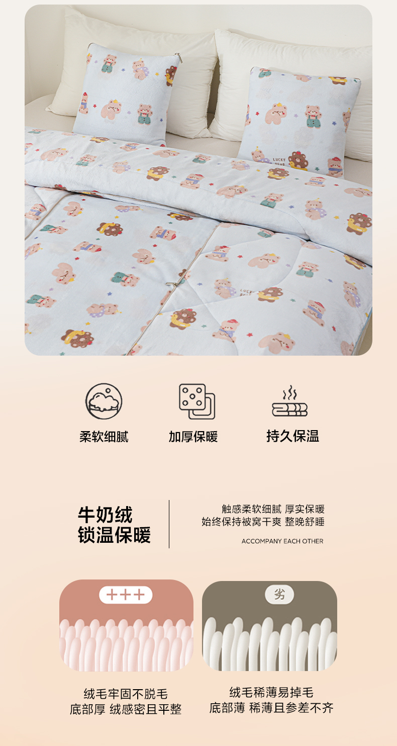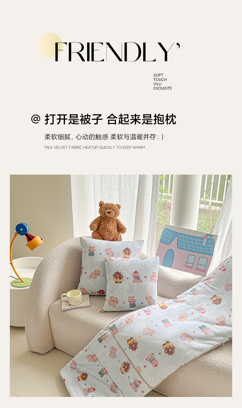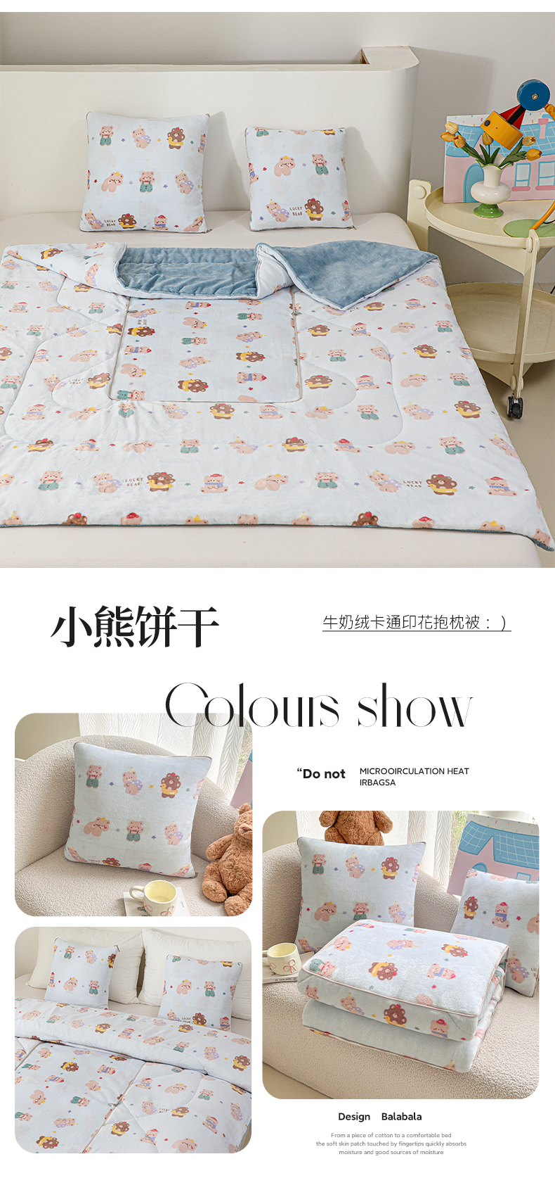 商品名称:番茄+ 2025新款牛奶绒卡通印花抱枕被 小熊饼干