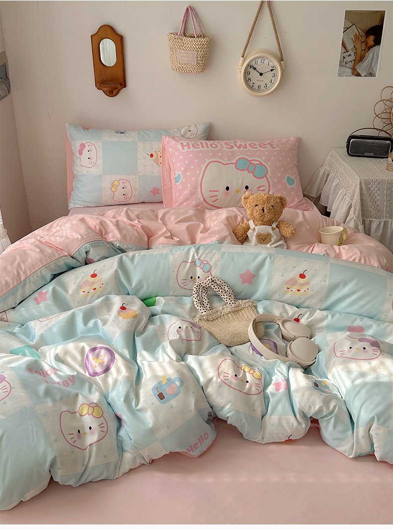 当前位置: 91家纺网 > 商品网购 > 床品套件 > 四件套 > 水洗棉四件套 > 桃心家居 2025新款A类亲肤舒适软糯云柔水洗棉数码印花混搭四件套-少女卡通奶乎乎 云柔水洗棉-甜心蓝格猫
