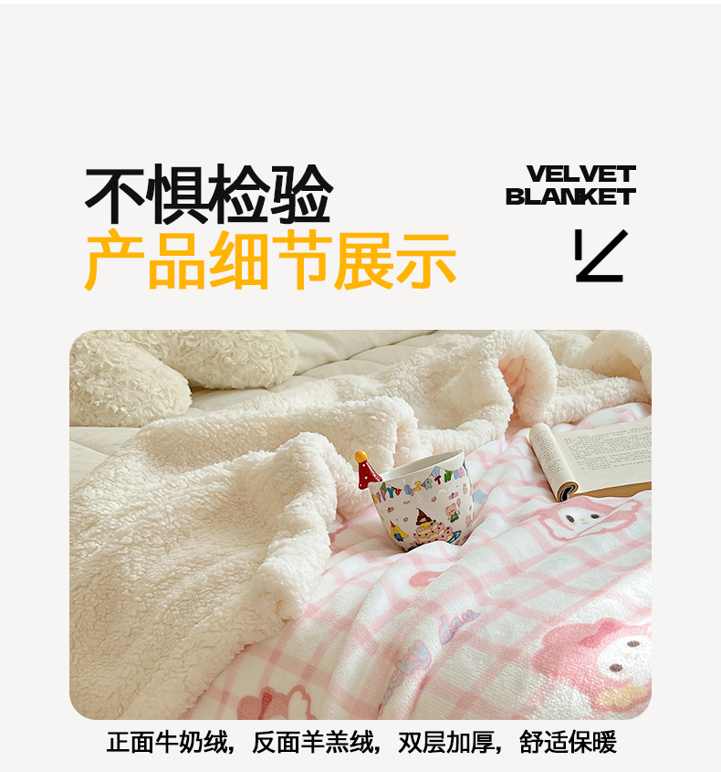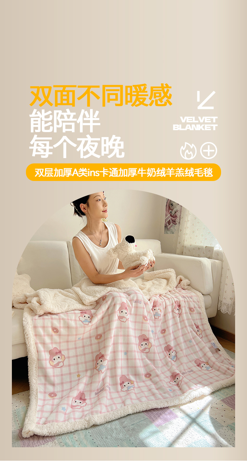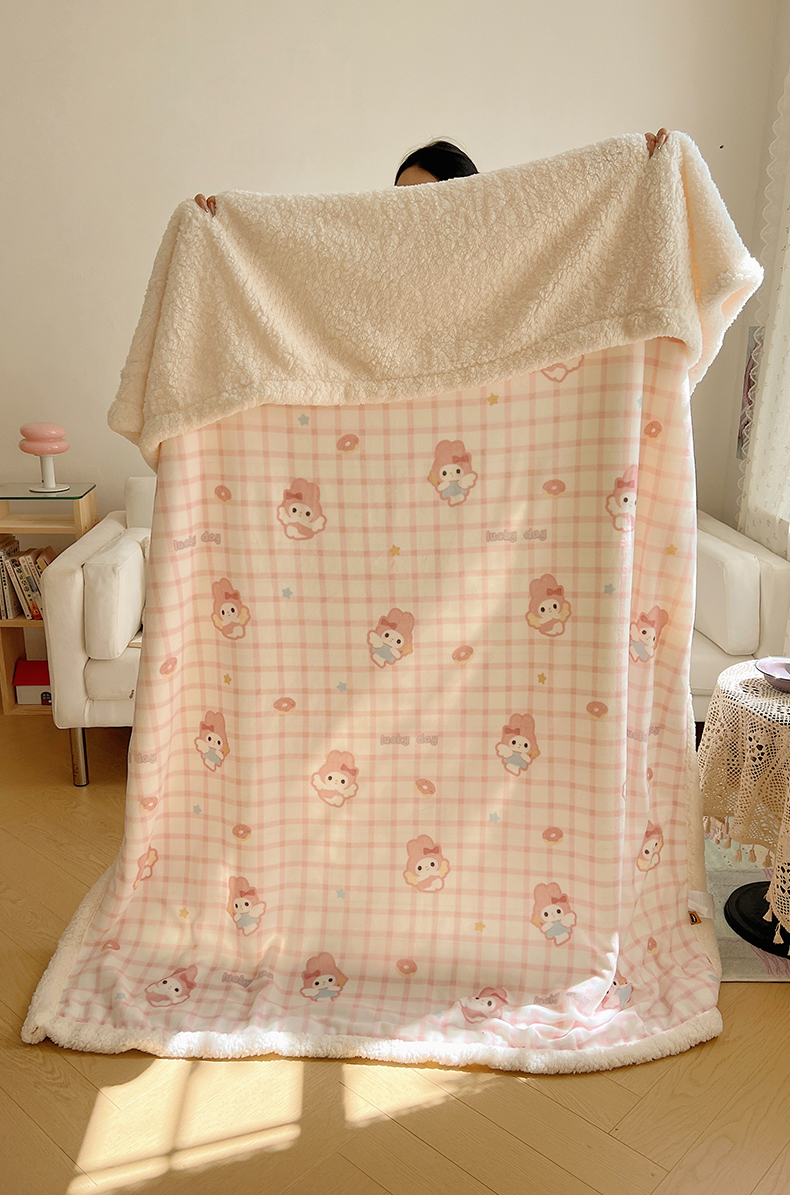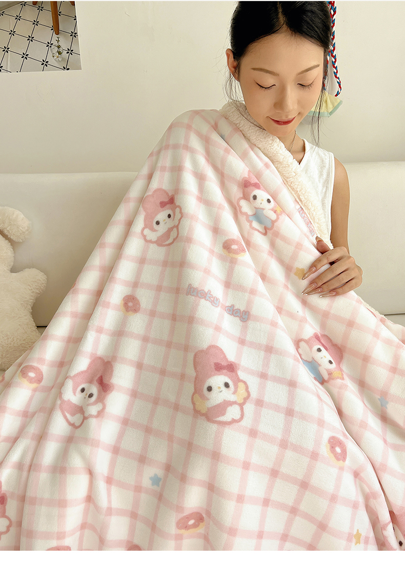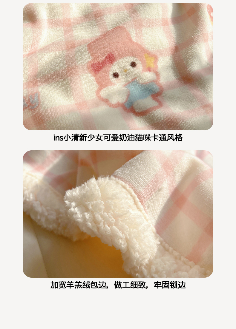 商品名称:桃子家居 2025新款A类ins小清新少女可爱奶油猫咪卡通加厚牛奶绒羊羔绒毛毯多功能毛毯 绒毛毯-MT天使兔