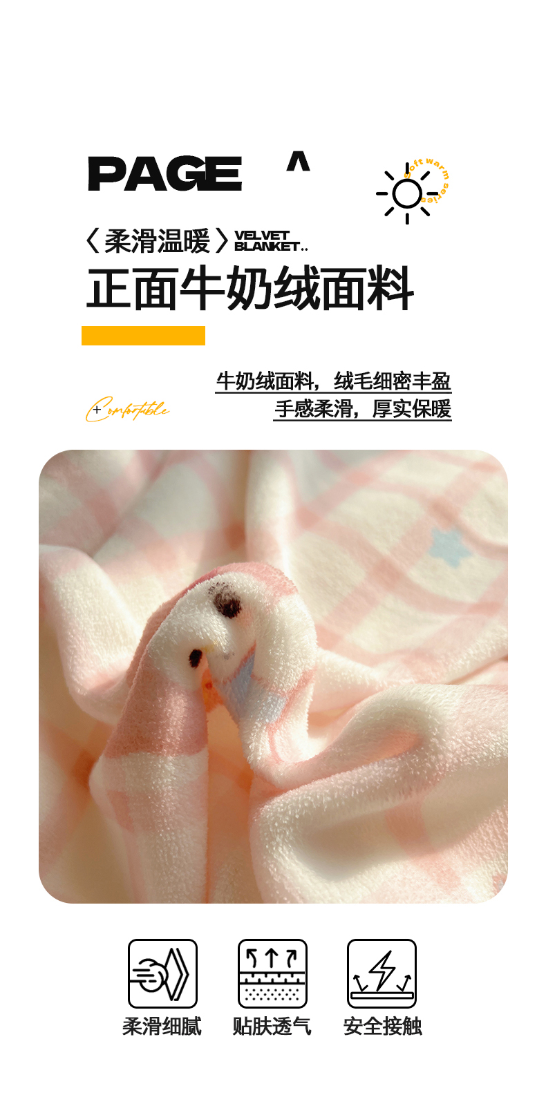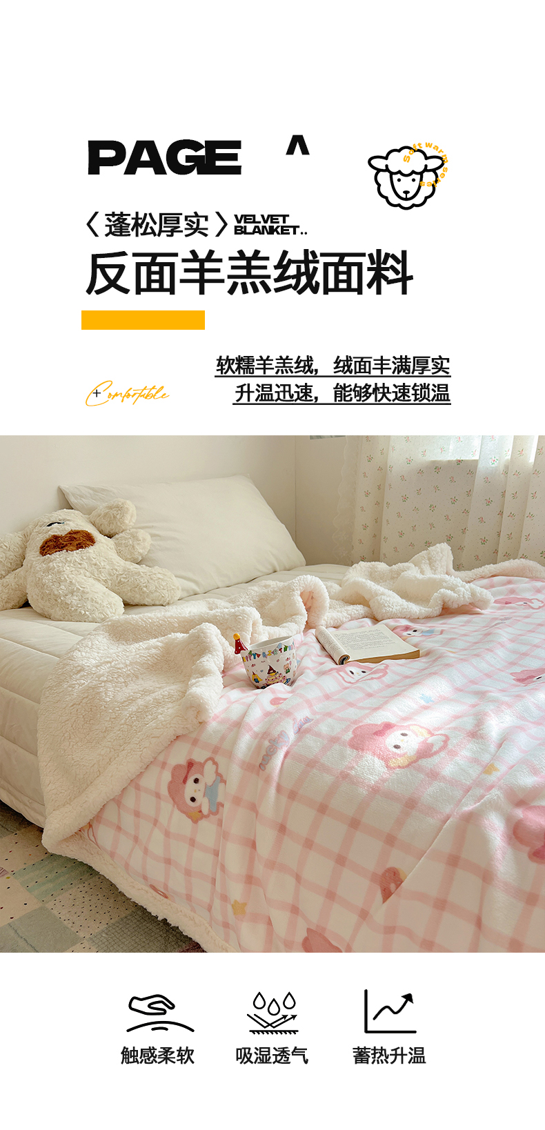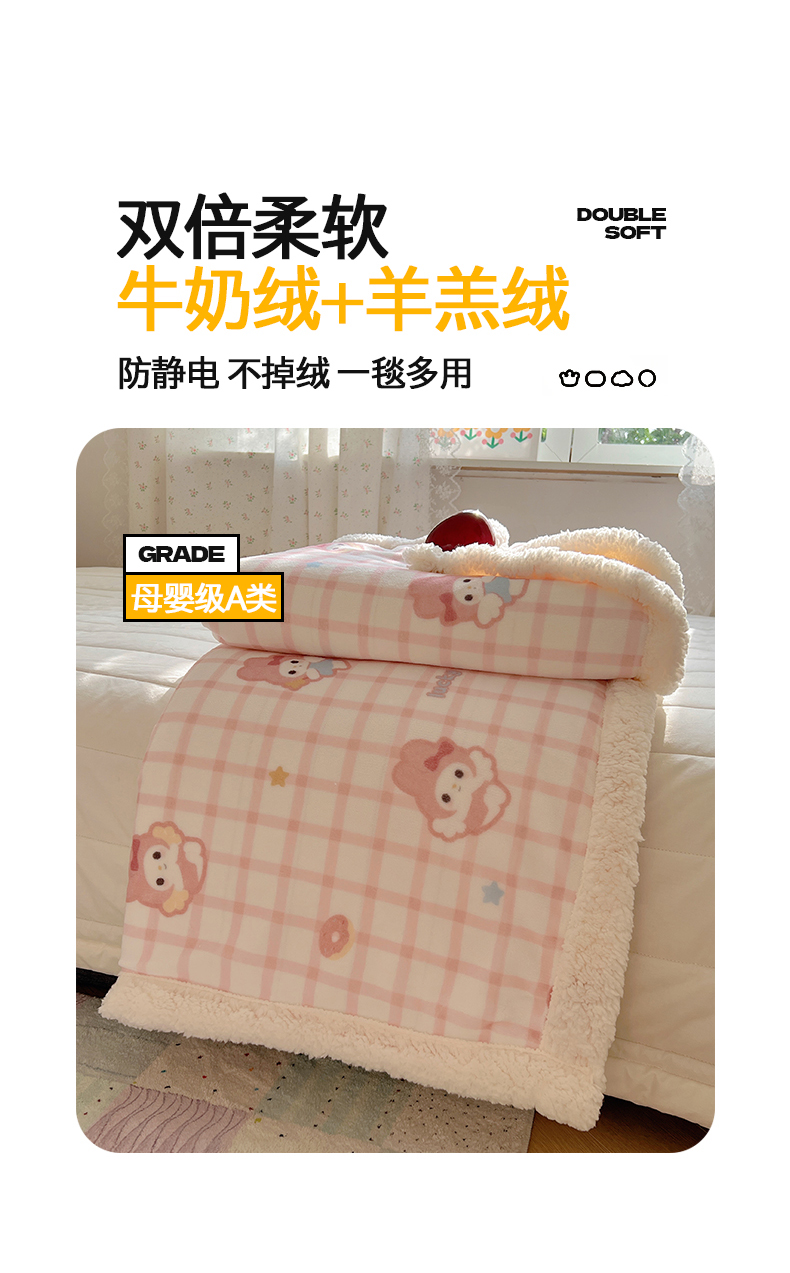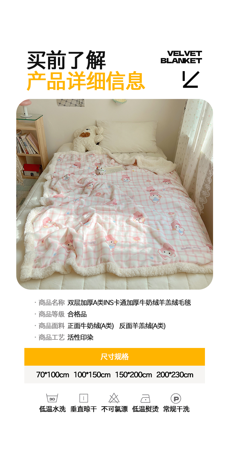 商品名称:桃子家居 2025新款A类ins小清新少女可爱奶油猫咪卡通加厚牛奶绒羊羔绒毛毯多功能毛毯 绒毛毯-MT天使兔